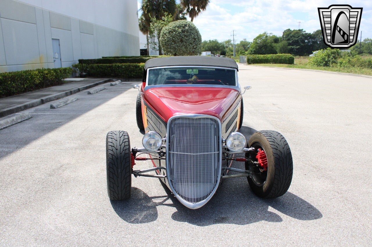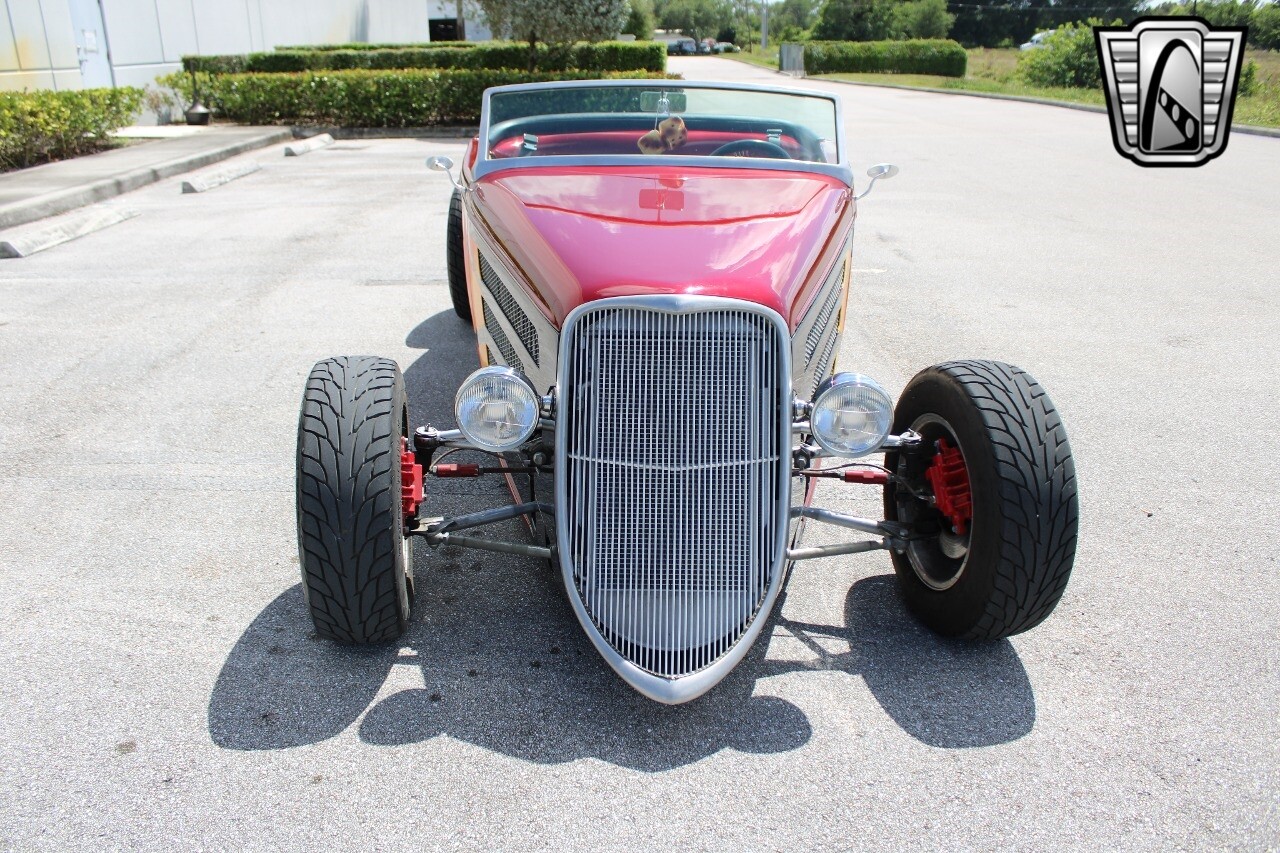 Step into the world of classic American muscle with this striking 1933 Factory Five Hot Rod Replica Kit car. This stunning vehicle boasts a vibrant red exterior that is sure to turn heads wherever you go. The black vinyl interior offers a sleek and stylish contrast, creating an aesthetic that is both bold and timeless.