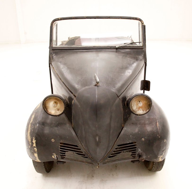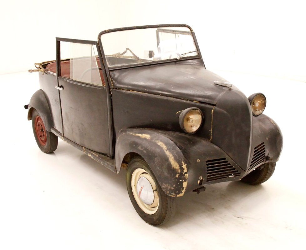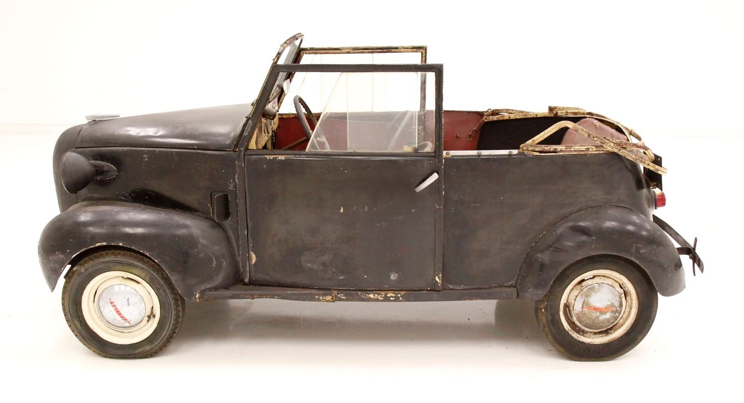 For consignment and fresh out of barn storage, this extremely rare 1942 CB42 Convertible Cabriolet from Crosley. Produced prior to the beginnings of World War II and one of the approximate 1,029 units built during that time, this mini skate has seen better days but is still holding its own and is fairly complete with the exception of the convertible top canvas. In 2019 the Crosley Automobile Club stated that less than 80 Crosleys are accounted for of all the body styles built for the 1942 model year and we aren't certain if this unit is in that number count. Either way, it's small, it's rare, and frankly I'm in absolute love with all of its charm and styling that still holds strong today.