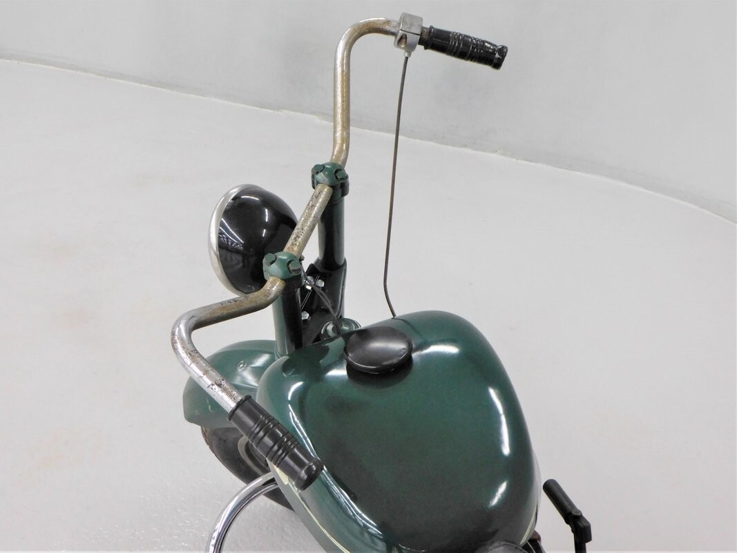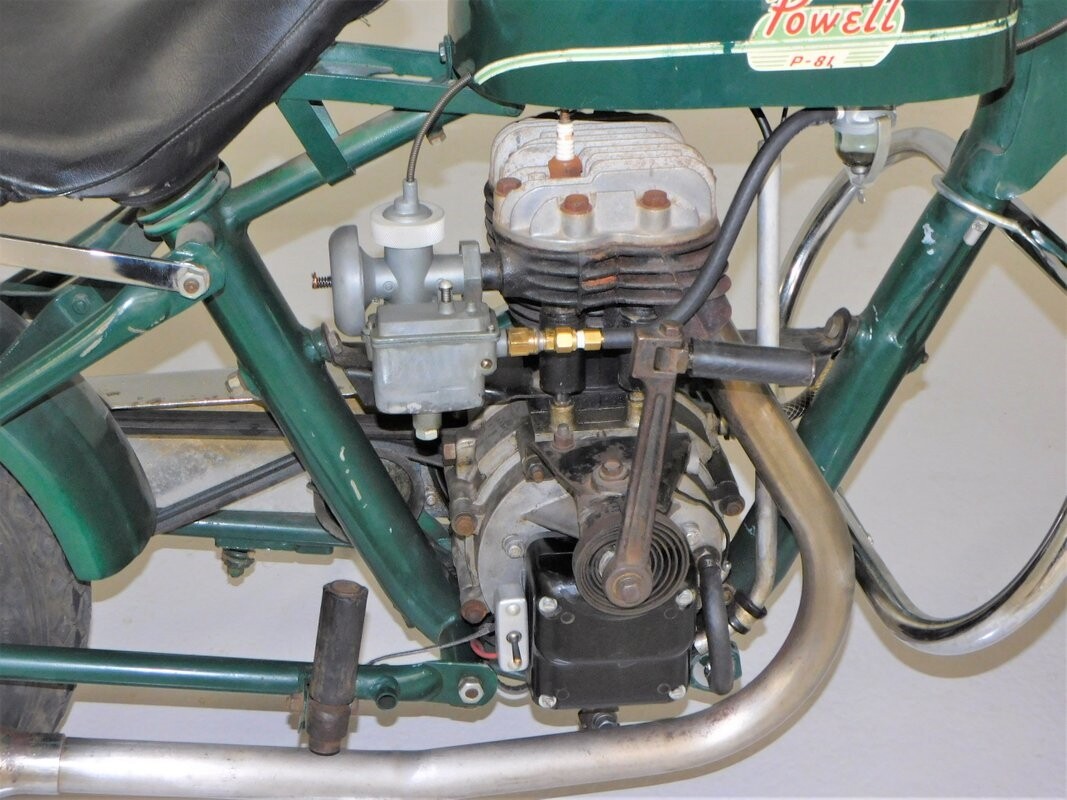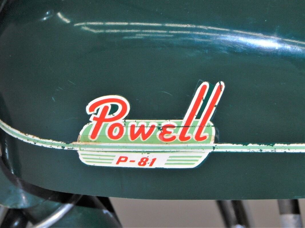Take a ride on the wild side with this vintage, green 1950 Powell P-81 Scooter! This unrestored survivor from the Powell Manufacturing Company in Compton, CA, is a lightweight motorcycle that was made to compete with Mustang Motorcycle. Production stopped in early 1950s, making this rare vintage find a truly unique ride! Take it for a spin...before it dissolves into history like the Powell Manufacturing Company did in 1979. This is a running scooter. The consignor does not have a title for this scooter, but we will get it titled for you. ALL VEHICLES SOLD "AS-IS"