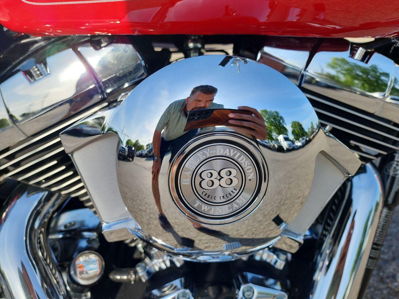 CARBURETED TWIN CAM 88!! ABSOLUTELY BEAUTIFUL AND JUST FULLY SERVICED INCLUDING NEW REAR OEM TIRE! Beautiful 2-tone factory Real Red and Diamond Ice factory paint in excellent condition. Only 14K original one owner miles! Jts serviced including new Dunlop tire, battery, carb rebuild, and all fluids changed. Factory security system and aluminum wheel option. Rare carbureted motor that starts right up and runs like new! V&H pipes and Screamin' Eagle intake package. Highway pegs, Lay down license plate, Upgraded mirrors, Super cool upgraded V-Twin style high flow air cleaner cover, and more. Truly an incredibly clean garage kept one owner bike with low mileage serviced and ready to ride home TODAY!!
