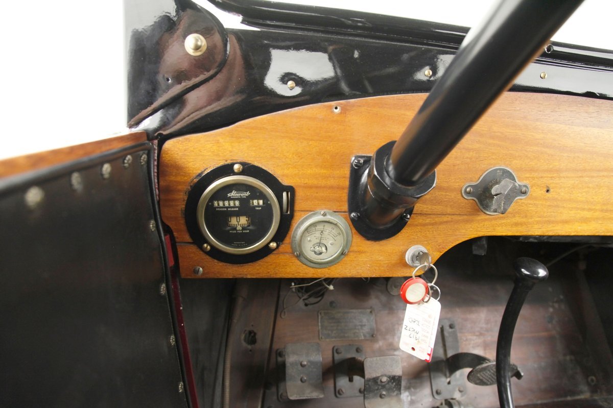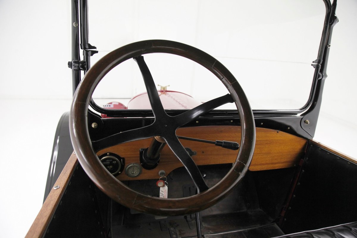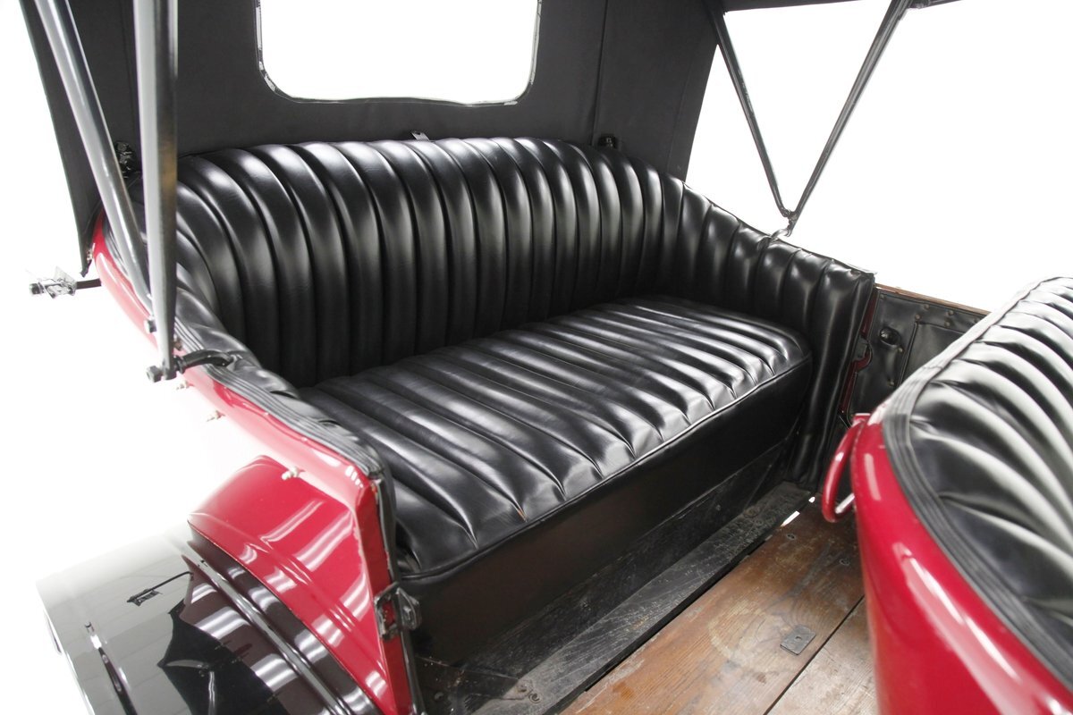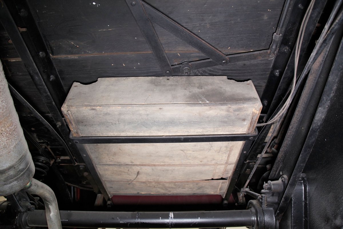 Also beautifully restored with black smooth vinyl in very good condition covering the door panels with beautiful oak top sills. A wonderful glossy oak fronted dash curves up to the front windshield and in front of the driver is a utilitarian speedometer/odometer and ammeter all in perfect condition sitting behind a walnut wood steering wheel. Heavily tufted black tuck and roll vinyl covers the wrap around bench seats both front and rear with the rear of the front seat tub being finished in body matching maroon. Weathered oak planks cover the floor upfront, and the same is seen in the rear, albeit with less wear. This interior is definitely all buttoned up, well done, and in very nicely presenting condition.