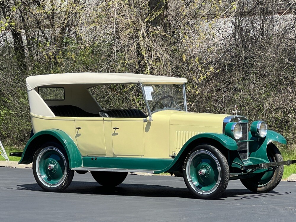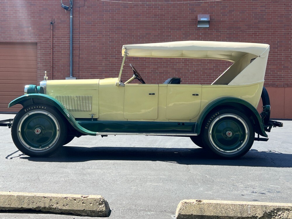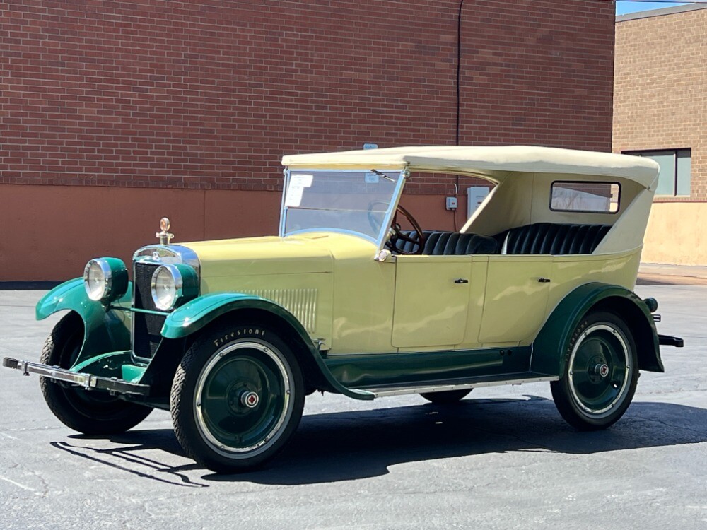 This charming 1923 Rickenbacker 4 Door Tourer wears a nice older restoration. Yellow with black interior. A very presentable example that runs and drives excellent. The 6-cylinder engine was rebuilt in 2017. Manufactured in Detroit, Michigan, from 1922 until 1927, the first Rickenbackers were displayed at the January 1922 New York Automobile Show. The company made sporting coups, touring cars, sedans, and roadsters. In 1923 Rickenbacker pioneered the production of four-wheel brakes. This particular example is a very attractive driver ready for weekend drives and tours.