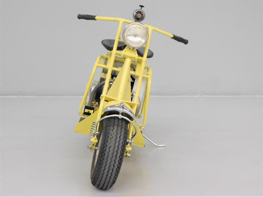 The 1952 Cushman 60 Series Super Model 64A is a retro-cool ride! This yellow beauty has been restored to its former glory, with a 5 HP engine and Variomatic Transmission. History buffs might note that the color isn't authentic to the year, but hey, it's still awesome! This is a running scooter. The consignor does not have a title for this scooter, but we will get it titled for you.. ALL ITEMS SOLD "AS-IS"