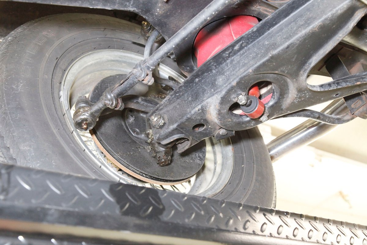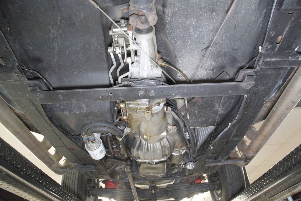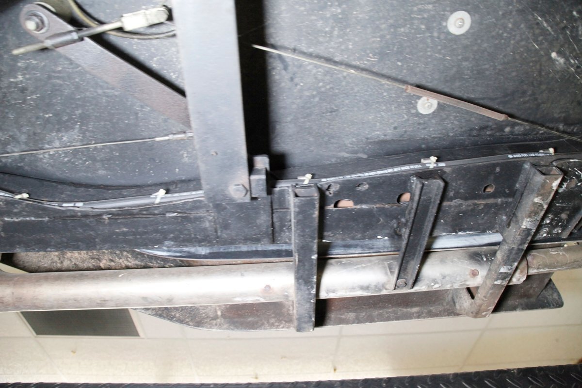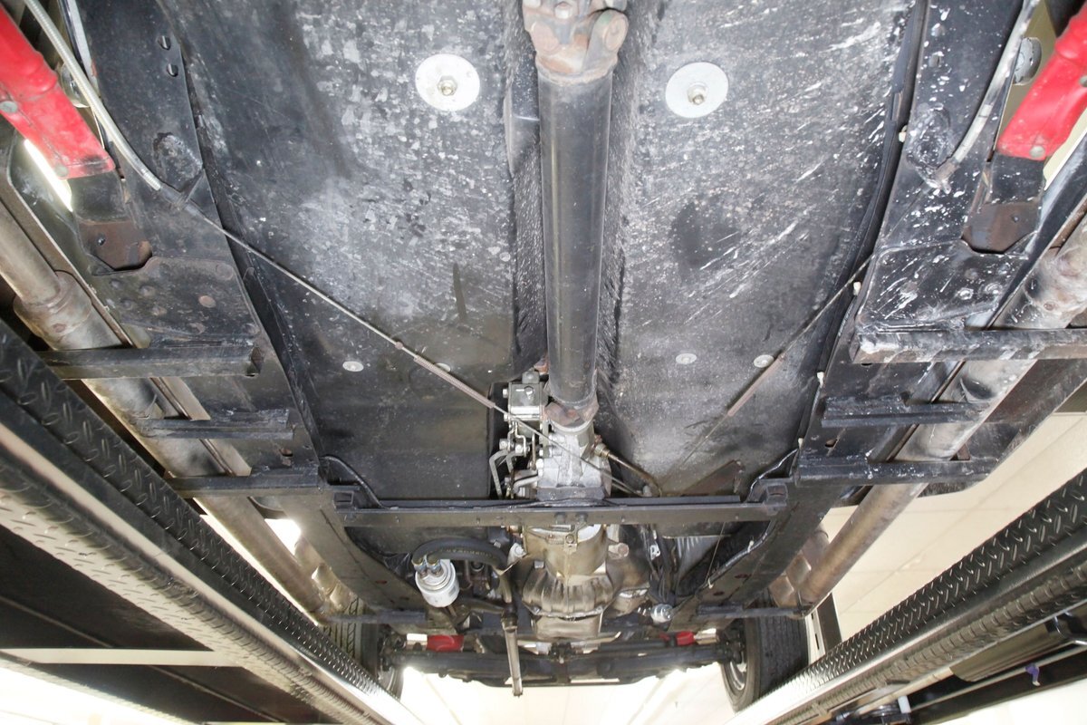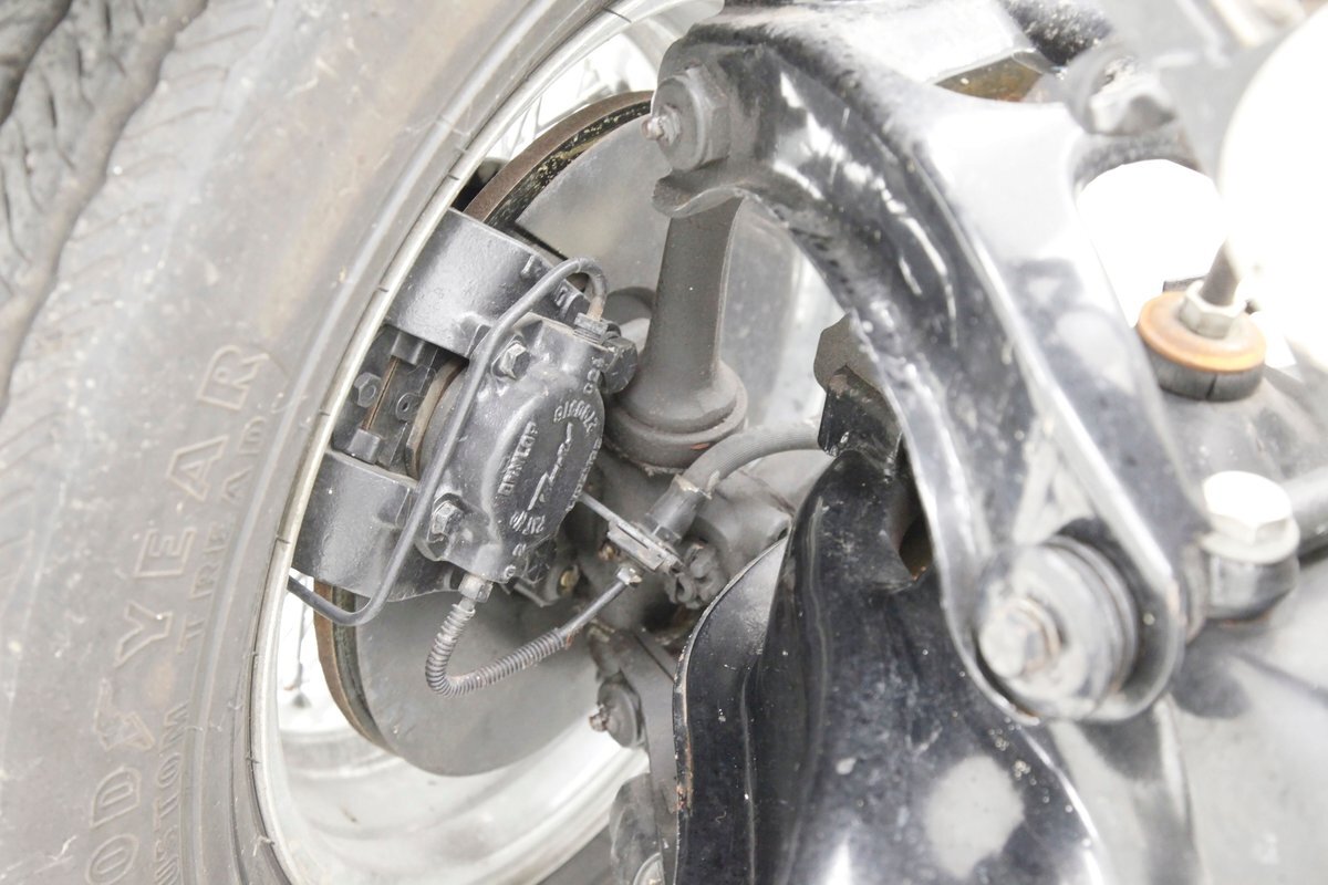 Fiberglass with slight road splatter but no rust. Structural steel framing is solid and rust free. Independent coil spring suspension is on front, and leaf springs for the back. Power disc braking for the front and power drum braking for the rear are on.