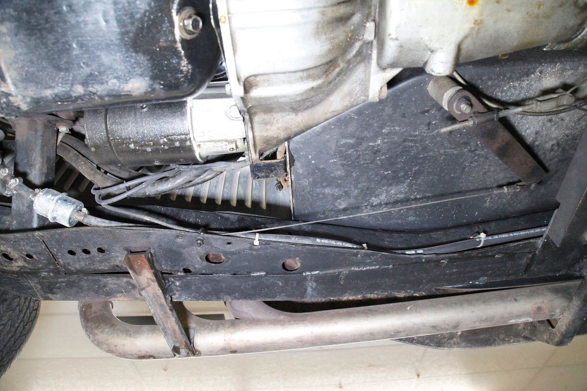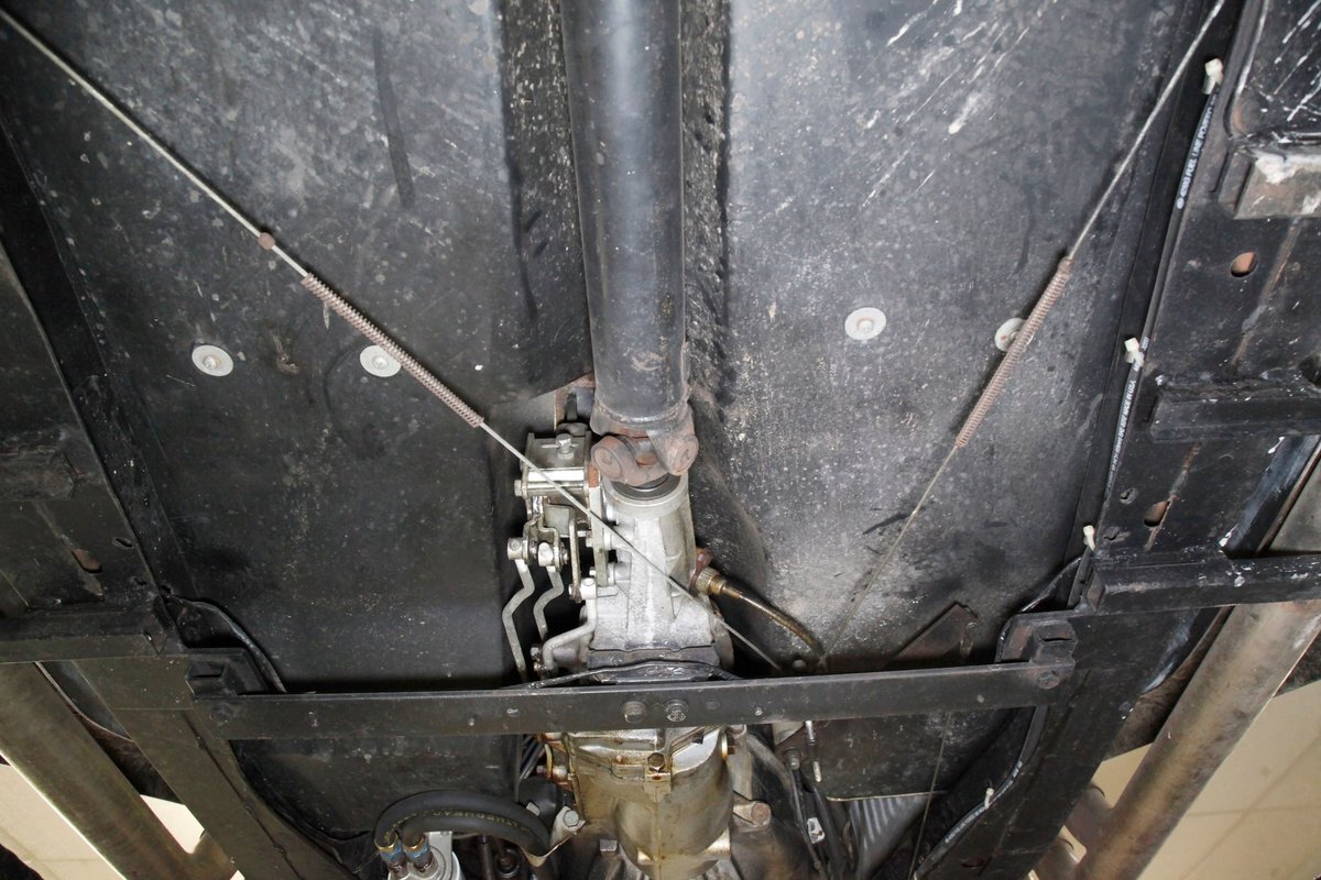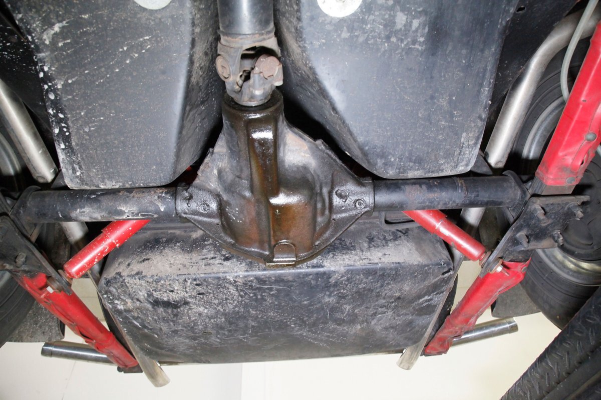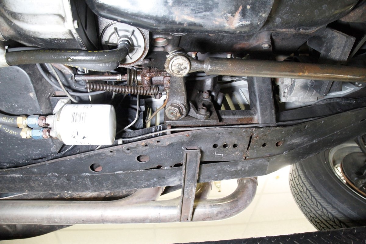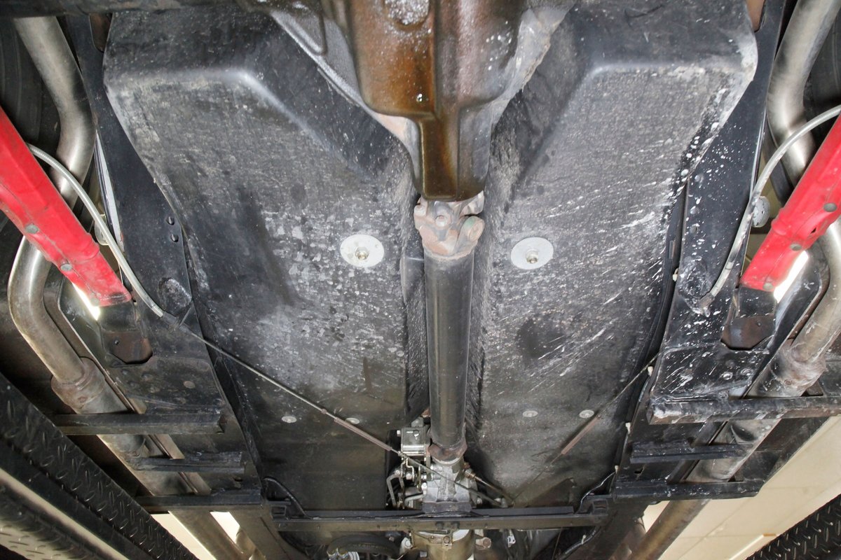Fiberglass with slight road splatter but no rust. Structural steel framing is solid and rust free. Independent coil spring suspension is on front, and leaf springs for the back. Power disc braking for the front and power drum braking for the rear are on.