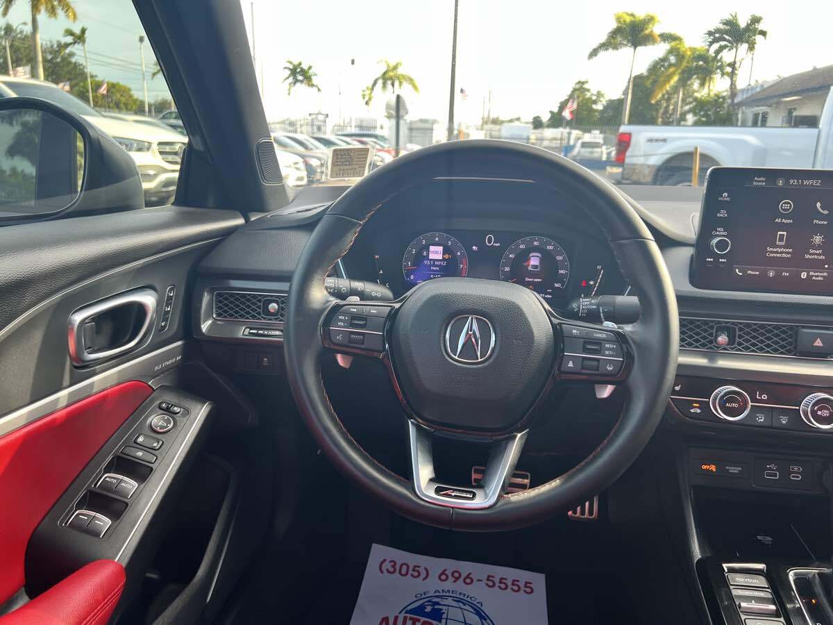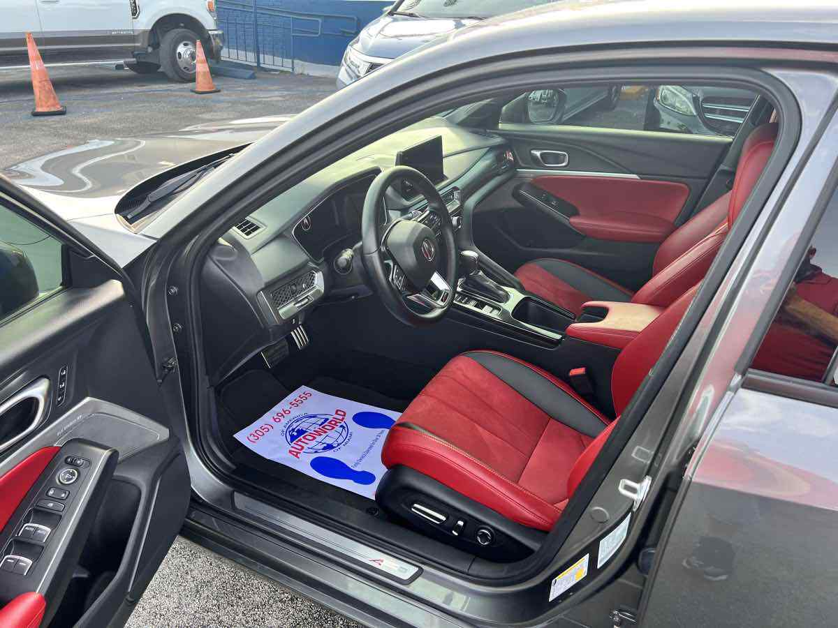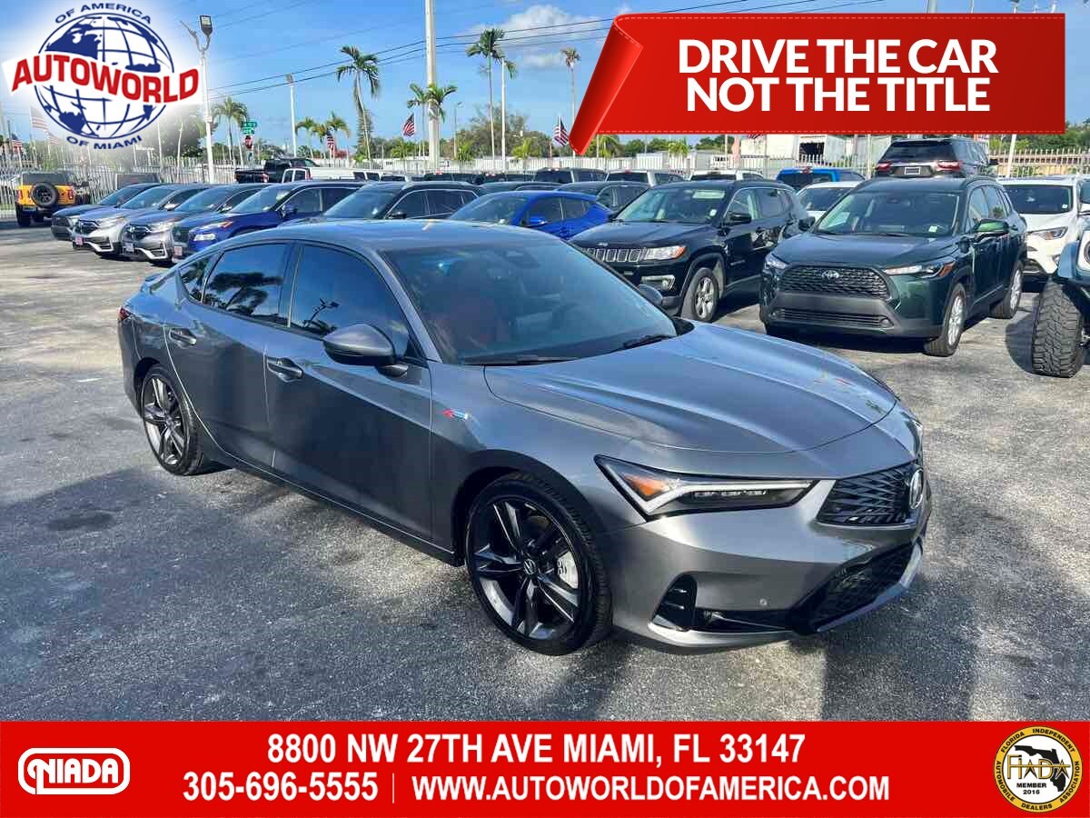 Our 2023 Acura Integra A-Spec w/Technology Liftback is a spirited sport compact that looks great in Liquid Carbon Metallic! Motivated by a TurboCharged 1.5 Liter 4 Cylinder that supplies 200hp to a sport-tuned paddle-shifted CVT. This Front Wheel Drive liftback also rewards enthusiasts with adaptive dampers - and it returns nearly 36mpg on the highway with a sleek - coupe-like silhouette. Our Integra's bold appearance gets a boost from Jewel Eye LED lighting - fog lamps - a sunroof - gloss-black bumper trim - a sporty lip spoiler - and 18-inch alloy wheels. Athletically appealing - our A-Spec w/Technology cabin treats you to heated red leatherette power front seats with suede inserts - red stitching - a leather-wrapped steering wheel - dual-zone automatic climate control - stainless steel pedals - keyless access - pushbutton ignition - and plenty of rear cargo space. Integra infotainment highlights include a 10.2-inch driver display - a 9-inch touchscreen - full-color navigation - wireless Android Auto/Apple CarPlay - wireless charging - WiFi compatibility - Amazon Alexa Built-in - and an ELS Studio sound system. Acura encourages safer driving with intelligent technology such as adaptive cruise control - automatic braking - blind-spot monitoring - a multi-view rear camera - lane-keeping assistance - and more. Driving our Integra A-Spec w/Technology is an intense experience! Save this Page and Call for Availability. We Know You Will Enjoy Your Test Drive Towards Ownership! This vehicle has a branded title and was DMV inspected in Florida. It is in excellent condition - and everything works perfectly - we have test driven it several times and checked to make sure all the options and features work as they should. It is priced thousands below its J.D. Power retail value based on advertised trim - miles - and options. Our vehicles go through a 151-Point Inspection and include a 3 Month 3 -000 Miles in-house warranty*. It is ready to go for local - nationwide - or international shipping. At Autoworld you will save thousands without sacrificing quality. You can now afford a newer model year - higher trim level - and even lower miles than what you were expecting in your price range. For more than 30 years customers worldwide agree that vehicles from Autoworld of America offer the best value and quality. $$$ DRIVE THE CAR - NOT THE TITLE - SAVE THOUSANDS $$$