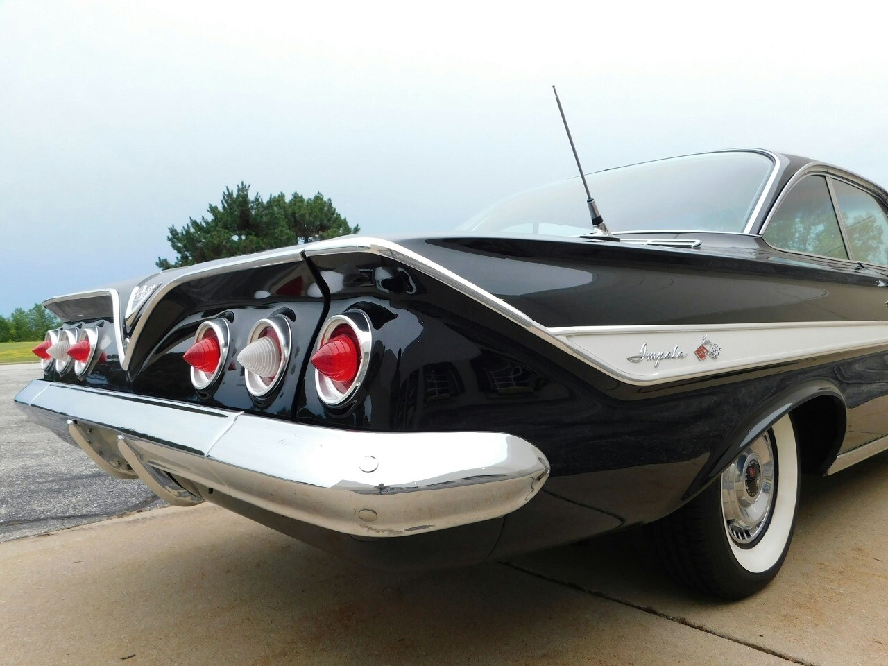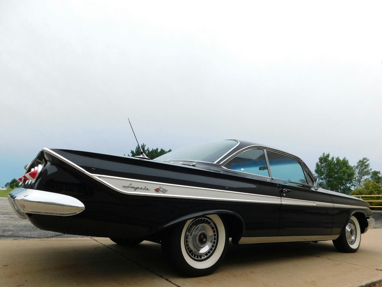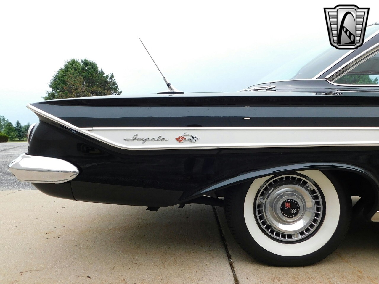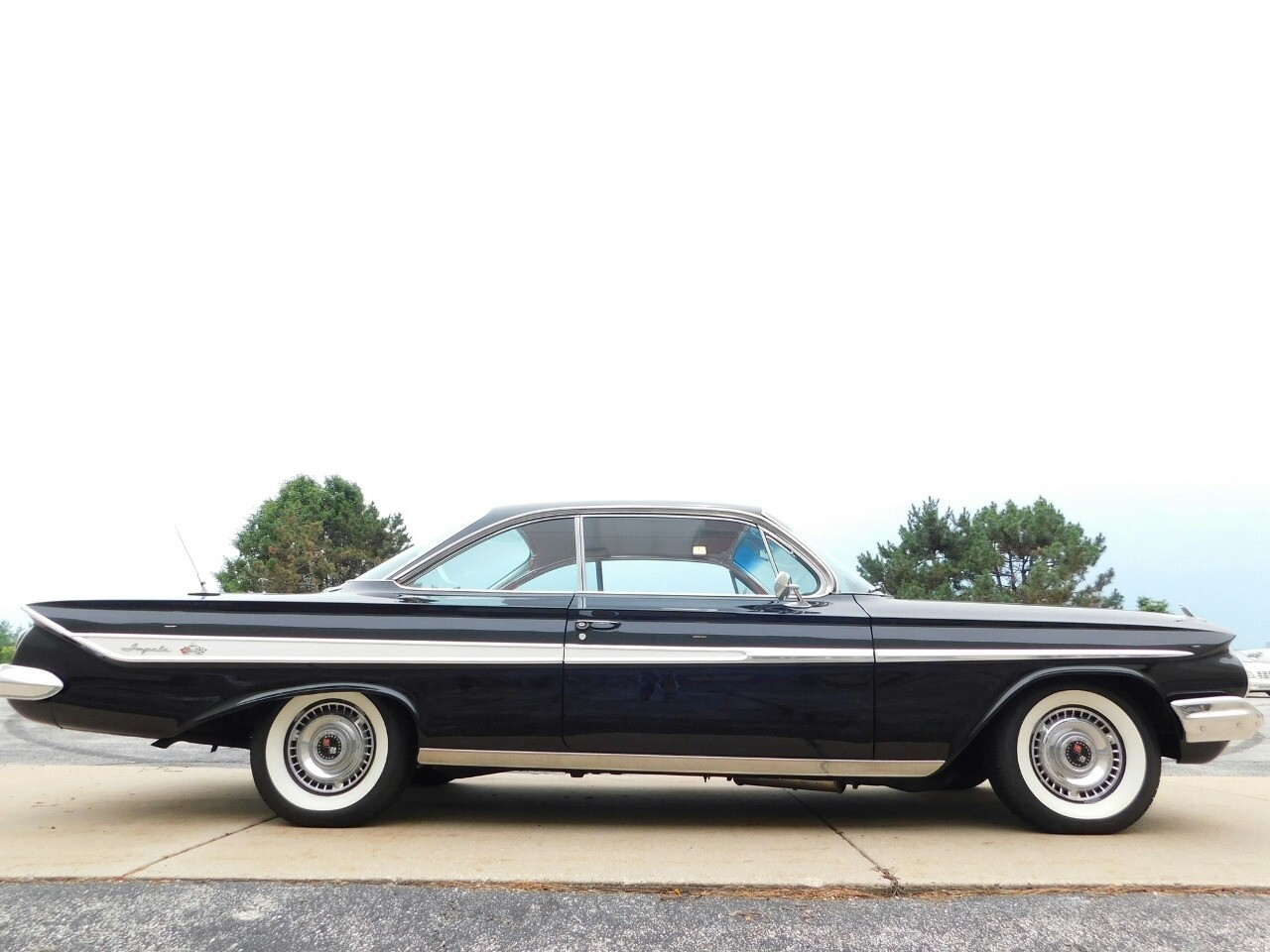 Gateway Classic Cars of Chicago is excited to take a step back in time with this stunning 1961 Chevrolet Impala, a true classic that embodies the spirit of American automotive design. Cloaked in a sleek black exterior, this Impala exudes a timeless elegance that turns heads wherever it goes. The car's striking presence is further enhanced by its timeless white walls, which offer a striking contrast and harken back to an era of unparalleled style.