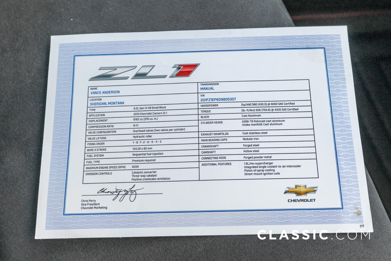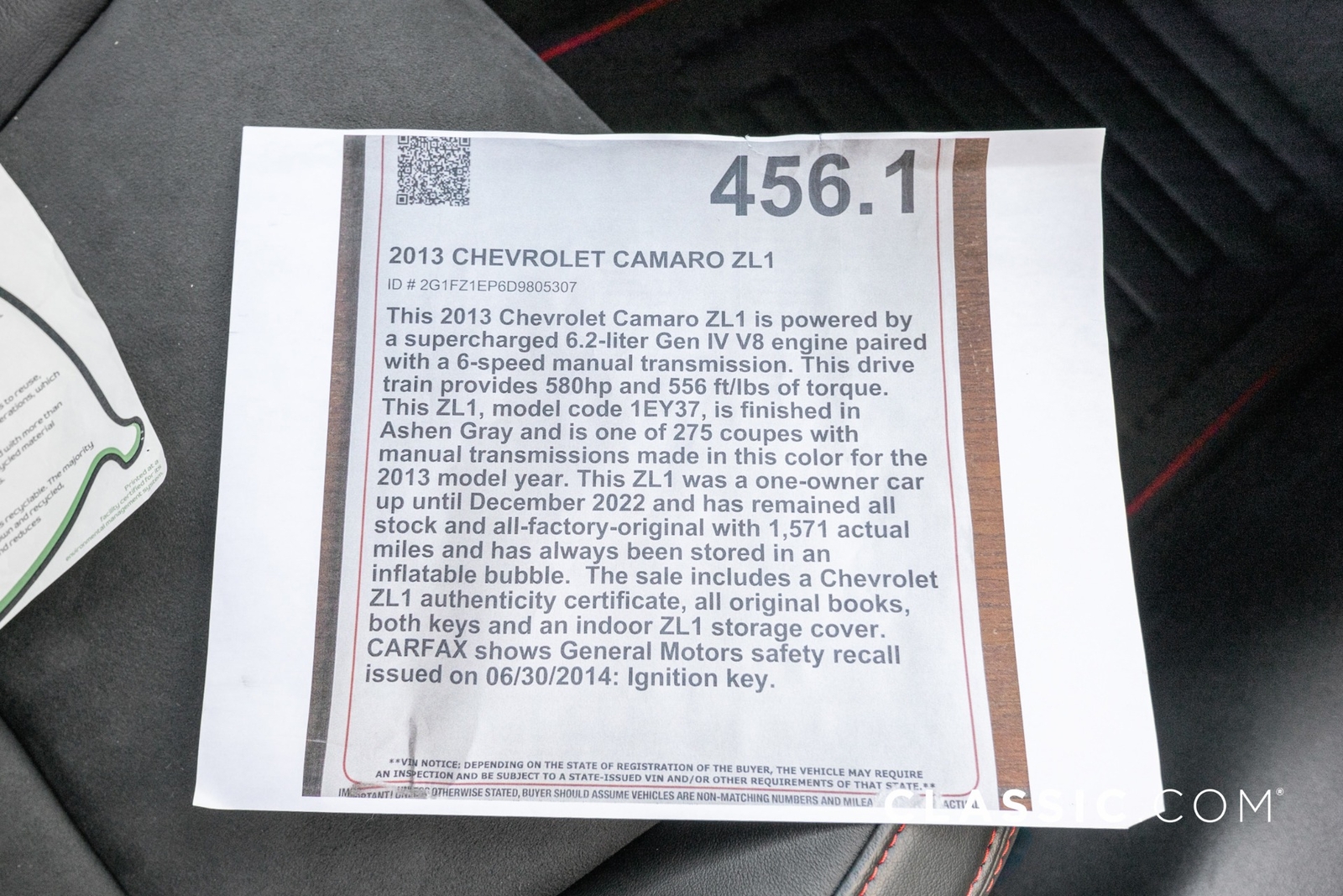 This low-mileage 2013 Camaro ZL1 comes with its original ZL1 documentation that shows initial ownership in Montana. It reportedly was always stored in an inflatable bubble and remained with this owner until December 2022 when it was sold at auction with less than 1,600 miles on the odometer. Highlights include: