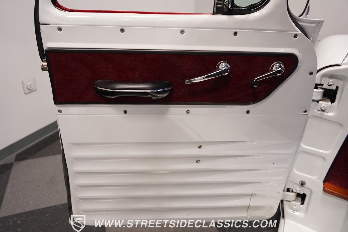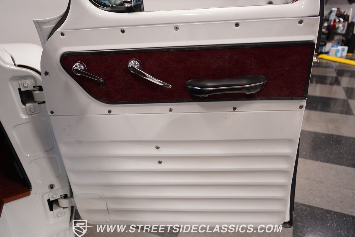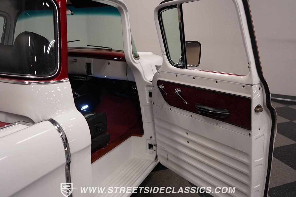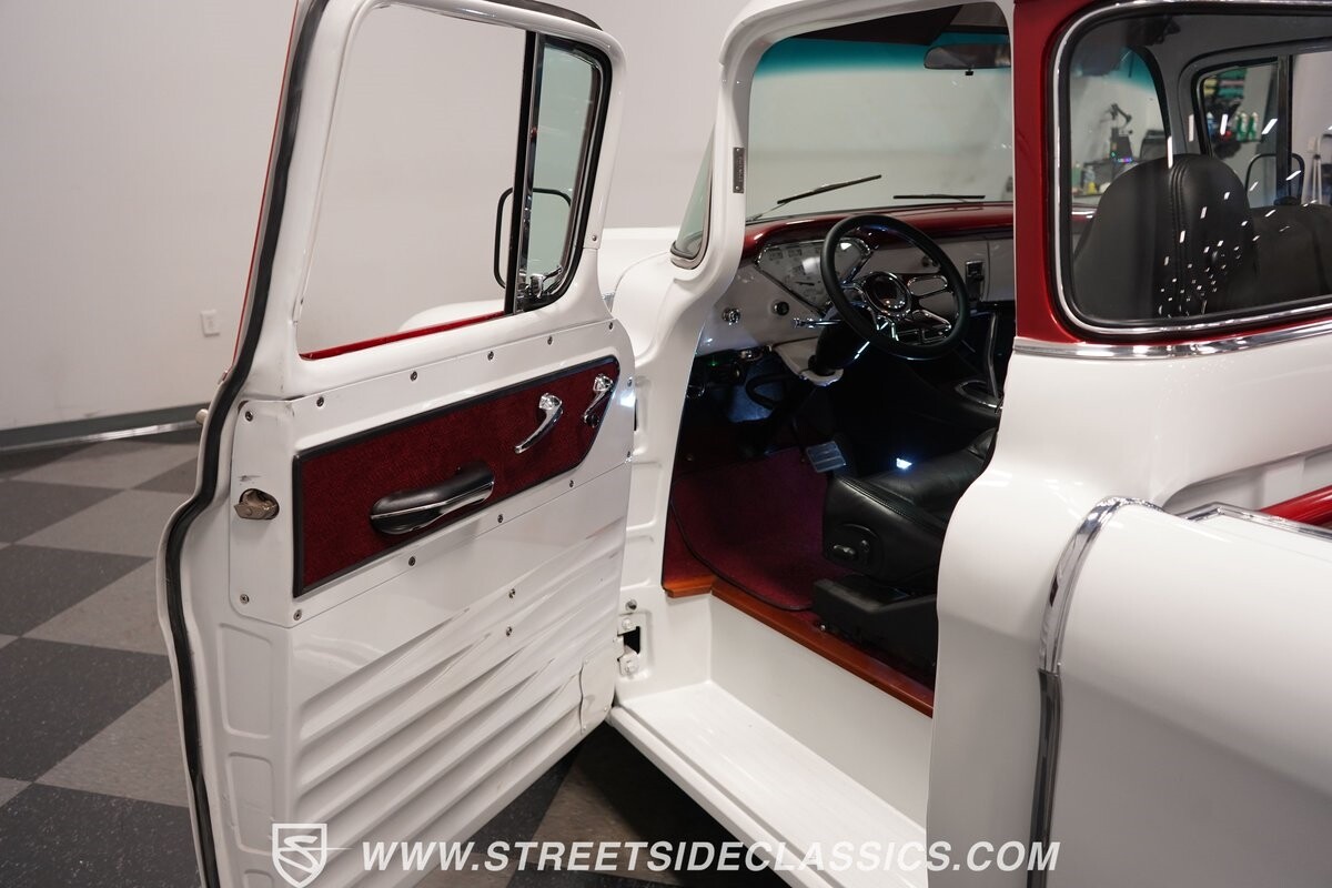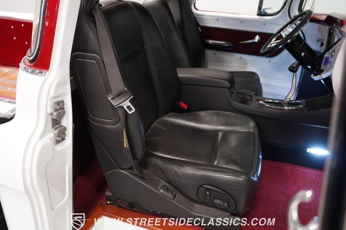 The wraparound rear glass lets in plenty more light to show off this truck's full custom interior. It's quite attractive where the white and red two-tone from the exterior continues with an intricate intertwining on the dash, doors, carpet, and headliner. And it takes to heart the idea that the Cameo was built to be a more comfortable pickup - including an armrest center console, cup holders, an AM/FM/CD stereo, and cold-blowing air conditioning. And this is certainly an upgraded driver with modern bucket seats that power adjust, a tilt steering column, and a full set of Classic Instruments readouts with tach.