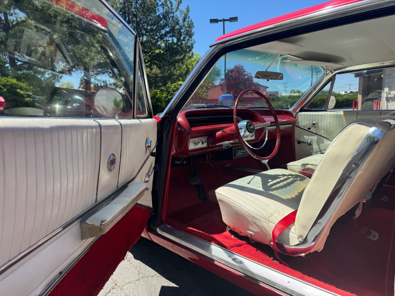 This is a 1964 Chevrolet Impala Super Sport with a 327 4 barrel engine and powerglide automatic transmission. Has power steering and runs and drives good. It’s definitely it a show car but a driver quality car. Paint is old and has flaws and imperfections. Same goes with interior. Seems to have minimal rust. Looks like some patch work was done in the trunk as you can see in the pictures. Please review all pictures. Has an aftermarket stereo. Wipers are not currently working. Lights and turn signals are working. Gauges seem to work fine. Glass is in good original condition. If you have any questions or would like the buy it now price, please call 208-258-9927. If you need help with getting the car shipped we can help. We are a dealership in Boise, Idaho. I have a central dispatch account and can get discounted shipping. Send me your city and zip code for a shipping quote.