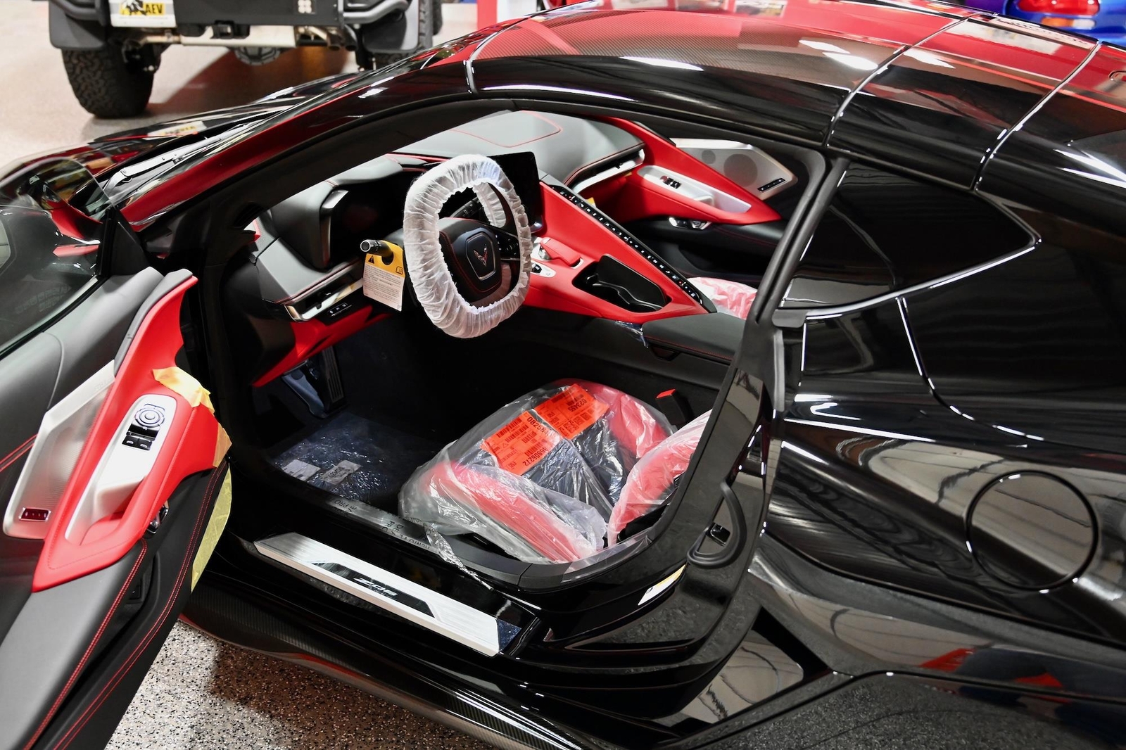 She is finished in Black w/ Carbon Fiber Stripes & Red Accents, wrapped around a gorgeous two-tone Adrenaline Red/Black Leather interior. I can safely say that it is the most beautiful C8 Corvette that I have ever seen, and I have yet to see another one quite like it! Rather than typing up a novel length description of what these Corvette Z06/Z07 cars are all about, I will assume that you already know what it is that you are looking at, and if not, there is a plethora of information online, as well as hundreds of videos that show what these cars are capable of. Simply stated: it is an American-built supercar, and you would have to spend at least twice as much for an exotic European brand to get the same performance numbers.