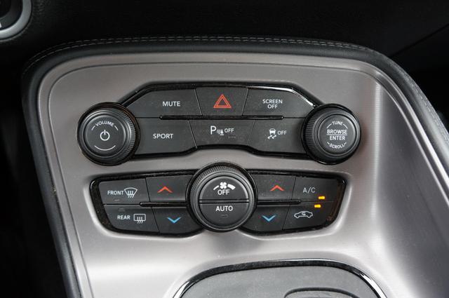 Inside the cabin, the Dodge Challenger R/T offers a driver-focused interior with a mix of retro and modern design elements. The coupe features comfortable cloth upholstery, a leather-wrapped steering wheel, and a user-friendly infotainment system with a touchscreen display, Bluetooth connect