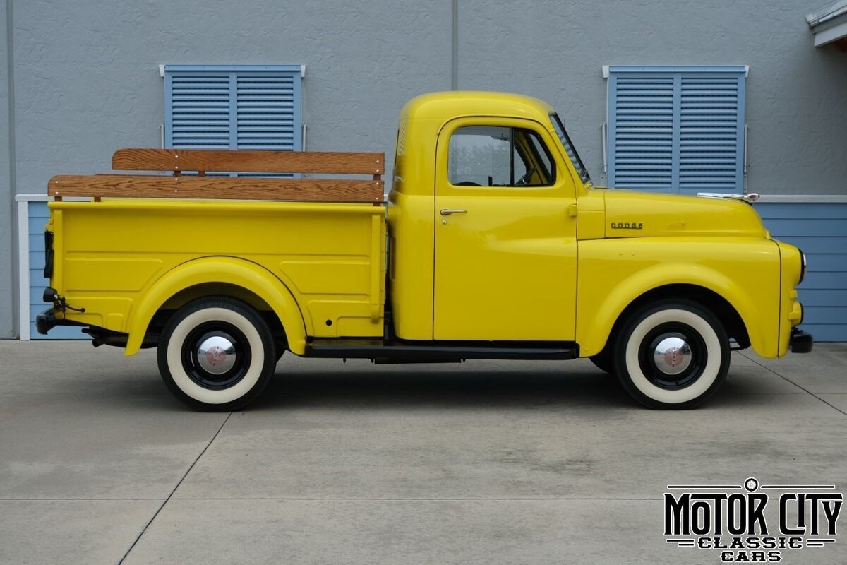 It isn't often we have the opportunity to own a vehicle for a second time and offer it for sale. We reserve this for only those that are truly special. This truck is part of that club. This stunning yellow B3B Pilothouse pickup is the result of a no-expense spared restoration. From the flawless body to the stunning interior; this truck is undoubtedly one of the finest post-war pickups available on the market today. The correct 218ci inline 6-cylinder motor; tied to a 3-speed column shift transmission; fires right up and drives fantastically. Dodge trucks are regularly experiencing value growth due to their rarity. This truck is both a great investment as well as a truck that will capture the attention of anyone who sees it.