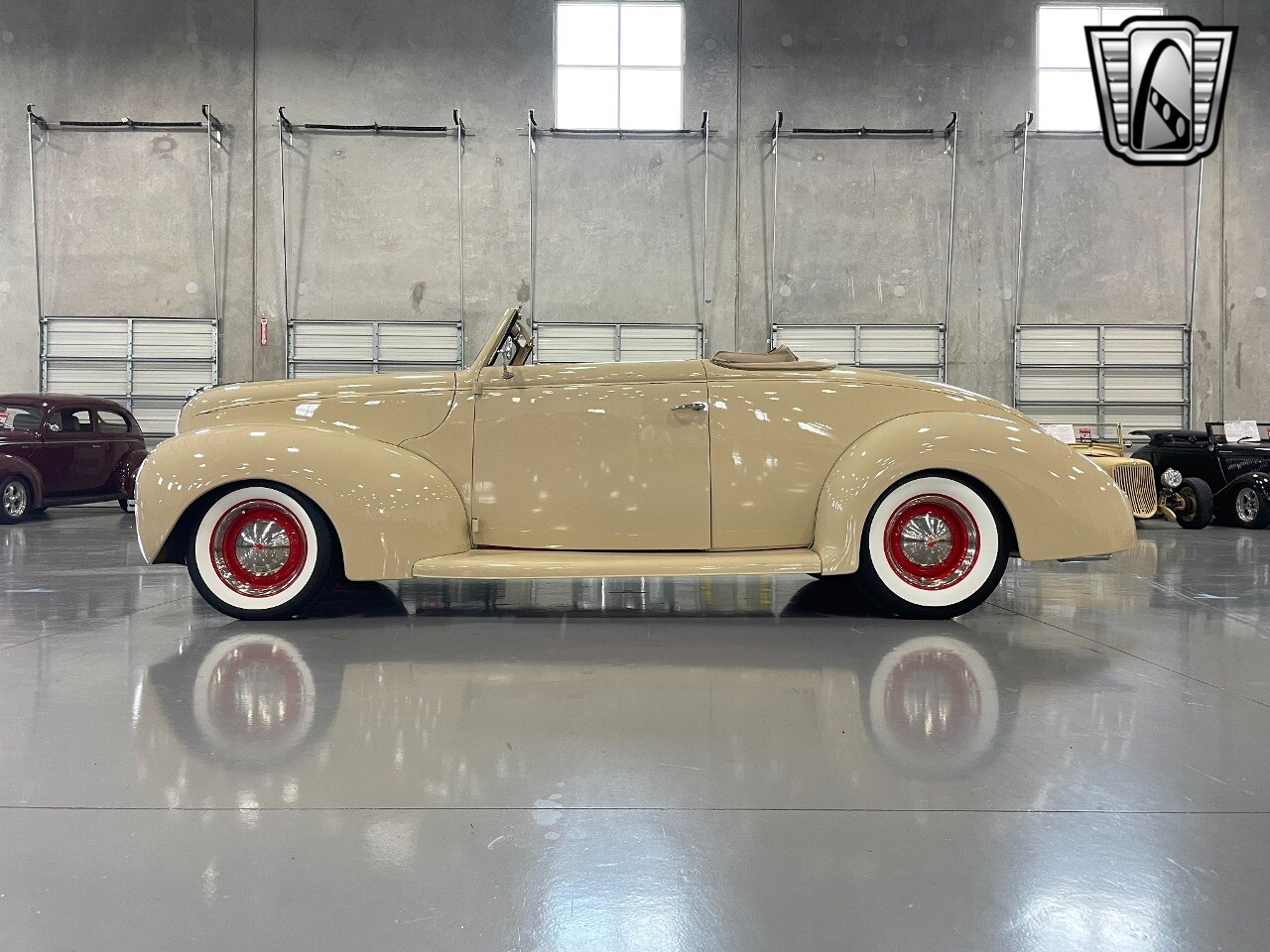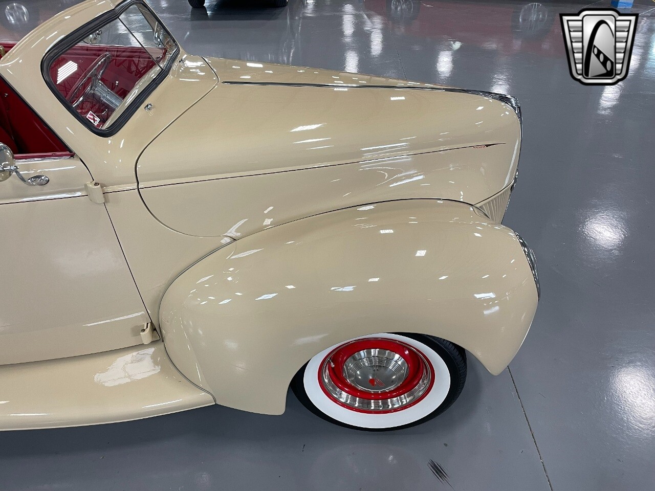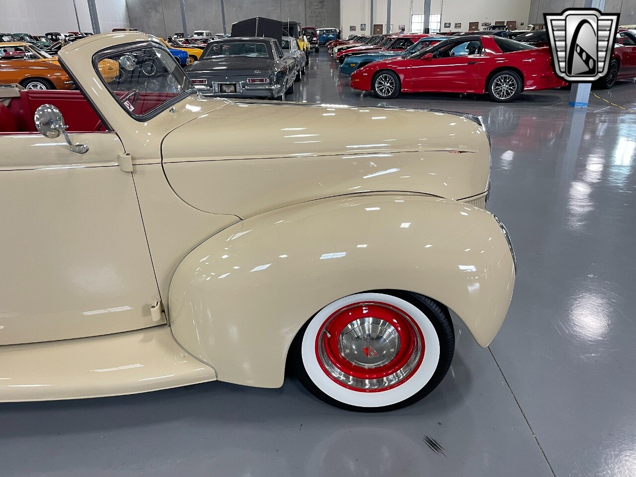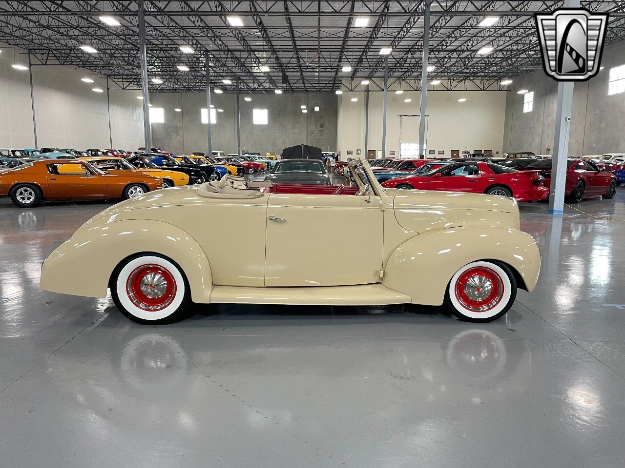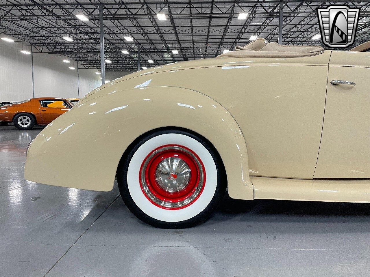 Gateway Classic Cars of San Antonio/Austin is proud to present this 1939 Ford Standard. The beige convertible top matches nicely with the Cream Beige paint makes this one of the few convertibles that looks terrific with the top in place. The bright red inside looks great against the red wheels and red accents to make this look like quite a thoughtful package inside and out. Under the hood, you'll find a fuel-injected 350 cubic-inch V8. It has all the right features you want, like upgraded pulleys, a serpentine belt, and an aluminum radiator with electric fan, shorty headers add power and rumble as they exhale into the dual exhaust. The Pete & Jakes chassis, a TCI tubular A-arm front suspension, ladder bar rear, adjustable coilovers, a Currie 9-inch rear, and Wilwood four-wheel power disc brakes help control the added power from the V8. Add in power steering and the four-speed automatic transmission with overdrive, and you've got a stellar rod that you can easily drive anywhere. There's also a Lokar floor shifter, upgraded readouts, and the banjo-style sports steering wheel is mounted on a tilt column. There are even the right luxuries for all-day driving, like power windows, an AM/FM/CD stereo, and modern R134a air conditioning. A shining and fuel-injected small block, a leather-lined A/C interior, four-wheel disc brakes, an overdrive transmission, and a sleek yet classic style on the outside makes for a thoughtful build that takes years to get right if you started from scratch..