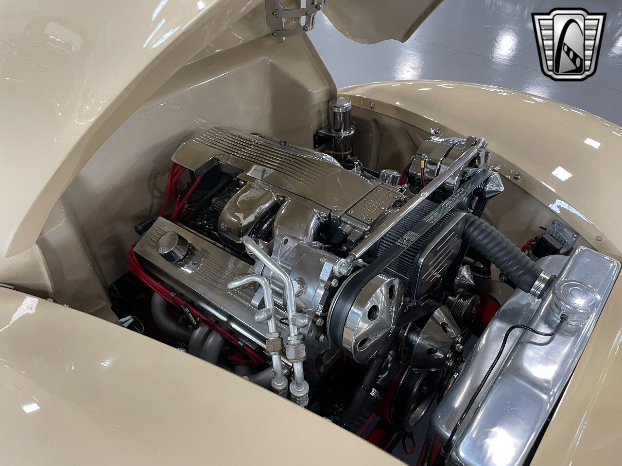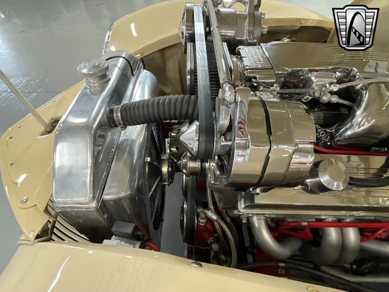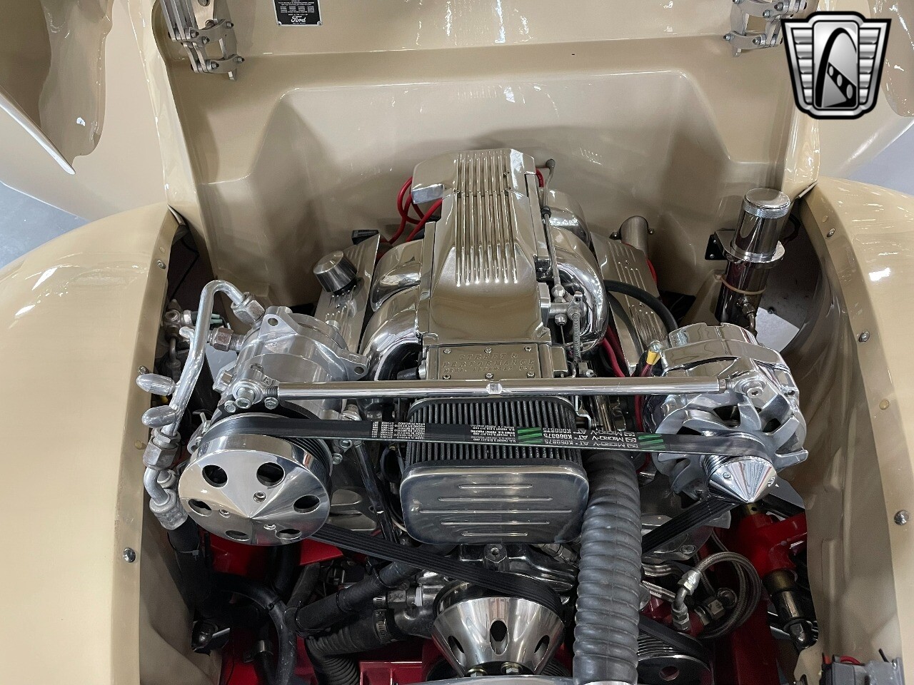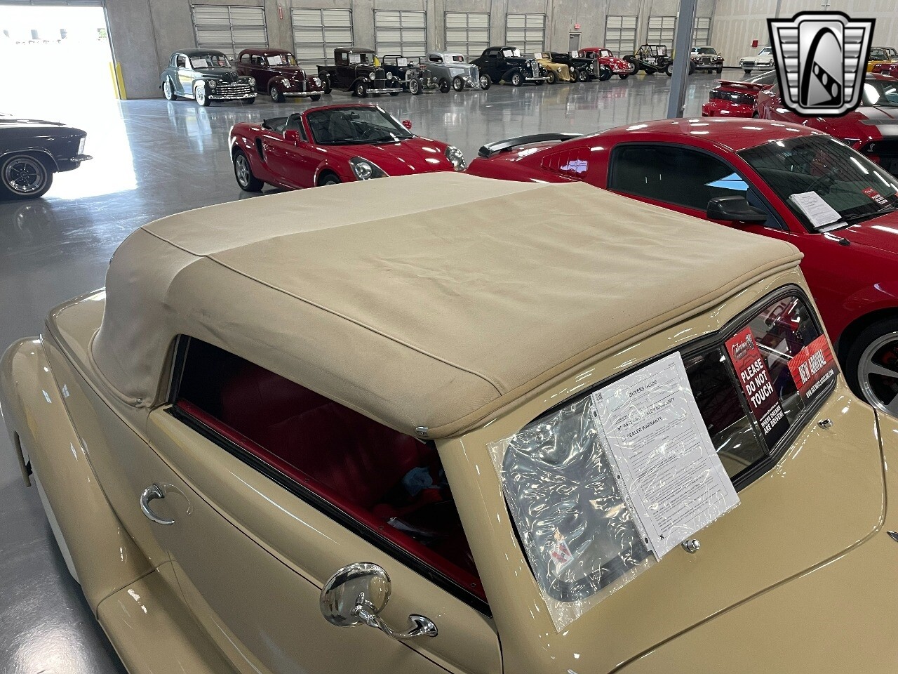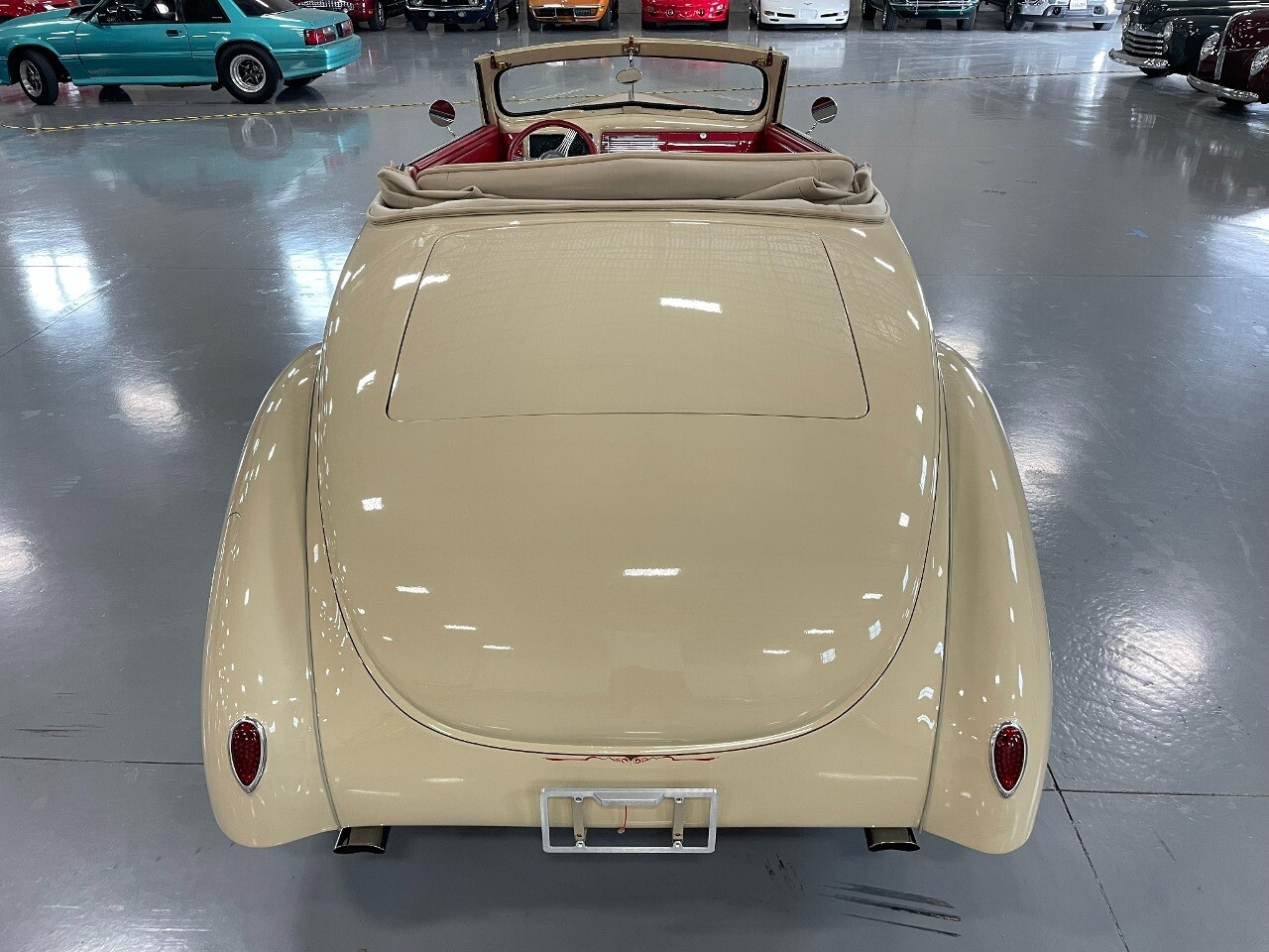 Gateway Classic Cars of San Antonio/Austin is proud to present this 1939 Ford Standard. The beige convertible top matches nicely with the Cream Beige paint makes this one of the few convertibles that looks terrific with the top in place. The bright red inside looks great against the red wheels and red accents to make this look like quite a thoughtful package inside and out. Under the hood, you'll find a fuel-injected 350 cubic-inch V8. It has all the right features you want, like upgraded pulleys, a serpentine belt, and an aluminum radiator with electric fan, shorty headers add power and rumble as they exhale into the dual exhaust. The Pete & Jakes chassis, a TCI tubular A-arm front suspension, ladder bar rear, adjustable coilovers, a Currie 9-inch rear, and Wilwood four-wheel power disc brakes help control the added power from the V8. Add in power steering and the four-speed automatic transmission with overdrive, and you've got a stellar rod that you can easily drive anywhere. There's also a Lokar floor shifter, upgraded readouts, and the banjo-style sports steering wheel is mounted on a tilt column. There are even the right luxuries for all-day driving, like power windows, an AM/FM/CD stereo, and modern R134a air conditioning. A shining and fuel-injected small block, a leather-lined A/C interior, four-wheel disc brakes, an overdrive transmission, and a sleek yet classic style on the outside makes for a thoughtful build that takes years to get right if you started from scratch..