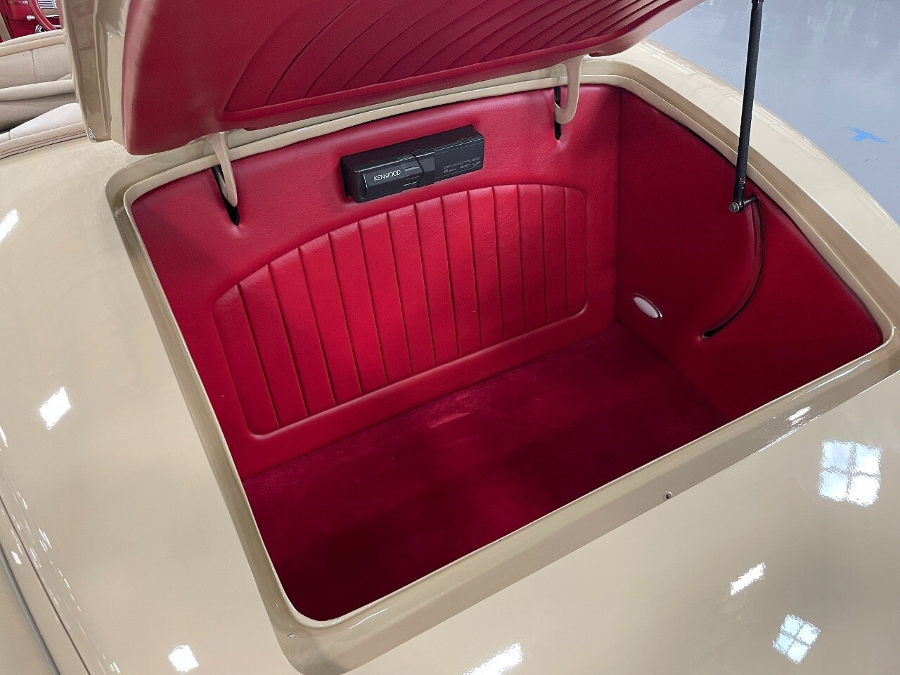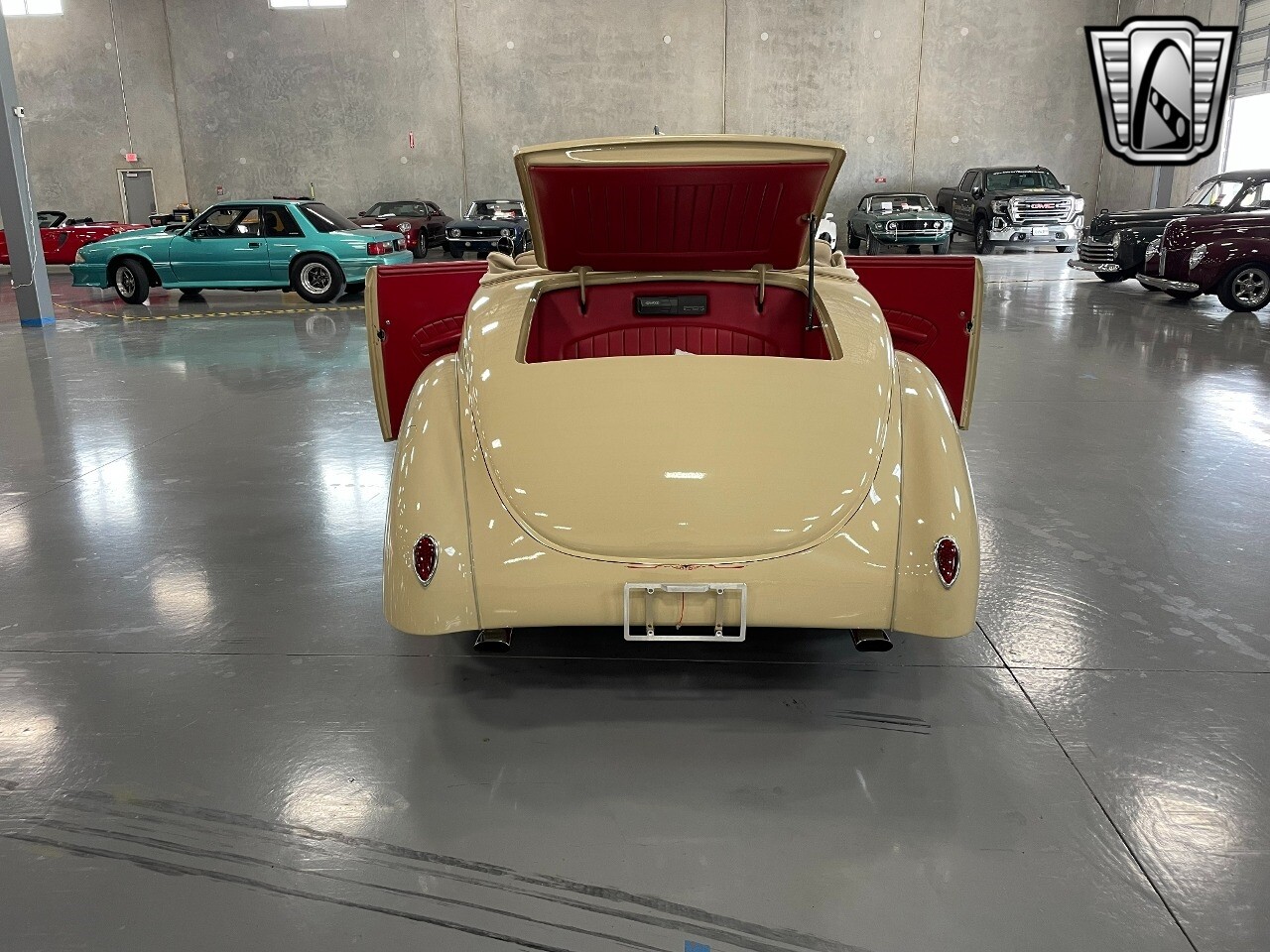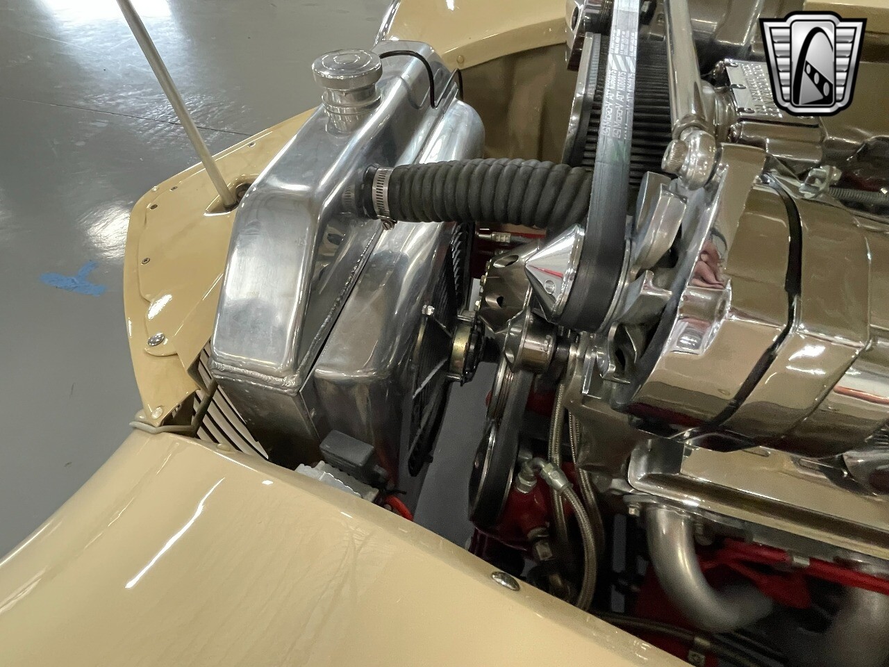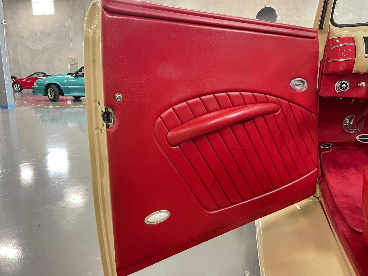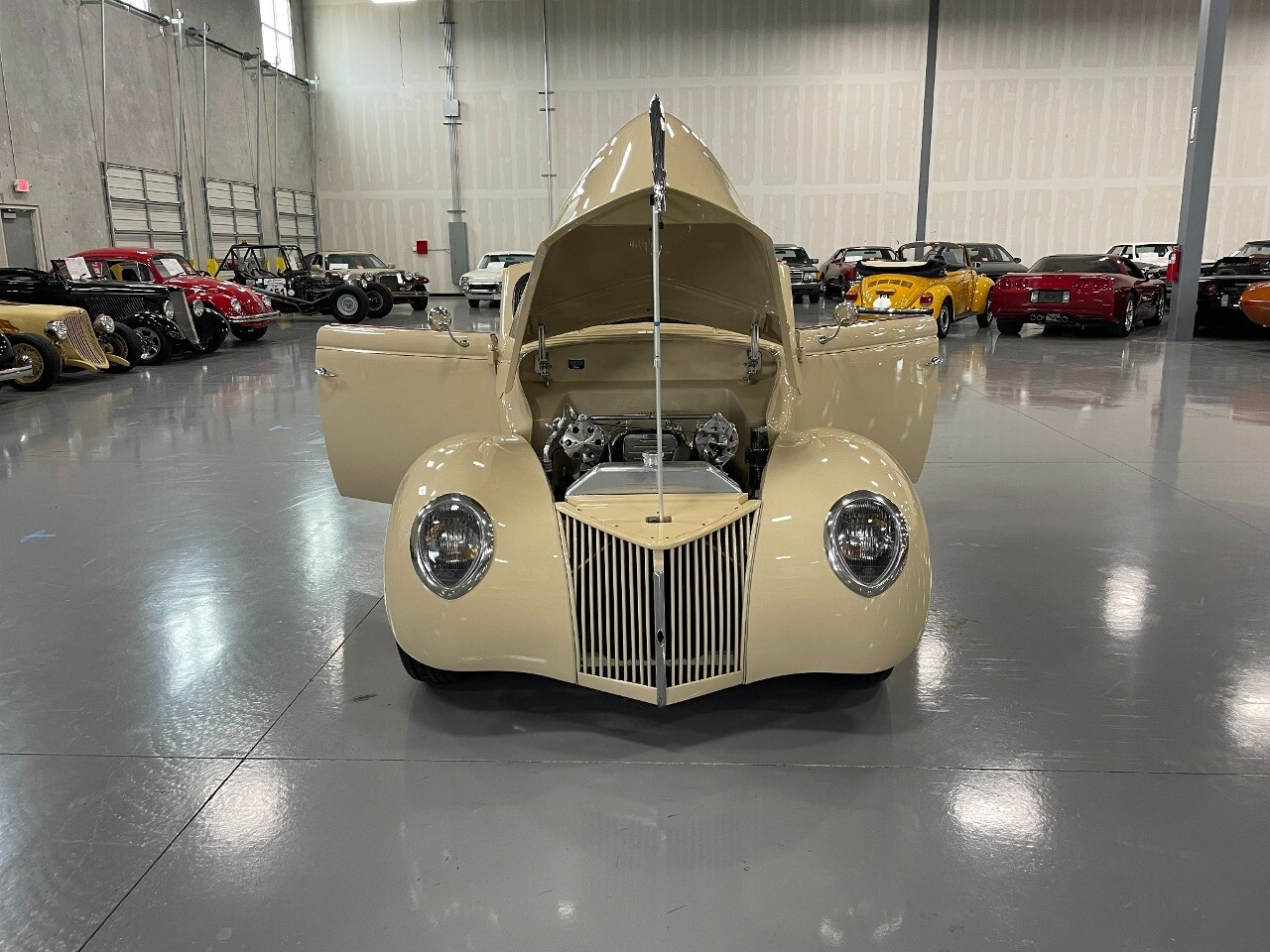 Gateway Classic Cars of San Antonio/Austin is proud to present this 1939 Ford Standard. The beige convertible top matches nicely with the Cream Beige paint makes this one of the few convertibles that looks terrific with the top in place. The bright red inside looks great against the red wheels and red accents to make this look like quite a thoughtful package inside and out. Under the hood, you'll find a fuel-injected 350 cubic-inch V8. It has all the right features you want, like upgraded pulleys, a serpentine belt, and an aluminum radiator with electric fan, shorty headers add power and rumble as they exhale into the dual exhaust. The Pete & Jakes chassis, a TCI tubular A-arm front suspension, ladder bar rear, adjustable coilovers, a Currie 9-inch rear, and Wilwood four-wheel power disc brakes help control the added power from the V8. Add in power steering and the four-speed automatic transmission with overdrive, and you've got a stellar rod that you can easily drive anywhere. There's also a Lokar floor shifter, upgraded readouts, and the banjo-style sports steering wheel is mounted on a tilt column. There are even the right luxuries for all-day driving, like power windows, an AM/FM/CD stereo, and modern R134a air conditioning. A shining and fuel-injected small block, a leather-lined A/C interior, four-wheel disc brakes, an overdrive transmission, and a sleek yet classic style on the outside makes for a thoughtful build that takes years to get right if you started from scratch..