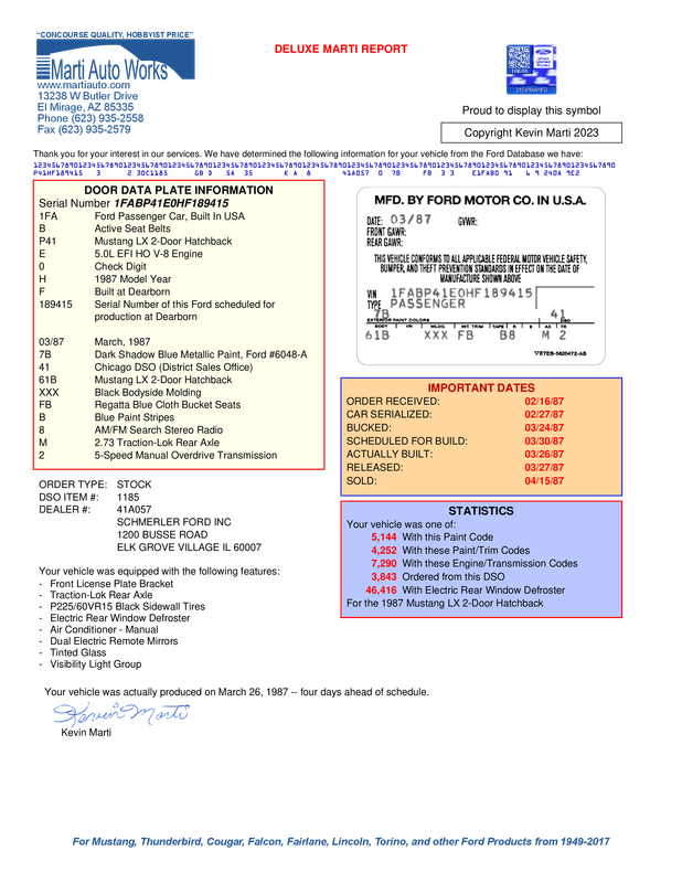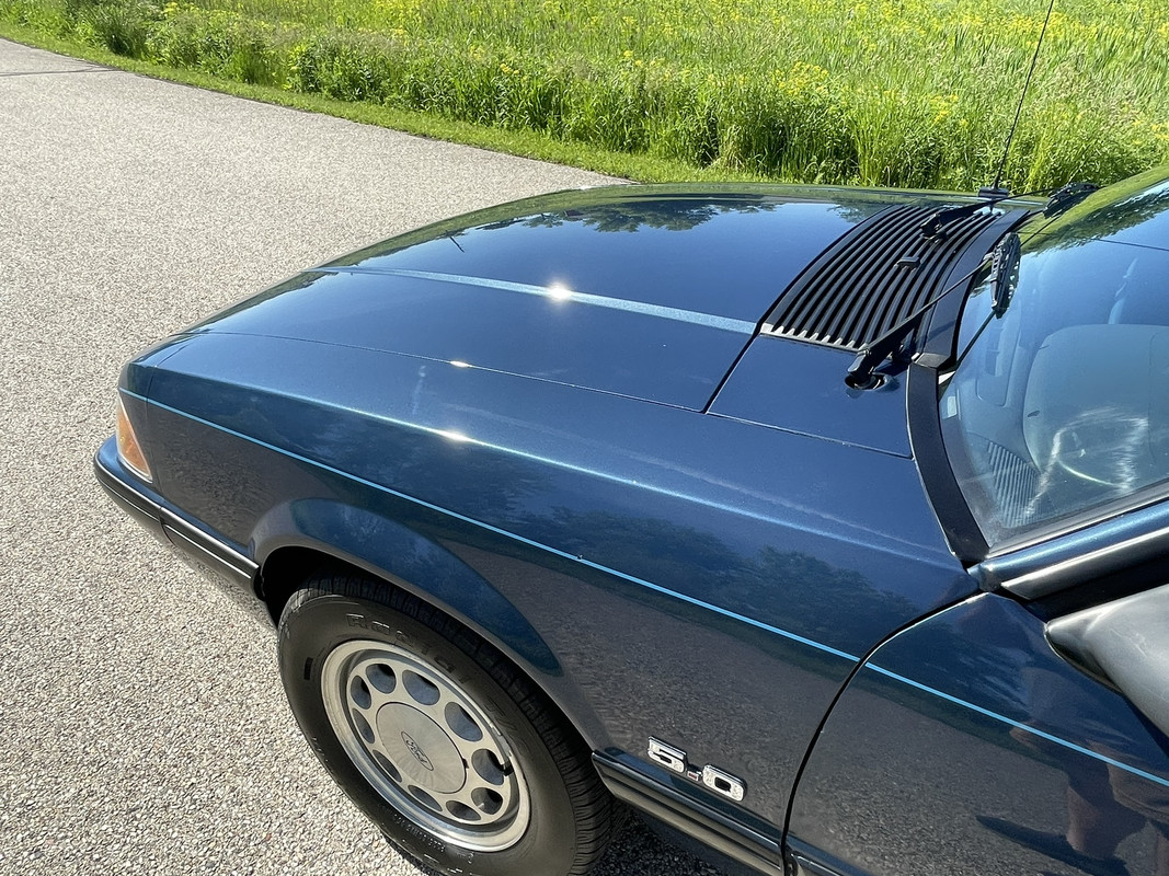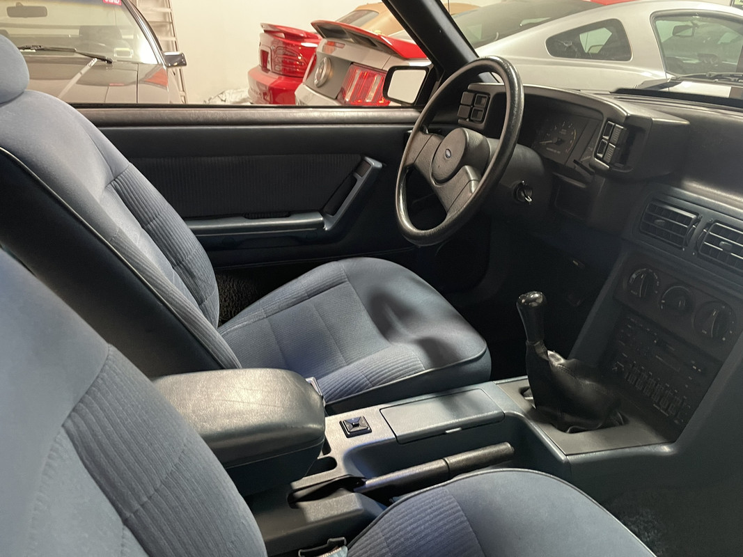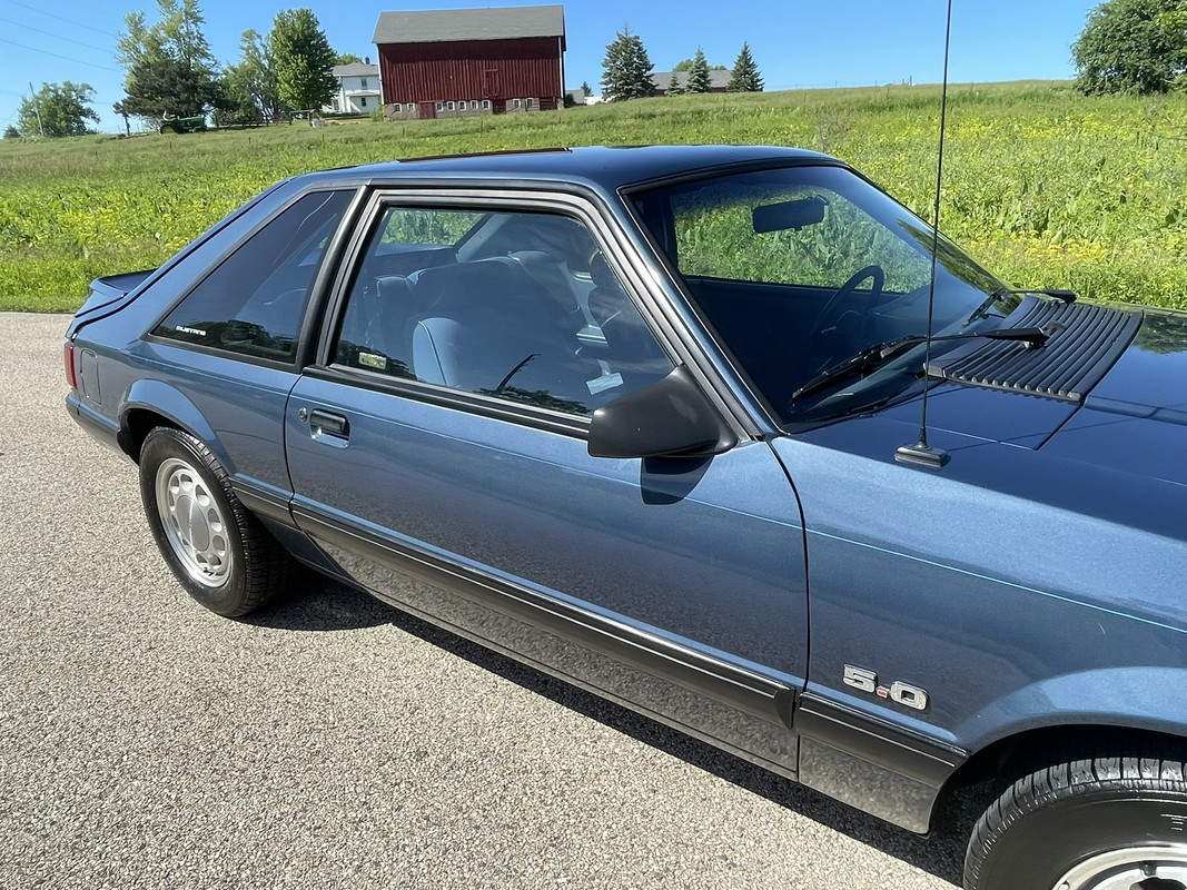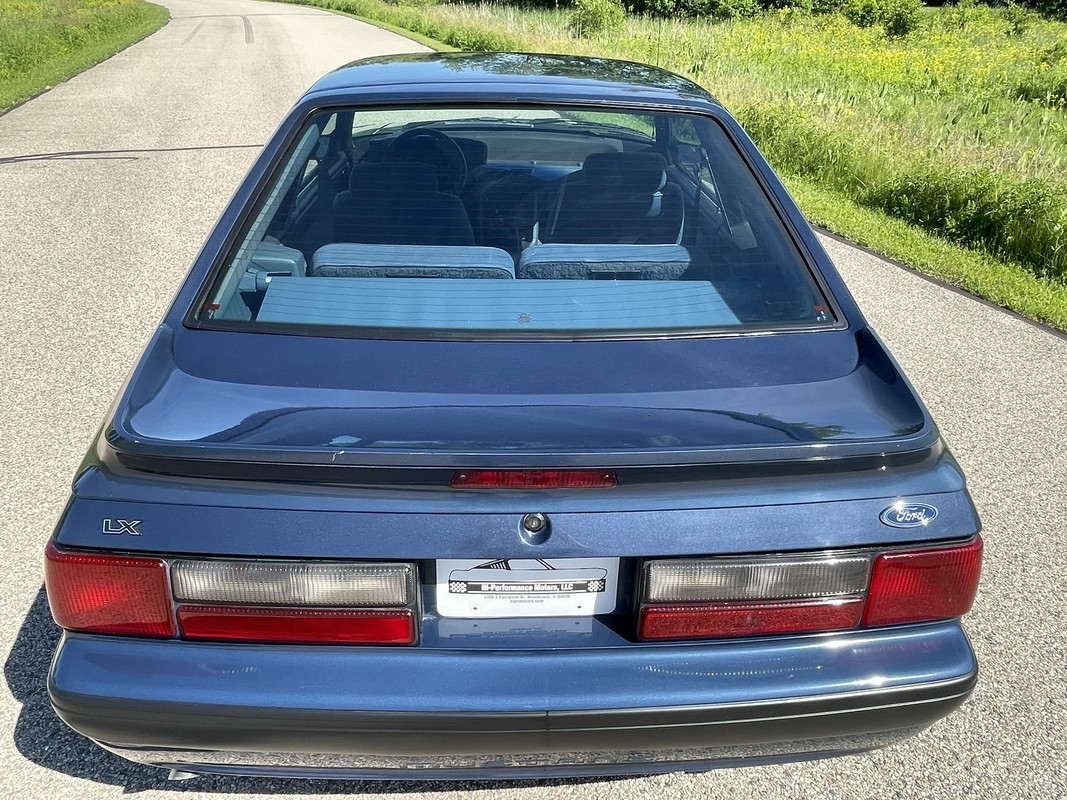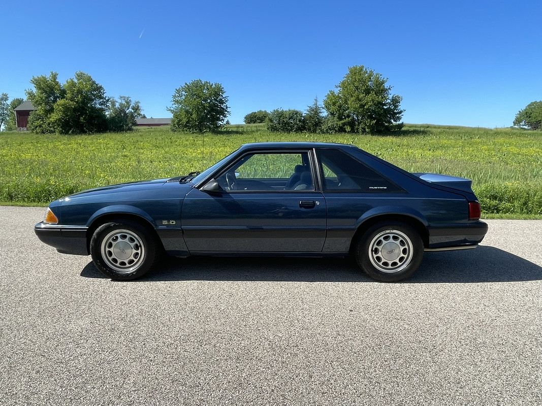 Becoming very well recognized in the collectable car market are the FOX platform Mustangs. Well known for the "bang for the buck" - the 5.0 was a ball of fun. The GT was the big dog on the streets but if you wanted a faster Mustang you purchased the LX for its lighter body resulting in a much quicker car. Couple the 5.0 with a 5 speed manual transmission and you were set for the track! Just ask Steve Saleen - his FOX mustangs were built off the LX trim and made a huge name for himself with that winning recipe. Our Mustang LX is a well documented 1-owner, clean history car. Low miles and meticulous care! Wonderful paint, great tires, and very clean throughout. Documentation all on our website for your review with many more details. We purchased it from the original owner and his goal was the "big engine and the best stereo" he could get! If you notice there are not many power options - manual windows and locks - all part of the owner's plan to keep weight down and no issues either! The blue paint shines great, does have some touch ups, all trim and weatherstrip is in great shape. The interior is very close to perfect - no issues ready to enjoy for years to come! Ready for the next care giver to enjoy this low mile collectable Mustang. Please ask any questions and be sure to check out our website for more information, pictures, and videos as well.