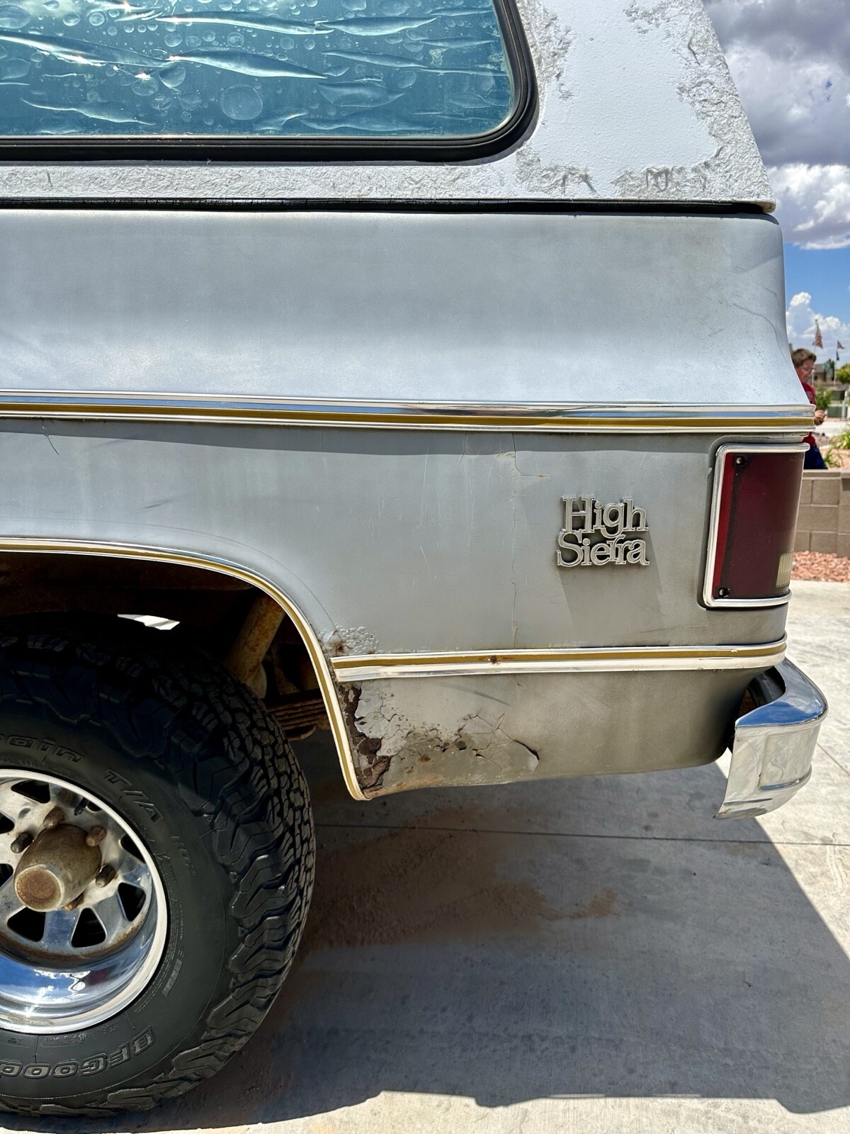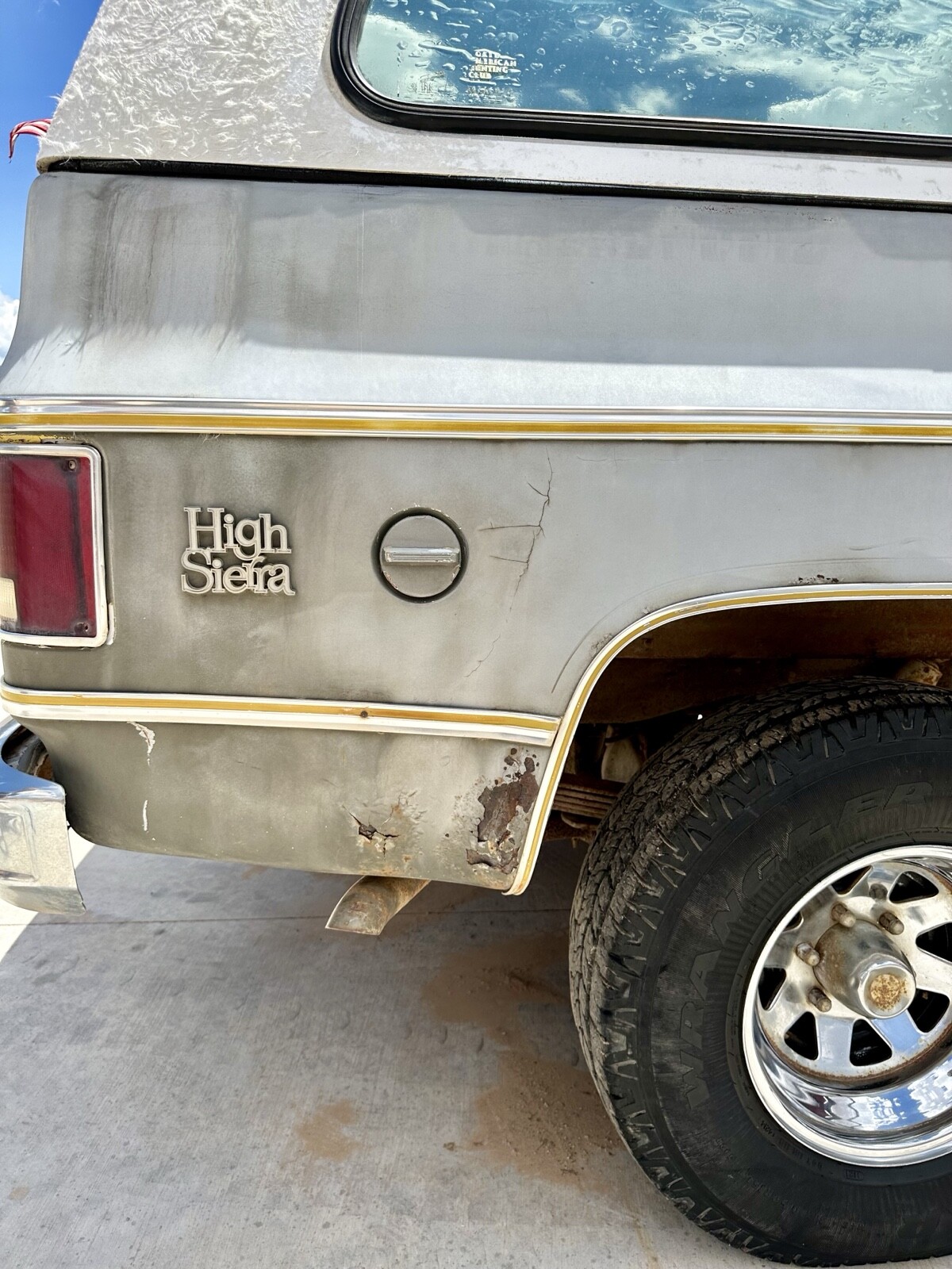 This truck has all of the options!!! AIR CONDITIONING, 400cid V8, AUTO TRANS, TILT, ELECTRIC CLOCK, HIGH SIERRA TRIM, TWO TONE PAINT AND MORE! Runs and sounds healthy!!!