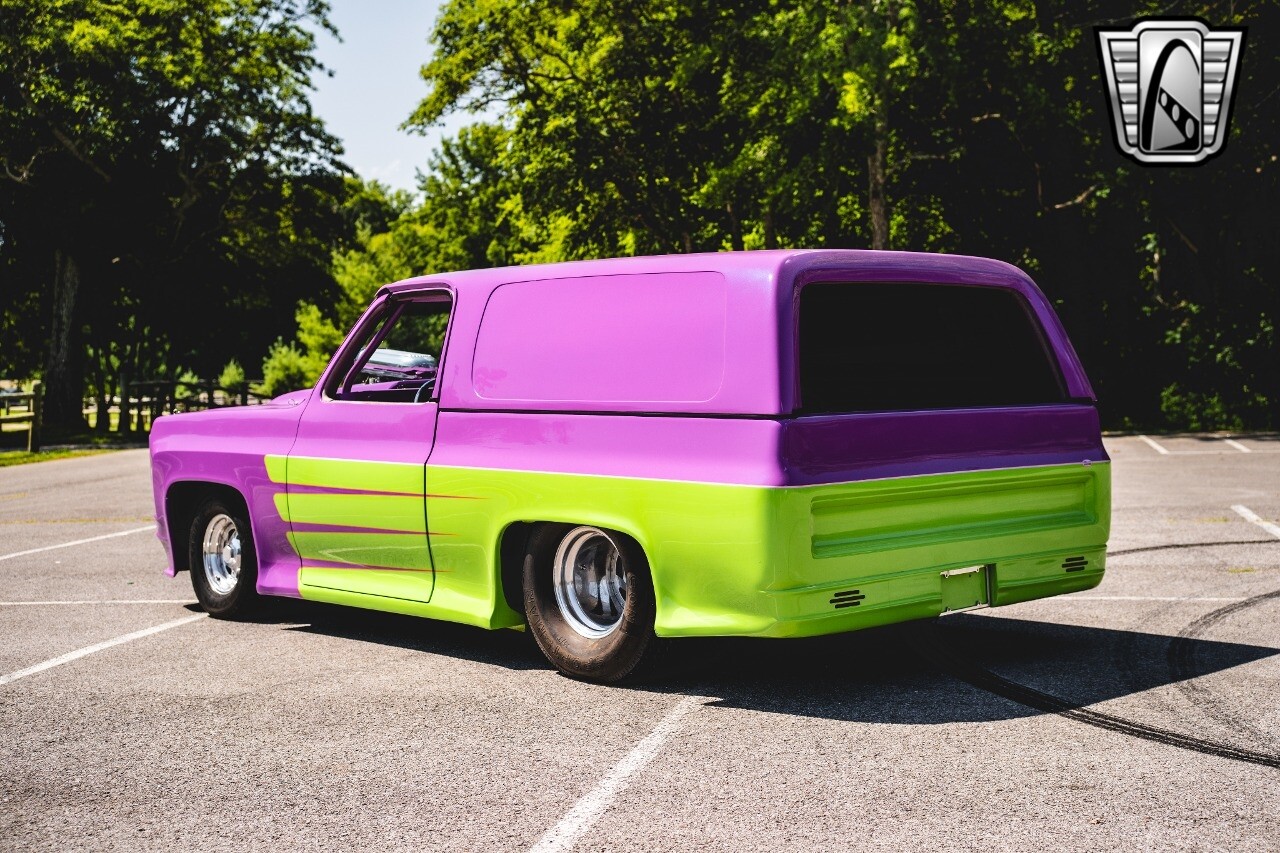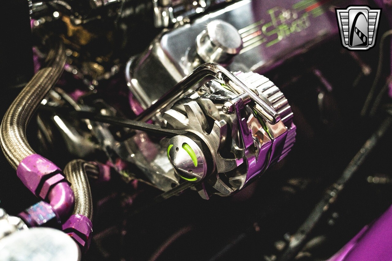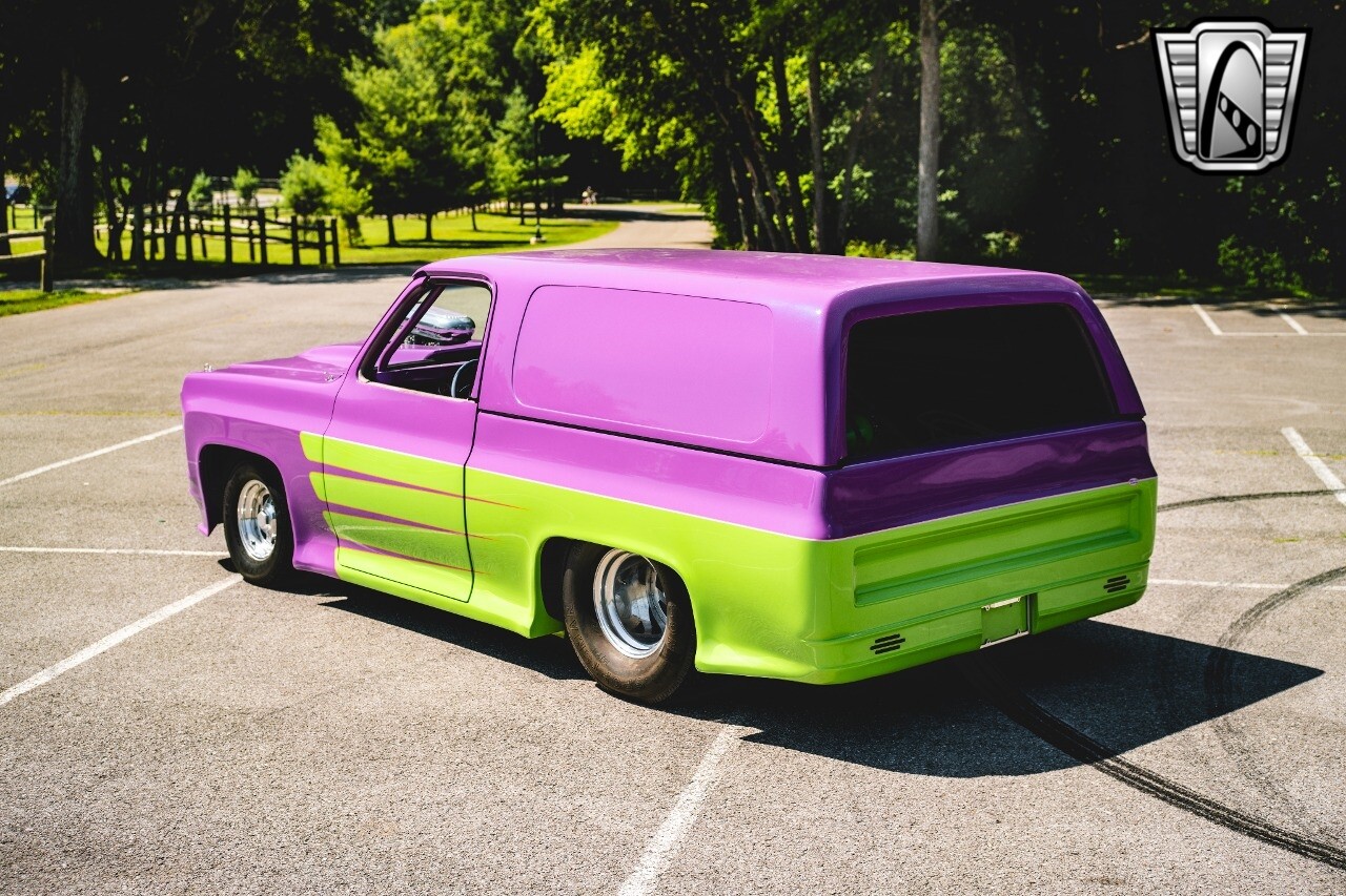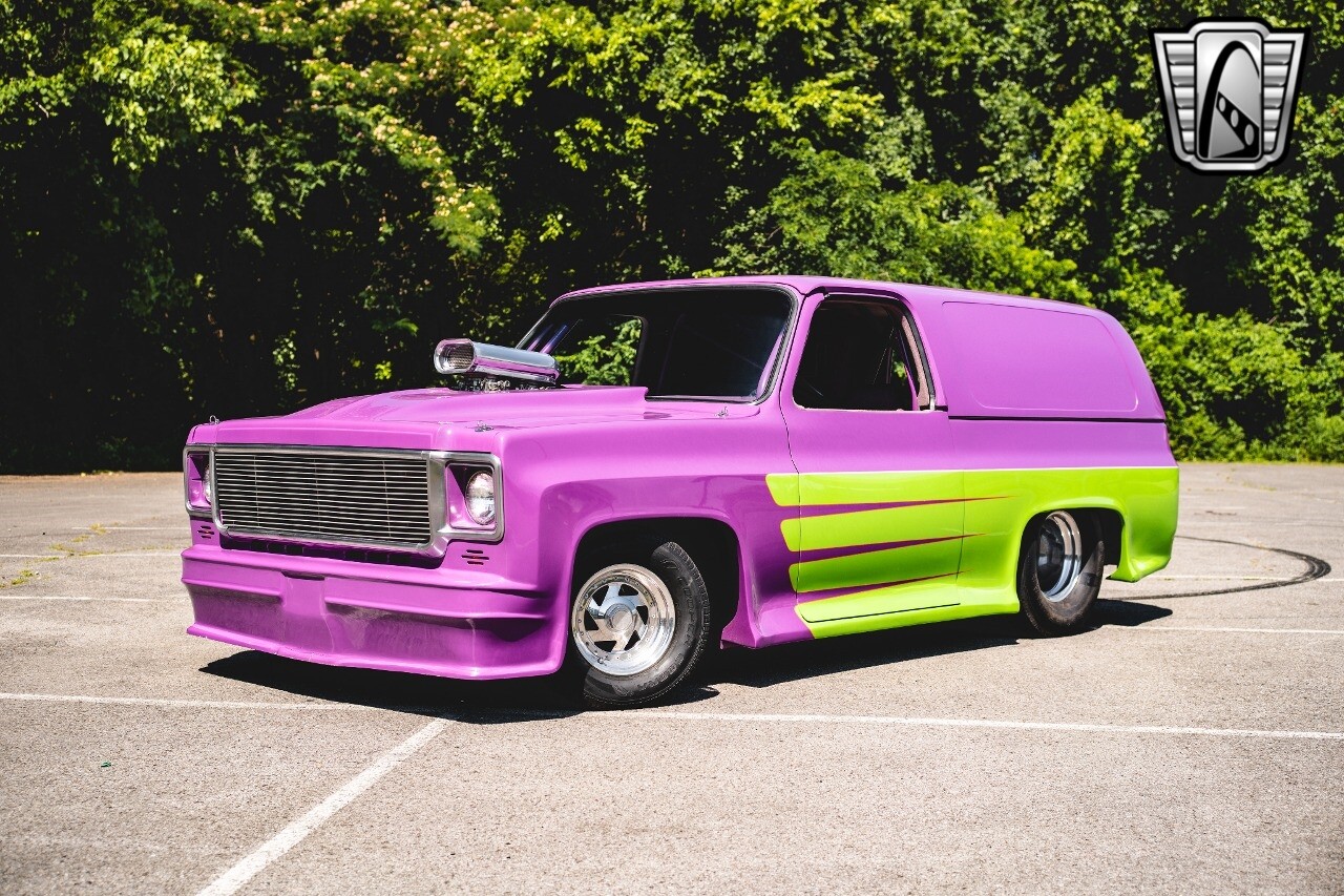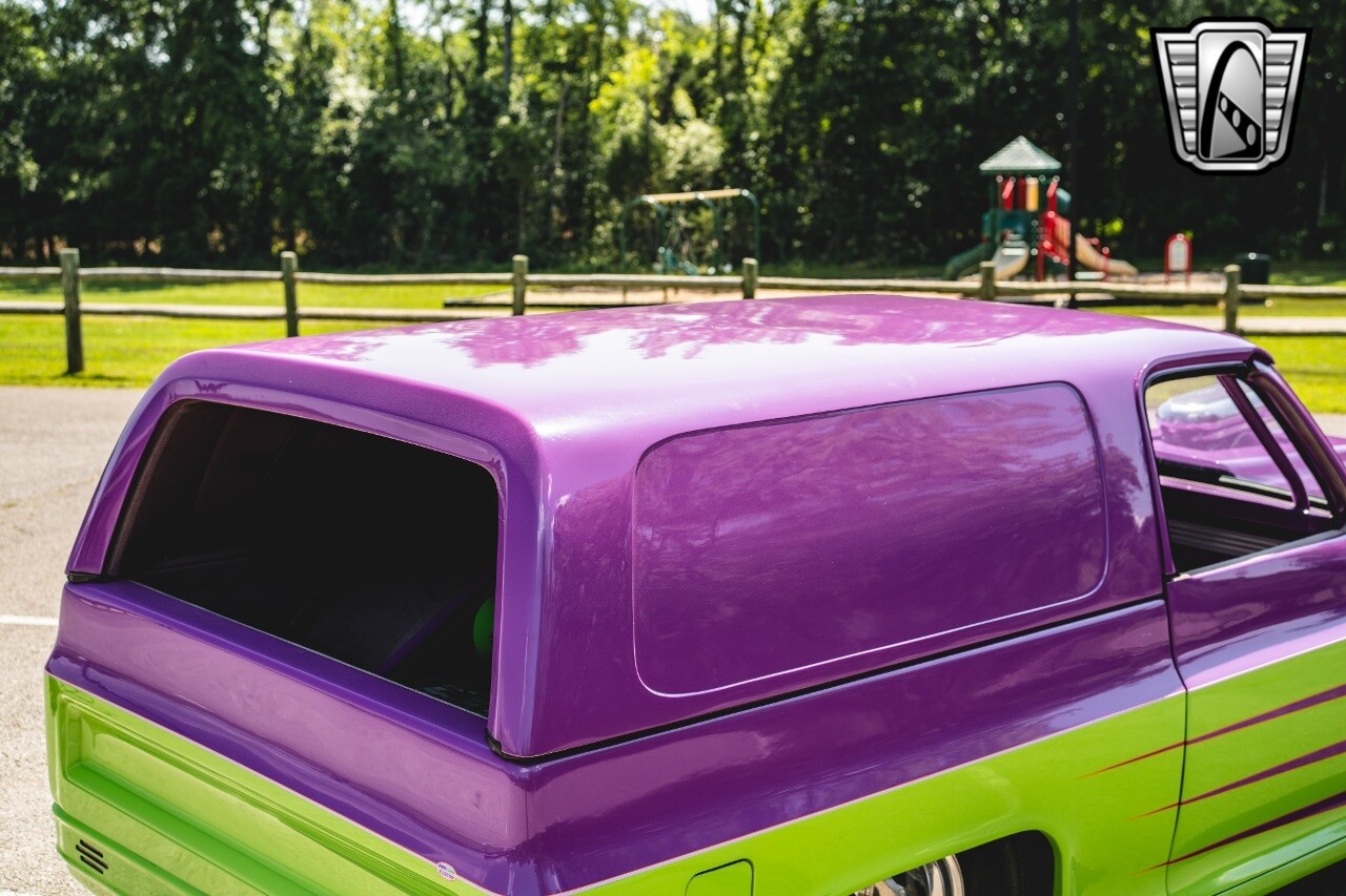 Gateway Classic Cars is proud to digitally present to you a classic blend of power and nostalgia: this 1974 GMC disguised as the iconic Chevy Blazer with a striking purple pearl and green exterior and a matching purple tweed interior. This remarkable vehicle was professionally built by Pete's Fabrication in Bowling Green, KY. Every piece of sheet metal was replaced with genuine GM parts. Equipped with a robust 454cid big block V8 engine topped with a 6-71 supercharger and Nitrous injection. Behind that is a TH400 automatic transmission, Currie 9-inch rear axle, coil over shocks, ladder bars. A blast to drive.