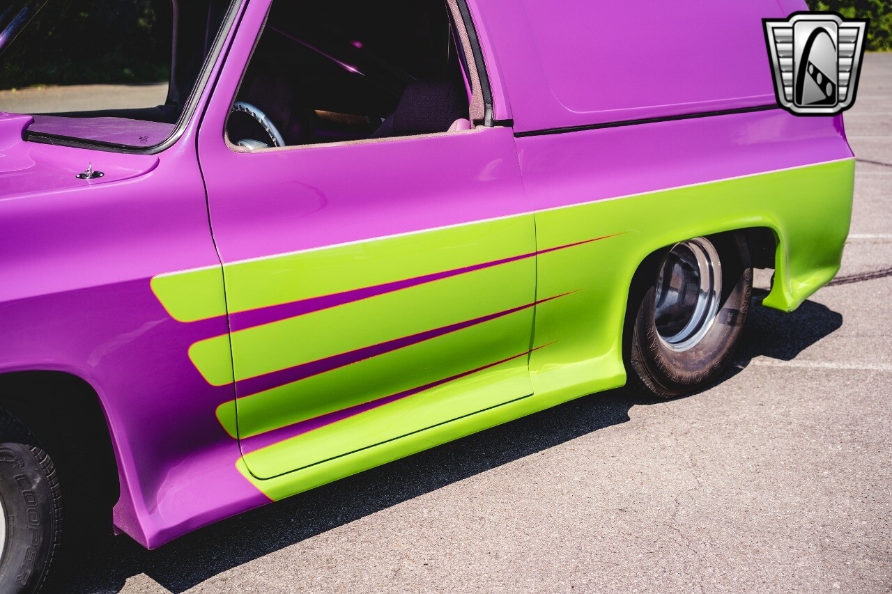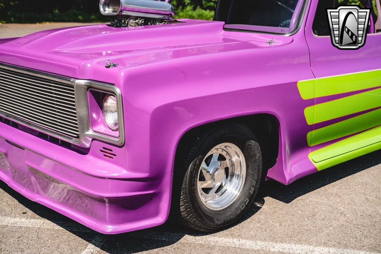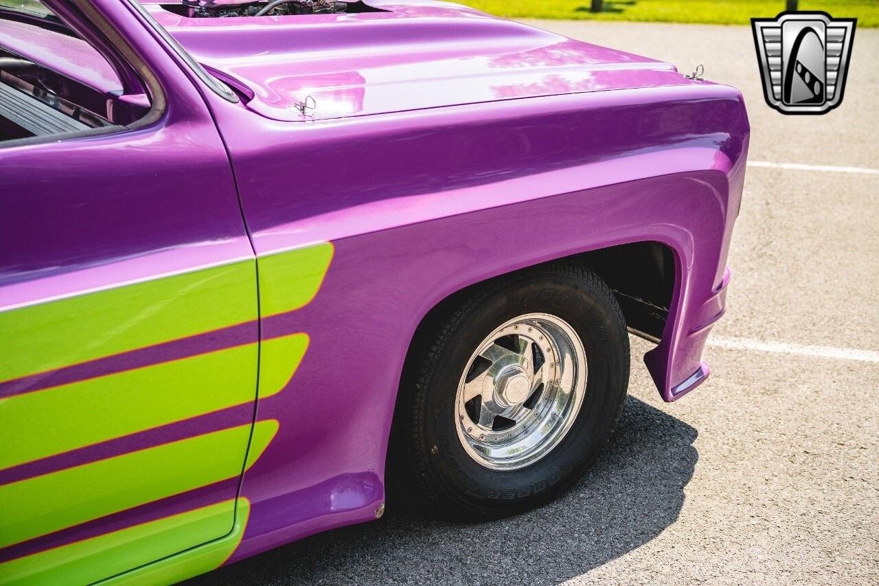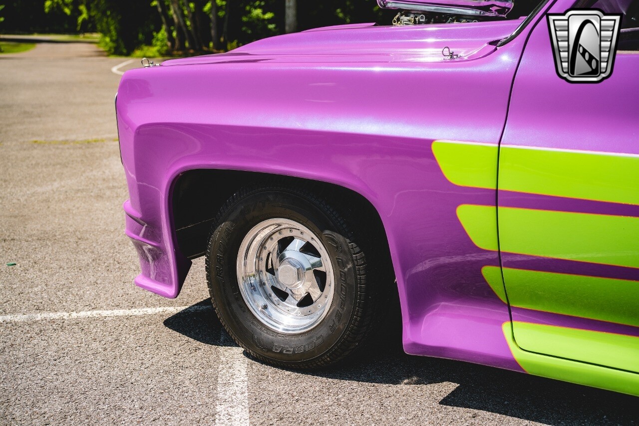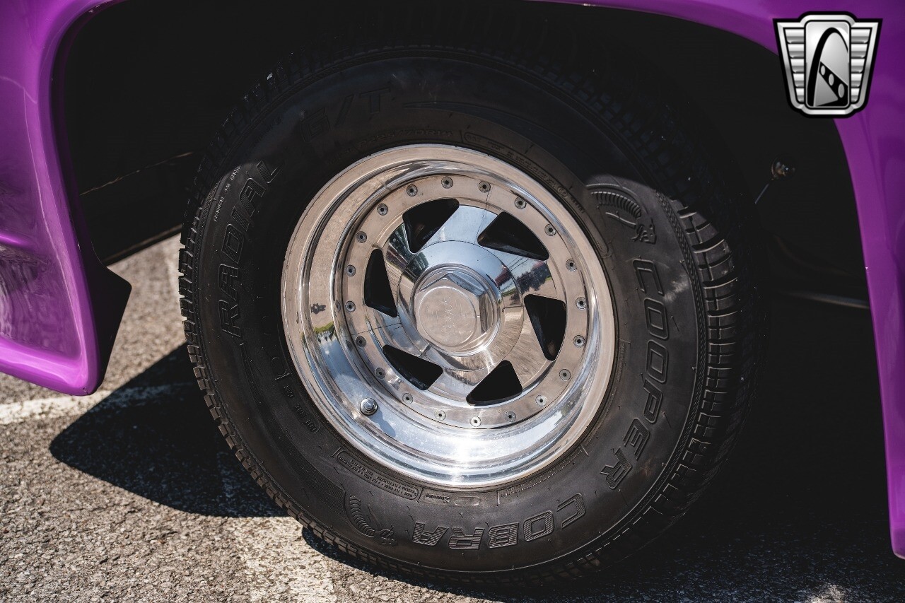Gateway Classic Cars is proud to digitally present to you a classic blend of power and nostalgia: this 1974 GMC disguised as the iconic Chevy Blazer with a striking purple pearl and green exterior and a matching purple tweed interior. This remarkable vehicle was professionally built by Pete's Fabrication in Bowling Green, KY. Every piece of sheet metal was replaced with genuine GM parts. Equipped with a robust 454cid big block V8 engine topped with a 6-71 supercharger and Nitrous injection. Behind that is a TH400 automatic transmission, Currie 9-inch rear axle, coil over shocks, ladder bars. A blast to drive.