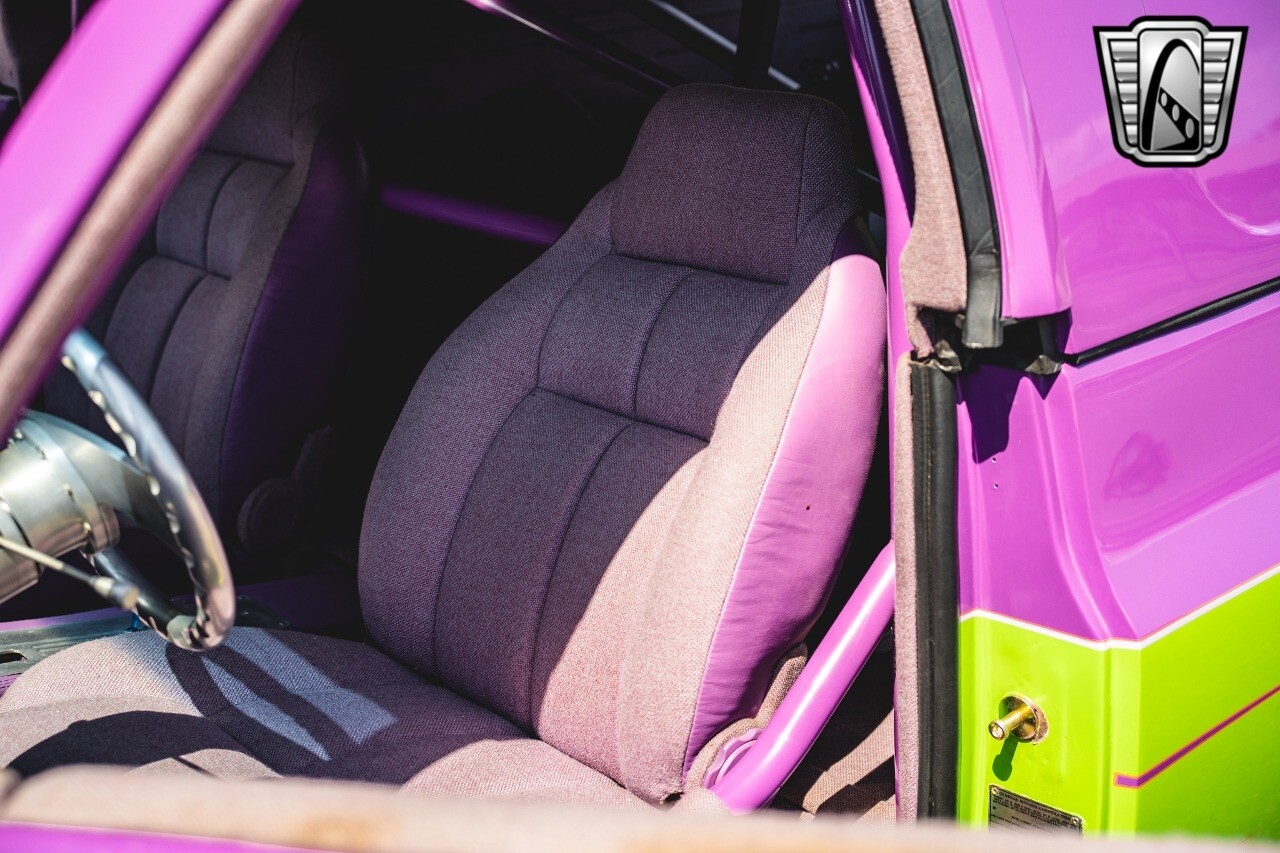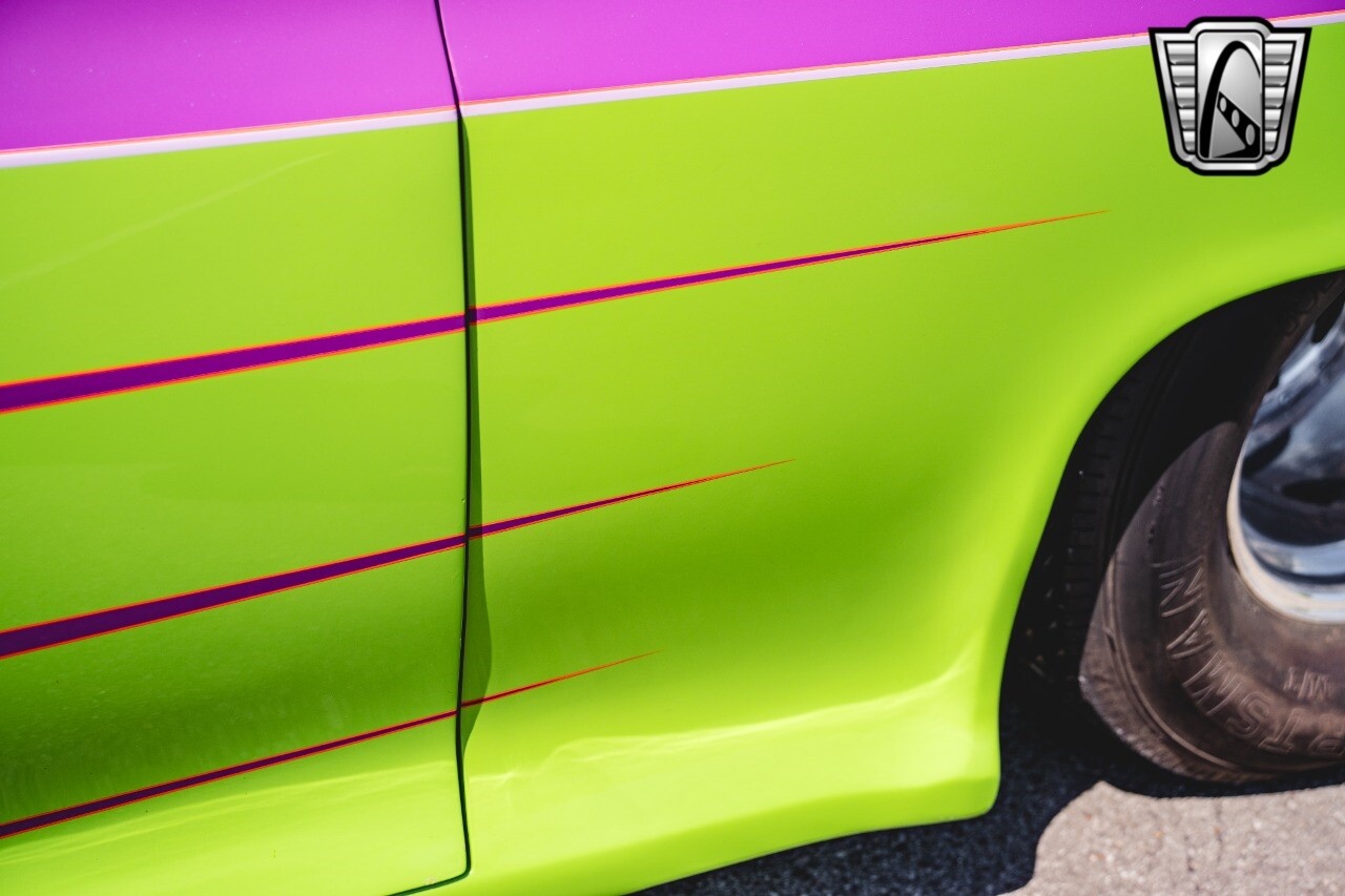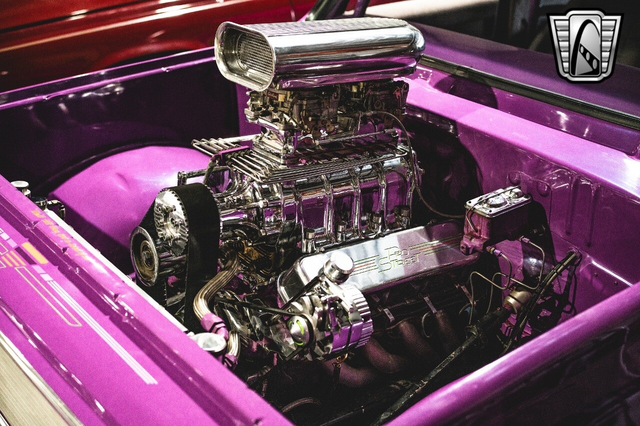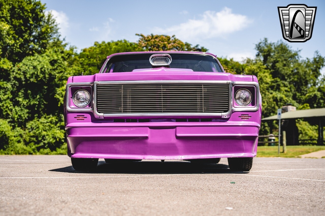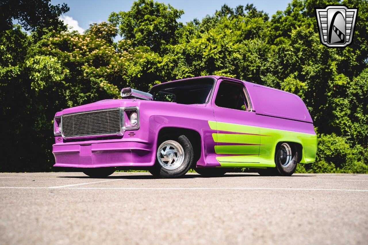Gateway Classic Cars is proud to digitally present to you a classic blend of power and nostalgia: this 1974 GMC disguised as the iconic Chevy Blazer with a striking purple pearl and green exterior and a matching purple tweed interior. This remarkable vehicle was professionally built by Pete's Fabrication in Bowling Green, KY. Every piece of sheet metal was replaced with genuine GM parts. Equipped with a robust 454cid big block V8 engine topped with a 6-71 supercharger and Nitrous injection. Behind that is a TH400 automatic transmission, Currie 9-inch rear axle, coil over shocks, ladder bars. A blast to drive.