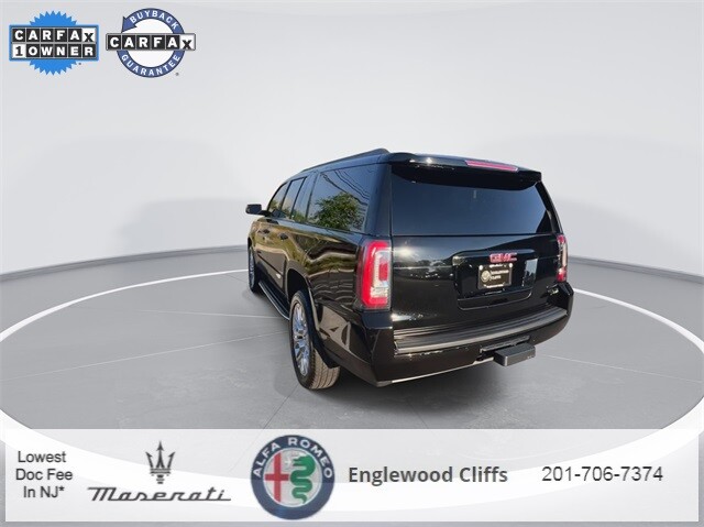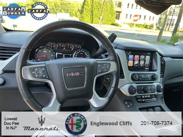 This Yukon XL SLT is nicely equipped with Enhanced Driver Alert Package (Automatic Emergency Braking, Forward Collision Alert, IntelliBeam Automatic High Beam On/Off, and Lane Keep Assist w/Lane Departure Warning), Memory Package, Premium Smooth Ride Suspension Package, 4WD, 5 Auxiliary 12-volt Power Outlets, Adjustable pedals, Apple CarPlay/Android Auto, Auto High-beam Headlights, Auto-dimming door mirrors, Auto-dimming Rear-View mirror, Automatic temperature control, Black Assist Steps w/Chrome Strip, Bose Premium 9-Speaker System, Brake assist, CD Player, Compass, Electronic Stability Control, Exterior Parking Camera Rear, Front dual zone A/C, Full-Feature Reclining Bucket Seats, Fully automatic headlights, Garage door transmitter, Hands Free Power Programmable Rear Liftgate, Heated & Ventilated Driver & Front Passenger Seats, Heated door mirrors, Heated Leather-Wrapped Steering Wheel, Heated rear seats, Heated steering wheel, Illuminated entry, Inside Rear-View Auto-Dimming Mirror, Lane Change Alert w/Side Blind Zone Alert, Memory seat, Outside temperature display, Overhead console, Panic alarm, Pedal memory, Perforated Leather-Appointed Seat Trim, Power door mirrors, Power driver seat, Power Liftgate, Power passenger seat, Power Release 2nd Row 60/40 Split-Folding Bench Seat, Power steering, Power Tilt & Telescopic Steering Column, Power windows, Power-Adjustable Pedals For Accelerator & Brake, Premium audio system: IntelliLink, Radio: AM/FM/SiriusXM, Rain sensing wipers, Rear air conditioning, Rear Cross Traffic Alert, Rear reading lights, Rear window defroster, Rear window wiper, Remote keyless entry, Security system, SiriusXM Radio, Speed control, Speed-sensing steering, Steering wheel memory, Steering wheel mounted audio controls, Traction control, Turn signal indicator mirrors, 3.08 Rear Axle Ratio, 3rd row seats: split-bench, 4-Wheel Antilock Disc Brakes, 4-Wheel Disc Brakes, 9 Speakers, ABS brakes, Air Conditioning, Alloy wheels, AM/FM radio: SiriusXM, Bumpers: body-color, CD player, Delay-off headlights, Driver door bin, Driver vanity mirror, Dual front impact airbags, Dual front side impact airbags, Emergency communication sy