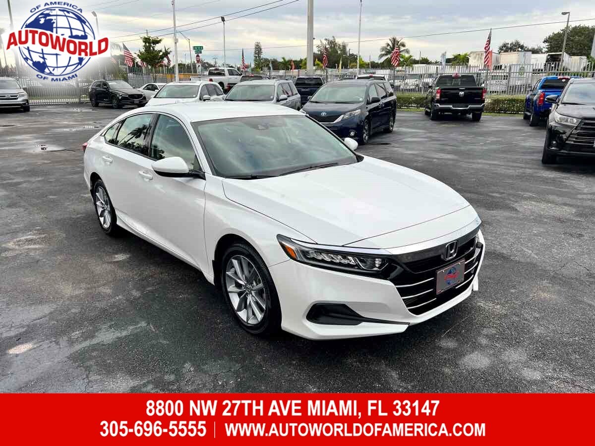 Drive with confidence in our 2021 Honda Accord LX Sedan that complements a sleek design with a bold Platinum White Pearl finish! Powered by a TurboCharged 1.5 Liter 4 Cylinder supplying 192hp connected to a CVT with a Sport mode that makes our Accord even more fun to pilot. This Front Wheel Drive also returns nearly 38mpg on the highway with nimble handling you'll appreciate almost anywhere - and you'll ride in style with our Accord's sculpted appearance - LED lighting - and 17-inch alloy wheels. With a smart layout that keeps you comfortable and in control - our LX cabin includes supportive cloth seats - a multi-function steering wheel - a dual-zone automatic climate system - and smart technology. Take some of the hassles out of everyday life with an 8-inch touchscreen - full-color navigation - Apple CarPlay - Android Auto - Bluetooth - a four-speaker audio system - and dual USB ports. There's plenty of room in the trunk - too! Sophisticated Honda Sensing Technology helps safeguard your driving with a multi-angle rearview camera - automatic braking - lane-keeping assistance - adaptive cruise control - ABS - airbags - and more. Our Accord LX is one sedan that still knows how to treat you right! Save this Page and Call for Availability. We Know You Will Enjoy Your Test Drive Towards Ownership! This vehicle is an Autoworld customer trade-in that we sold with a branded title - it was DMV inspected in Florida as a rebuilt title back in 2021. This vehicle is in excellent condition - and everything works perfectly. It is priced thousands below its J.D. Power retail value based on advertised trim - miles - and options. Our vehicles go through a 151-Point Inspection and this vehicle includes a 3 Month 3 -000 Miles in-house warranty*. It is ready to go for local - nationwide - or international shipping. At Autoworld you will save thousands without sacrificing quality. You can now afford a newer model year - higher trim level - and even lower miles than what you were expecting in your price range. For more than 30 years customers worldwide agree that vehicles from Autoworld of America offer the best value and quality. $$$ DRIVE THE CAR - NOT THE TITLE - SAVE THOUSANDS $$$