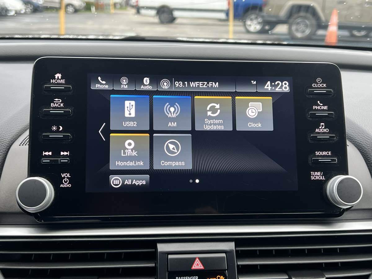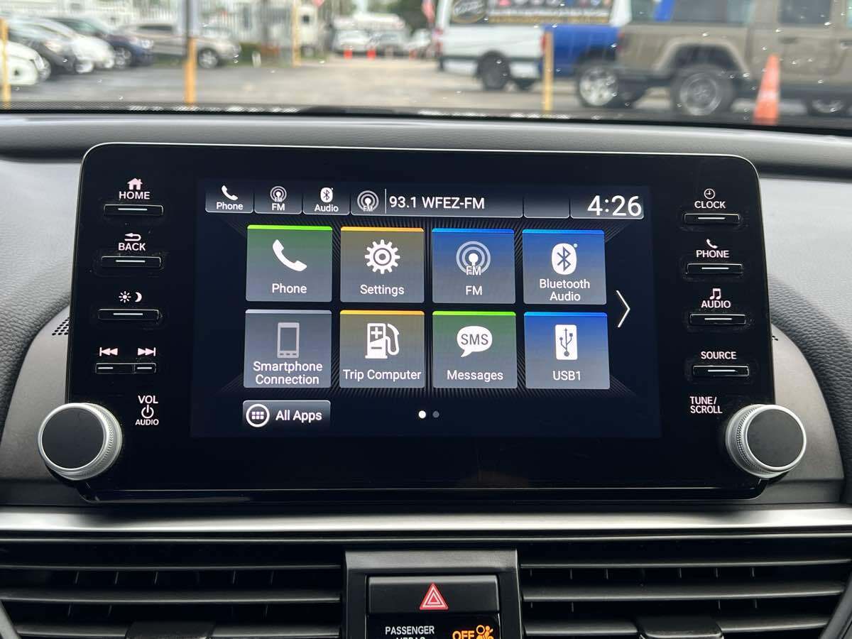 • Radio: 160-Watt AM/FM Audio System -inc: 4 speakers, 8" display... audio w/high-resolution electrostatic touch-screen, knobs and hard keys for primary controls and customizable feature settings, Bluetooth HandsFreeLink, Bluetooth streaming audio, Radio Data System (RDS), Speed-Sensitive Volume Compensation (SVC), HondaLink, Apple CarPlay integration, Android Auto integration, 2 2.5-amp USB smartphone/audio interface ports in front console, illuminated steering wheel-mounted controls and body-colored fin-type roof-mounted antenna