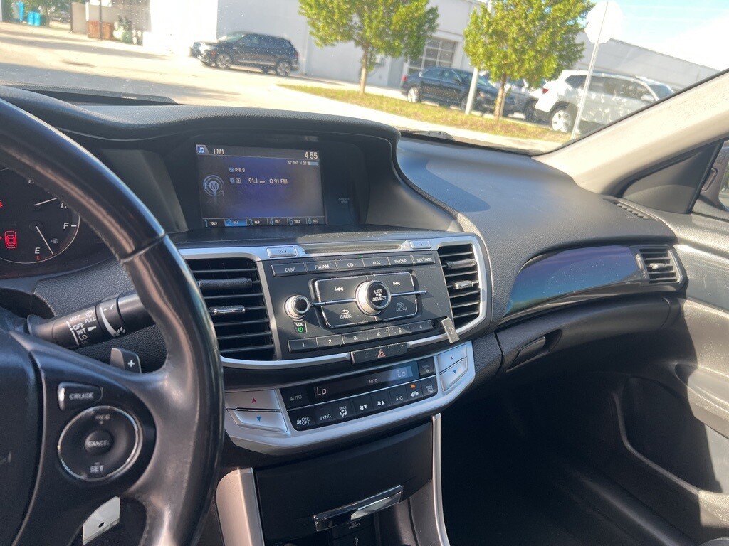 * The Accord is synonymous with Honda and has been known for nearly four decades as a reliable, comfortable, pragmatic way to move families. What began as a 2-door hatchback in 1976 has grown into today's full-size sedan and coupe. Like the rest of the car, the 2014 Accord's 5-passenger interior is a pleasing step forward. The cabin boasts soft-touch materials for a quality feel. The front seats are comfortable, and the driver's seat actually toned down the lumbar support. The rear seats have even more room, as does the trunk. Sleek, rippled sheet metal defines a more streamlined exterior that has shrunk around an interior that feels roomier than previous generations. The most surprising thing about the Accord is its refined continuously variable transmission (CVT). Mated to the 4-cylinder, this CVT feels much like a normal automatic, mimicking gear changes. Even a base Accord has good power for acceleration and passing, yet attains an impressive mileage on the highway. Move up to a V6 model with 6-speed automatic transmission, and the Accord is downright quick. For the individual looking to consume less the 2014 Accord comes in a Hybrid version as well. This operates on a 141-hp 2.0-liter, 16-valve i-VTEC 4-cylinder engine and a 55-hp lithium-ion battery pack for a net hp of 196. The Hybrid can achieve ratings of 50 cty and 46 hwy. To help maximize efficiency on the road, the Accord Hybrid seamlessly shifts between three distinct drive modes: EV Drive, Hybrid Drive and Engine Drive. EV Drive is 100% electric, and generally is used during braking and when starting from a stop. Hybrid Drive uses the fuel engine and electric motor to provide extra zip during acceleration, and once your Accord Hybrid is cruising with highway efficiency, Engine Drive takes over. If you want a hassle-free, pleasing family car with a reputation for quality and an immediate familiarity, you can't go wrong with the Accord. Source: The Manufacturer Summary
