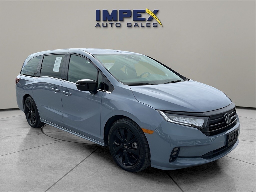 CARFAX One-Owner. This 2023 Honda Odyssey Sport FWD with 21920 miles was carefully inspected and reconditioned by our service team. Impex Auto Sales offers 7-Day/300-Mile Money-Back Guarantee, an exclusive 100+ Point Vehicle Inspection, Third-Party Price Validation, and a Vehicle History Report. Purchase your vehicle online for home delivery or pick it up at Impex Auto Sales. If you need to get rid of your current vehicle. You can trade it or we can buy it. Price excludes tax, tag, title and $799 administrative fee as regulated by N.C.G.S. 20-101.1.