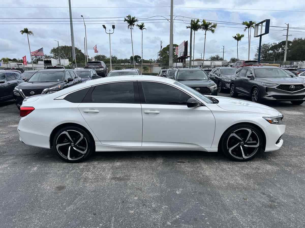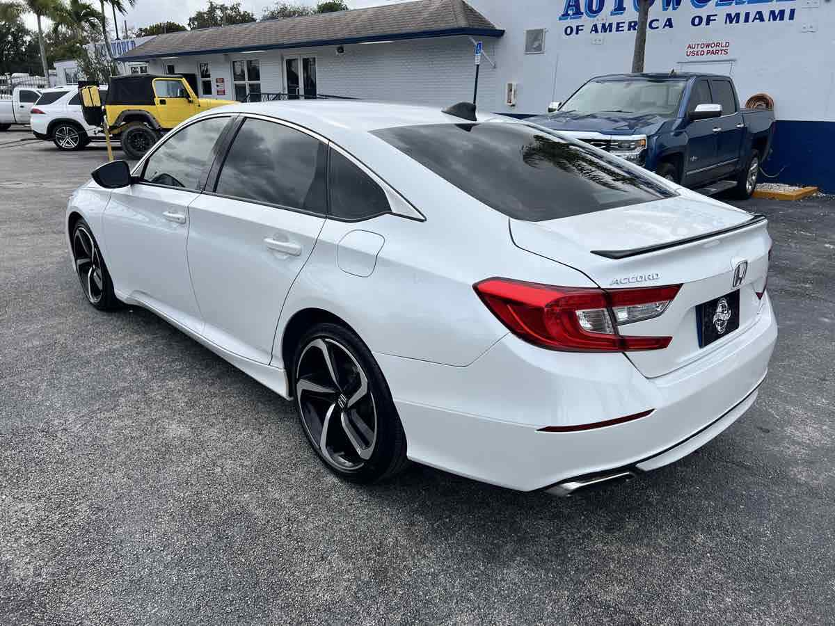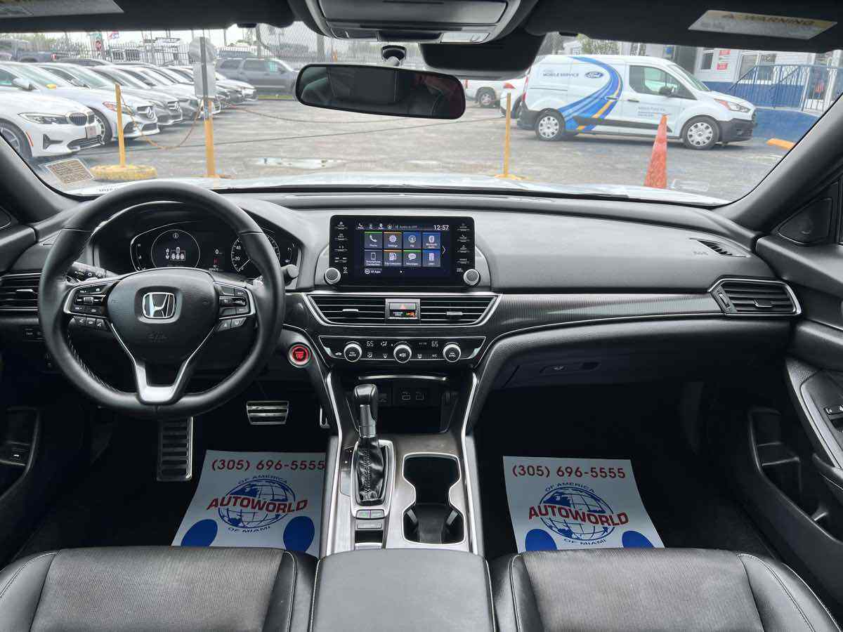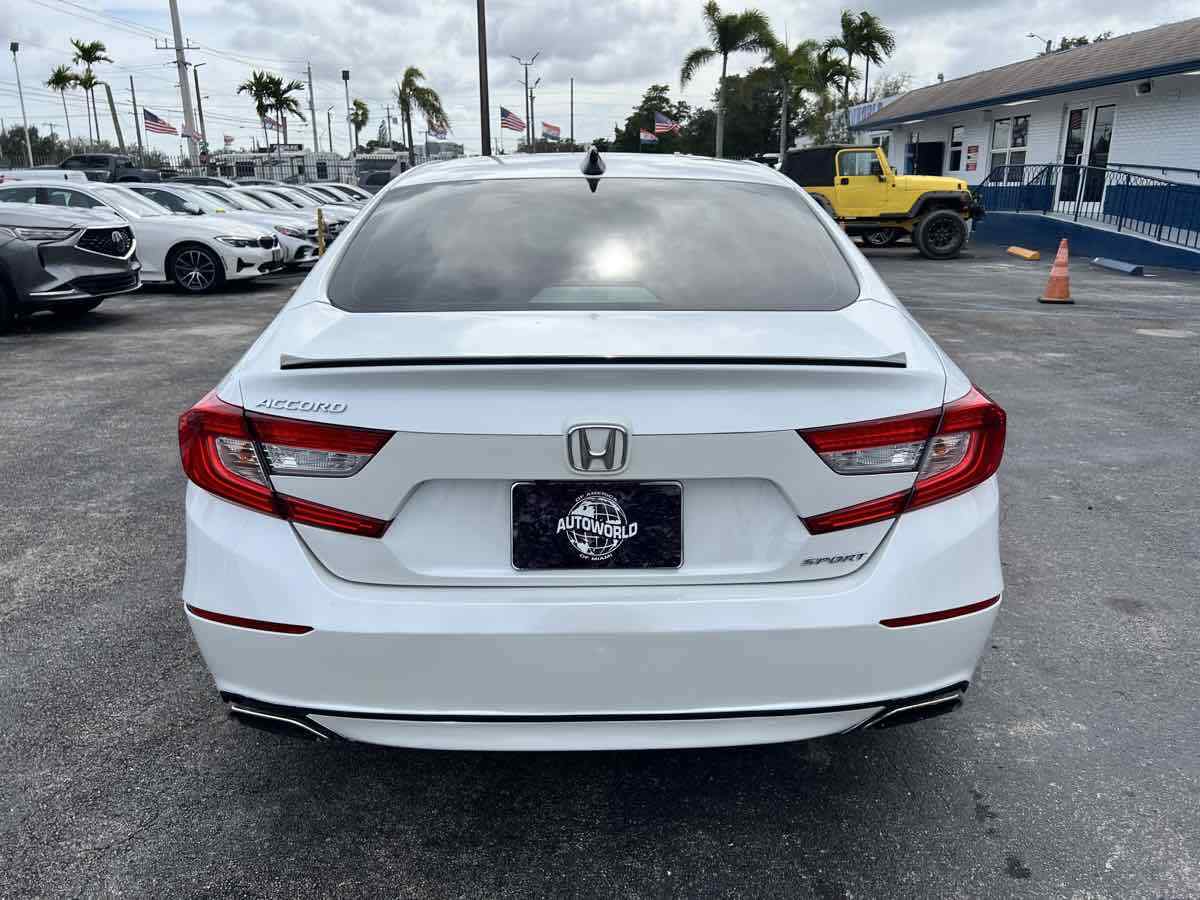 Sleek and sophisticated - our 2022 Honda Accord Sport Sedan sets a high bar for better driving in Platinum White Pearl! Powered by a TurboCharged 1.5 Liter 4 Cylinder generating 192hp for a paddle-shifted CVT for precise performance. You can also enjoy enhanced handling in this Front Wheel Drive sedan - and it sees nearly 35mpg on the highway with a crisp and commanding design. Our Accord's highly acclaimed exterior excites your senses with LED lighting - fog lamps - bold 19-inch alloy wheels - chrome exhaust finishers - and a gloss-black rear spoiler. Our Sport cabin can make you feel special with comfortable cloth seats - 12-way power for the driver - a leather-wrapped steering wheel - dual-zone automatic climate control - sport pedals - keyless access - and pushbutton ignition. High-tech Honda infotainment is at your service with an 8-inch touchscreen - Apple CarPlay - Android Auto - Bluetooth - and an eight-speaker sound system. There's clever interior storage - too! Honda helps keep you safely on the move with intelligent assistance from automatic braking - a multi-angle rearview camera - lane-keeping assistance - adaptive cruise control - ABS - airbags - and more. It's time to get more out of everyday driving in our Accord Sport! Save this Page and Call for Availability. We Know You Will Enjoy Your Test Drive Towards Ownership! This vehicle has a branded title and was DMV inspected in Florida. It is in excellent condition - and everything works perfectly - we have test driven it several times and checked to make sure all the options and features work as they should. It is priced thousands below its J.D. Power retail value based on advertised trim - miles - and options. Our vehicles go through a 151-Point Inspection and this vehicle includes a 6 Month 6 -000 Miles in-house warranty*. It is ready to go for local - nationwide - or international shipping. At Autoworld you will save thousands without sacrificing quality. You can now afford a newer model year - higher trim level - and even lower miles than what you were expecting in your price range. For more than 30 years customers worldwide agree that vehicles from Autoworld of America offer the best value and quality. $$$ DRIVE THE CAR - NOT THE TITLE - SAVE THOUSANDS $$$