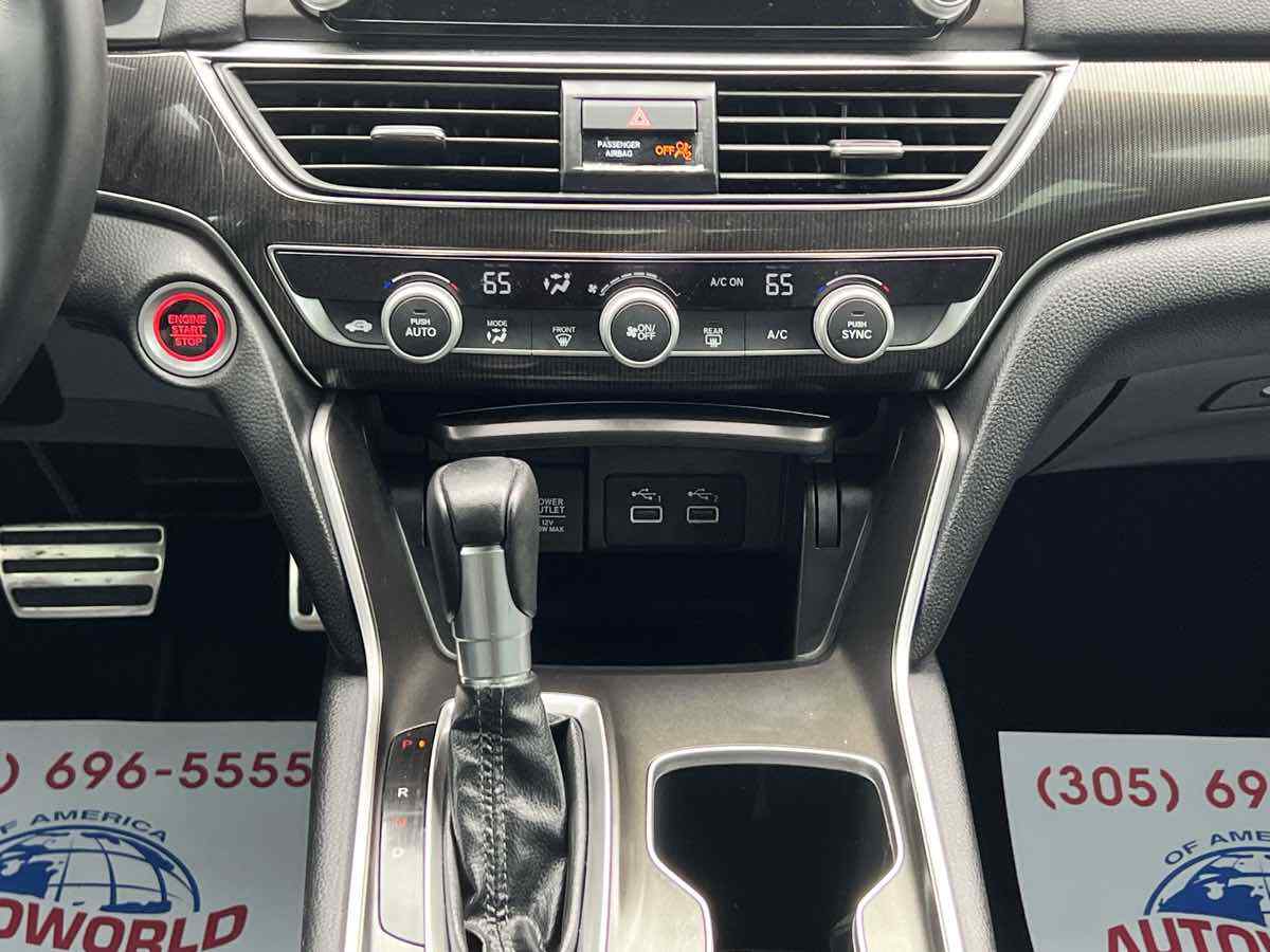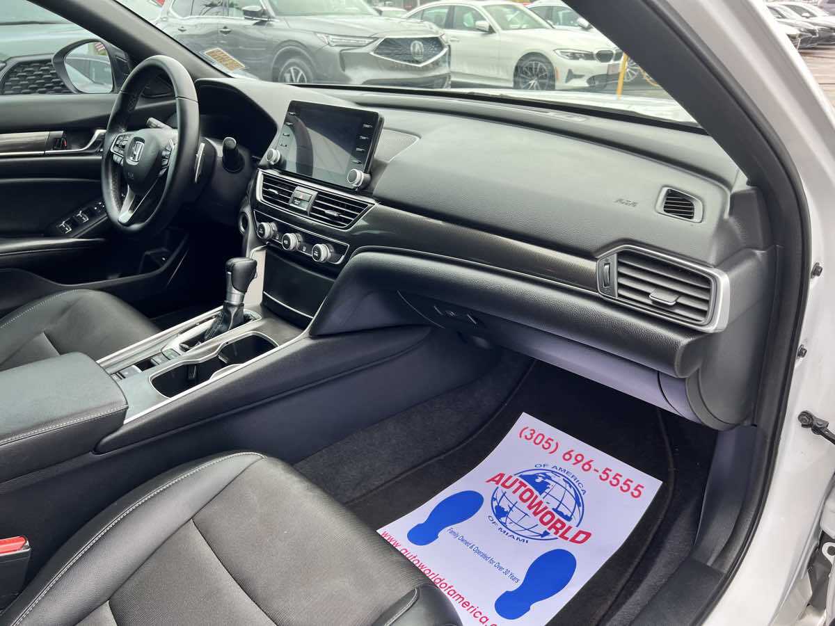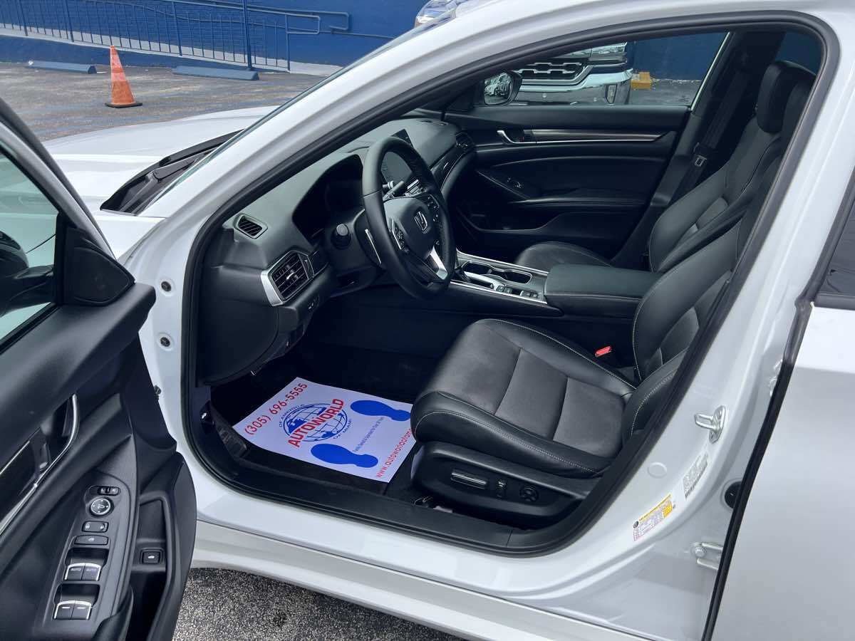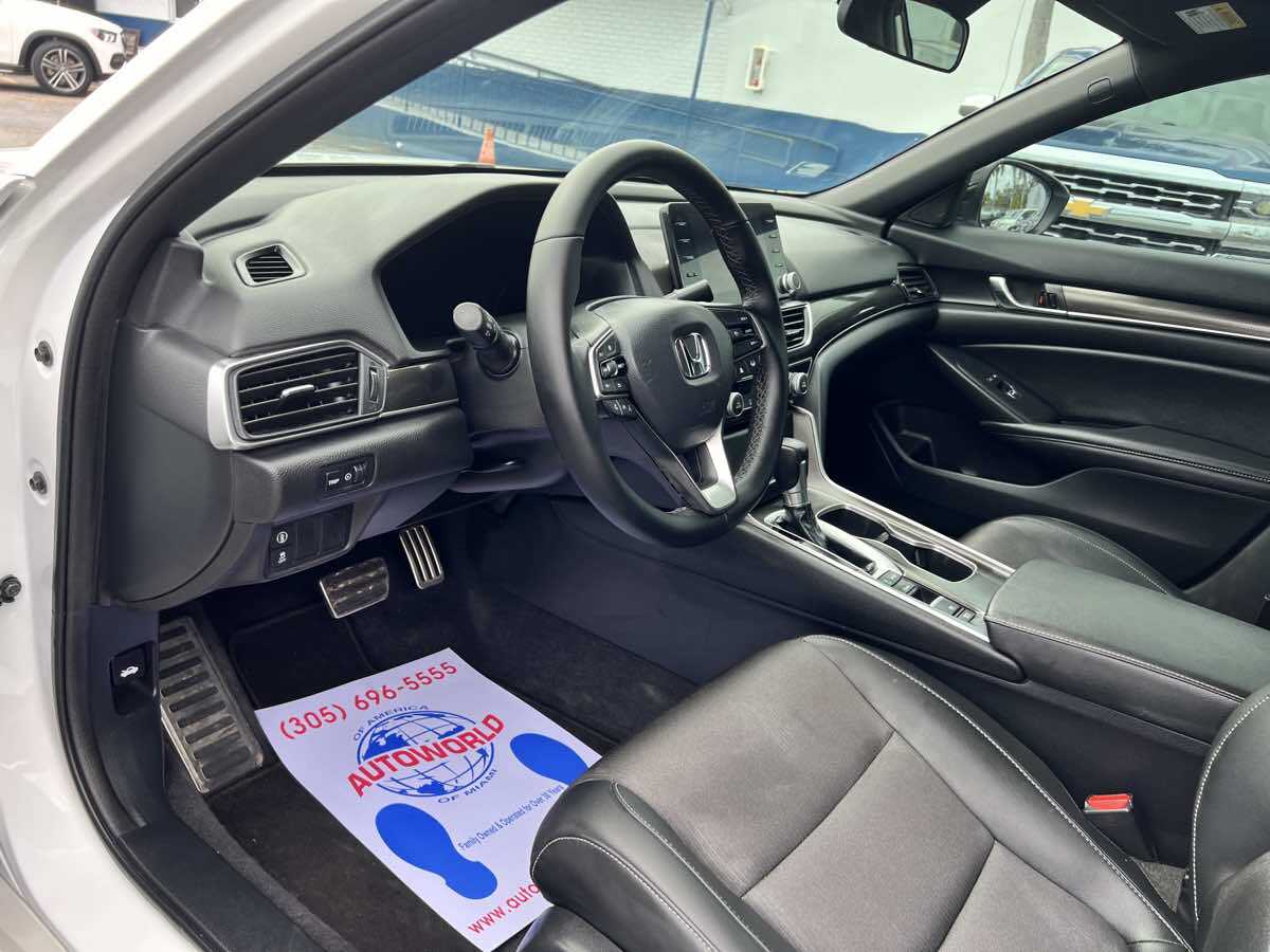 Sleek and sophisticated - our 2022 Honda Accord Sport Sedan sets a high bar for better driving in Platinum White Pearl! Powered by a TurboCharged 1.5 Liter 4 Cylinder generating 192hp for a paddle-shifted CVT for precise performance. You can also enjoy enhanced handling in this Front Wheel Drive sedan - and it sees nearly 35mpg on the highway with a crisp and commanding design. Our Accord's highly acclaimed exterior excites your senses with LED lighting - fog lamps - bold 19-inch alloy wheels - chrome exhaust finishers - and a gloss-black rear spoiler. Our Sport cabin can make you feel special with comfortable cloth seats - 12-way power for the driver - a leather-wrapped steering wheel - dual-zone automatic climate control - sport pedals - keyless access - and pushbutton ignition. High-tech Honda infotainment is at your service with an 8-inch touchscreen - Apple CarPlay - Android Auto - Bluetooth - and an eight-speaker sound system. There's clever interior storage - too! Honda helps keep you safely on the move with intelligent assistance from automatic braking - a multi-angle rearview camera - lane-keeping assistance - adaptive cruise control - ABS - airbags - and more. It's time to get more out of everyday driving in our Accord Sport! Save this Page and Call for Availability. We Know You Will Enjoy Your Test Drive Towards Ownership! This vehicle has a branded title and was DMV inspected in Florida. It is in excellent condition - and everything works perfectly - we have test driven it several times and checked to make sure all the options and features work as they should. It is priced thousands below its J.D. Power retail value based on advertised trim - miles - and options. Our vehicles go through a 151-Point Inspection and this vehicle includes a 6 Month 6 -000 Miles in-house warranty*. It is ready to go for local - nationwide - or international shipping. At Autoworld you will save thousands without sacrificing quality. You can now afford a newer model year - higher trim level - and even lower miles than what you were expecting in your price range. For more than 30 years customers worldwide agree that vehicles from Autoworld of America offer the best value and quality. $$$ DRIVE THE CAR - NOT THE TITLE - SAVE THOUSANDS $$$