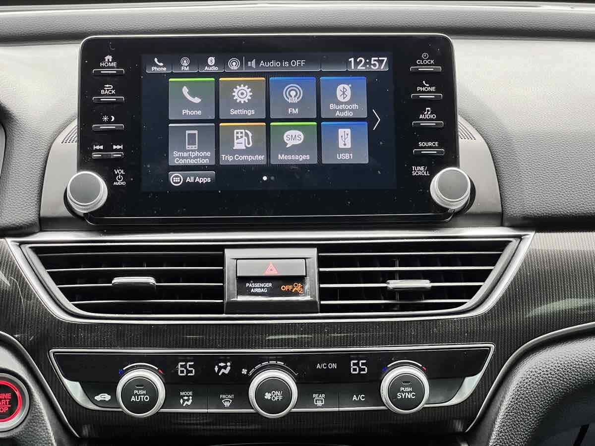 • Radio: 180-Watt AM/FM Audio System -inc: 8 speakers, 8" display... audio w/high-resolution electrostatic touch-screen, knobs and hard keys for primary controls and customizable feature settings, Bluetooth HandsFreeLink, Bluetooth streaming audio, SMS text message function, Radio Data System (RDS), Speed-Sensitive Volume Compensation (SVC), HondaLink, Apple CarPlay integration, Android Auto integration, 2 2.5-amp USB smartphone/audio interface ports in front console, 2 2nd-row 2.5-amp USB charging ports, illuminated steering wheel-mounted controls and gloss black fin-type roof-mounted antenna