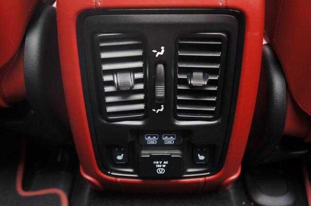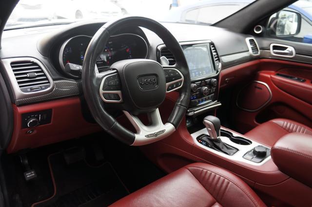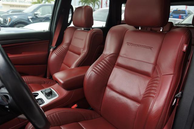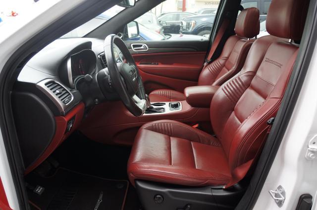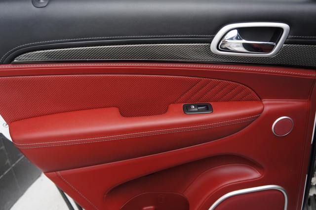 Inside, the Trackhawk offers a luxurious and well-equipped cabin with premium materials and high-tech features. The SUV comes standard with leather upholstery, heated and ventilated front seats, a panoramic