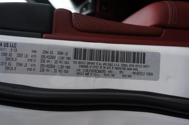 The exterior of the 2019 Grand Cherokee Trackhawk features aggressive styling cues, including a unique front grille, larger air intakes, and quad exhaust tips. These design elements give the Trackhawk a bold and muscular appearance that sets it apart from the rest of the Grand Cherokee lineup. The SUV also rides on large 20-inch wheels with high-performance tires, further enhancing its sporty look.