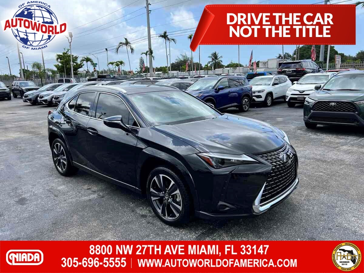 Expressive and impressive - our 2023 Lexus UX 250h AWD with the Premium Pack is made for modern explorers in Caviar! Powered by a 2.0 Liter 4 Cylinder and an Electric Motor providing a combined 181hp to an electronically controlled CVT for energetic efficiency. Not only does this All Wheel Drive SUV scores nearly 43mpg in the city - but it also delivers sporty handling that's great at putting a smile on your face. Bold lines help bring out the best in our UX exterior with deluxe details like LED lighting - heated power mirrors - stylish alloy wheels - concealed exhaust - and our Premium Pack's power sunroof. Our 250h cabin has a driver-focused design enhanced by our Premium Pack. It adds heated/ventilated NuLuxe power front seats and exclusive Washi trim to a leather-wrapped heated steering wheel - dual-zone automatic climate control - keyless access - pushbutton ignition - and an easy-to-use infotainment system. You're ready to connect to your world and tune in your favorite soundtrack with a 7-inch color LCD - console-mounted controls - voice recognition - available navigation - Bluetooth - Apple CarPlay/Amazon Alexa compatibility - WiFi compatibility - and six-speaker audio. Lexus provides intelligent passenger protection by supplying automatic braking - adaptive cruise control - lane-keeping assistance - pedestrian detection - a rearview camera - blind-spot monitoring - and more. Uniquely useful - our upscale UX 250h is ready for your next ride! Save this Page and Call for Availability. We Know You Will Enjoy Your Test Drive Towards Ownership! This vehicle has a branded title and was DMV inspected in Florida. It is in excellent condition - and everything works perfectly - we have test driven it several times and checked to make sure all the options and features work as they should. It is priced thousands below its J.D. Power retail value based on advertised trim - miles - and options. Our vehicles go through a 151-Point Inspection and this vehicle includes a 6 Month 6 -000 Miles in-house warranty*. It is ready to go for local - nationwide - or international shipping. At Autoworld you will save thousands without sacrificing quality. You can now afford a newer model year - higher trim level - and even lower miles than what you were expecting in your price range. For more than 30 years customers worldwide agree that vehicles from Autoworld of America offer the best value and quality. $$$ DRIVE THE CAR - NOT THE TITLE - SAVE THOUSANDS $$$