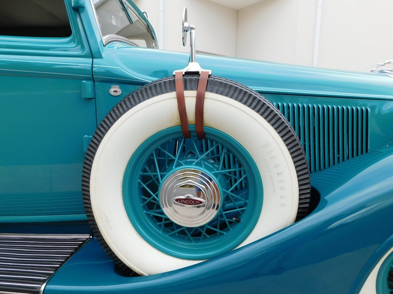 The 1933 Lincoln V12 516 Coupe boasts a selection of features that enhance its vintage charm and performance. The vehicle proudly sits on bias ply tires, which are mounted on classic wide white walls that provide an era-appropriate and distinguished appearance. Adding to its allure, the car is equipped with elegant wire wheels that not only contribute to its stylish look but also reflect the concourse attention to detail that went into its design.