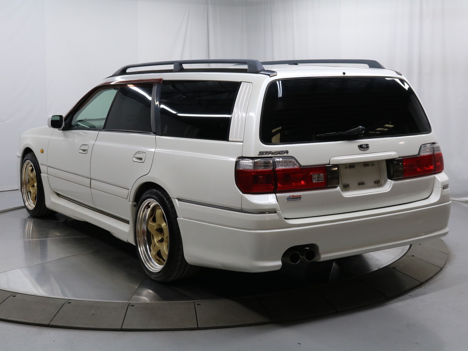124,549 kilometers The Nissan Stagea was produced and sold from 1996 to 2007 and spanned two generations. A station wagon meant to compete with Subaru Legacy and the likes, the Stagea was modeled after the Nissan Skyline and manufactured with quite a bit of variation in terms of equipment and specifications. Base varieties of the first generation Series 1 were offered in either rear wheel drive, or all wheel drive, paired with a 4-speed automatic transmission however, the tuned 260RS Autech version made available beginning in Series 1.5, was offered exclusively with a 2.6 Liter Twin Turbo engine coupled with a 5-speed manual transmission and all wheel drive a configuration that was carried on through Series 2 as well. The Autech version included modifications such as Brembo brakes, 17 inch BBS forged alloy wheels, body strengthening, and upgraded suspension, among others. Interior modifications such as a GTR steering wheel and gauges, leather accents, and special seat trim were standard on the 260RS as well. Between the Series 1.5 and Series 2, fewer than 1,800 Nissan Stagea 260RS Autech models were produced. Similar to the 260RS, the Nissan Stagea RS Four units produced as a part of the first generation were available strictly as an all wheel drive vehicle, but were offered with either a 4-speed automatic or a 5-speed manual transmission in order to suit the needs of a larger customer base. Production of the Stagea continued on into 2007 when Nissan discontinued it in order to focus their resources on new endeavors. Third party pre-purchase inspections are welcomed and encouraged. All vehicles sold by Duncan come with a clean U.S. title