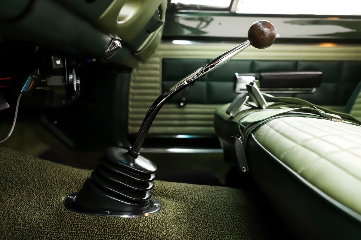 INTERIOR: Restored back to its original deluxe interior. Premium Legendary interior kit. The seat was rebuilt and upholstered. Door panels and armrests were replaced. Very clean dash area with a factory tachometer and AM radio. Replaced carpet with correct Hurst shifter sticking out.