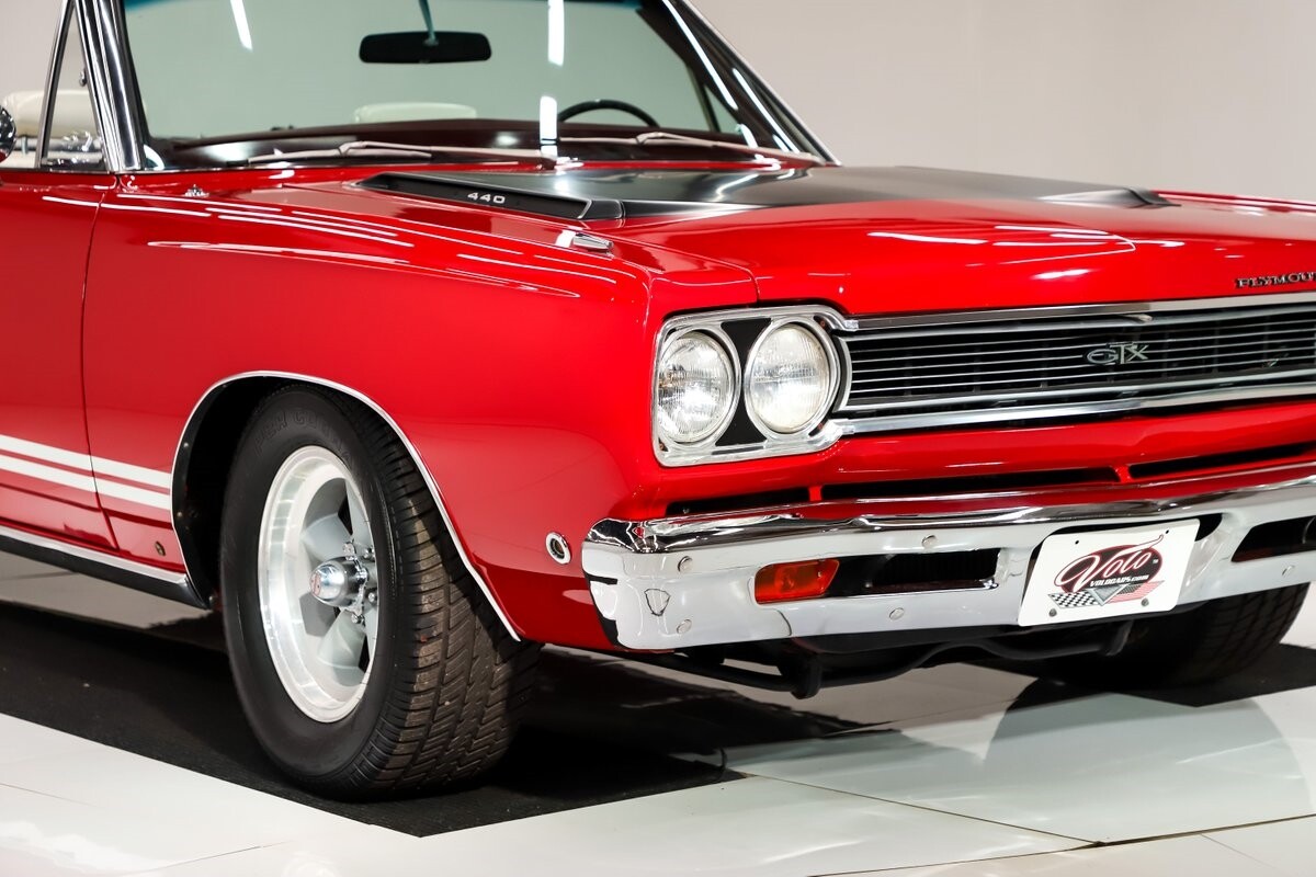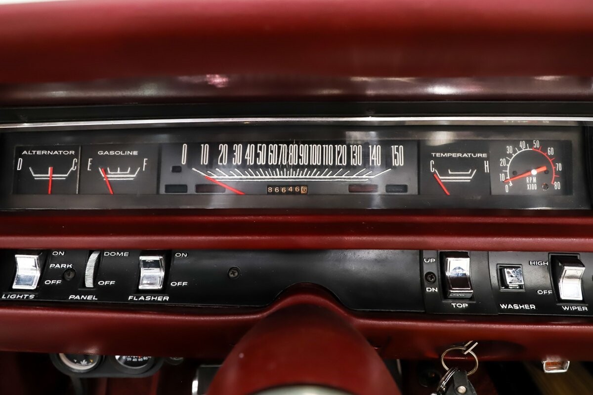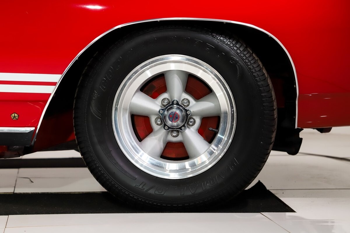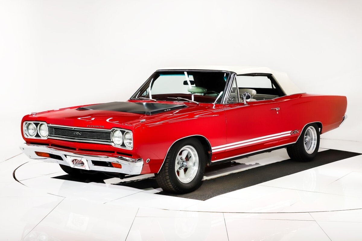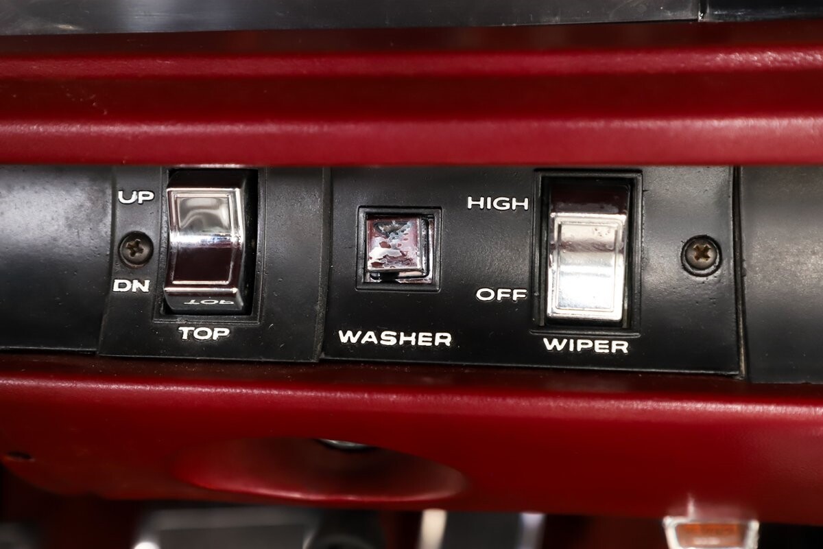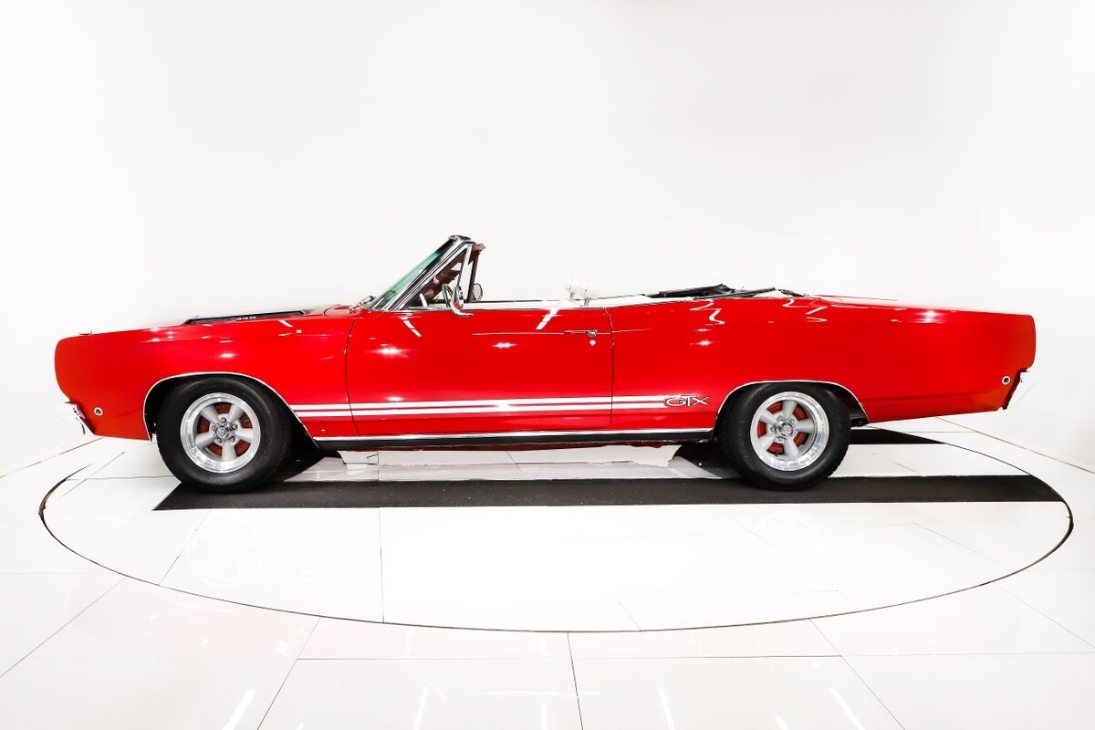 EXTERIOR: Factory Performance Red car wearing a black hood patch and white side stripes. The body is excellent, straight and there's no signs of rust or damage even after 12 years of being finished. Repainted its original performance red color and it's wearing the black hood patch and white side stripes. It has a very smooth glossy finish with just a few minor imperfections. The grill and tail panel are very good original condition, the bumpers were replated. Optional fender turn signals. In the video is said the lenses were cracked, they are not. Correct white Mopar grain power convertible top. Some 15 inch Torque Thrust wheels with meaty radial tires were added to make it a better driver.