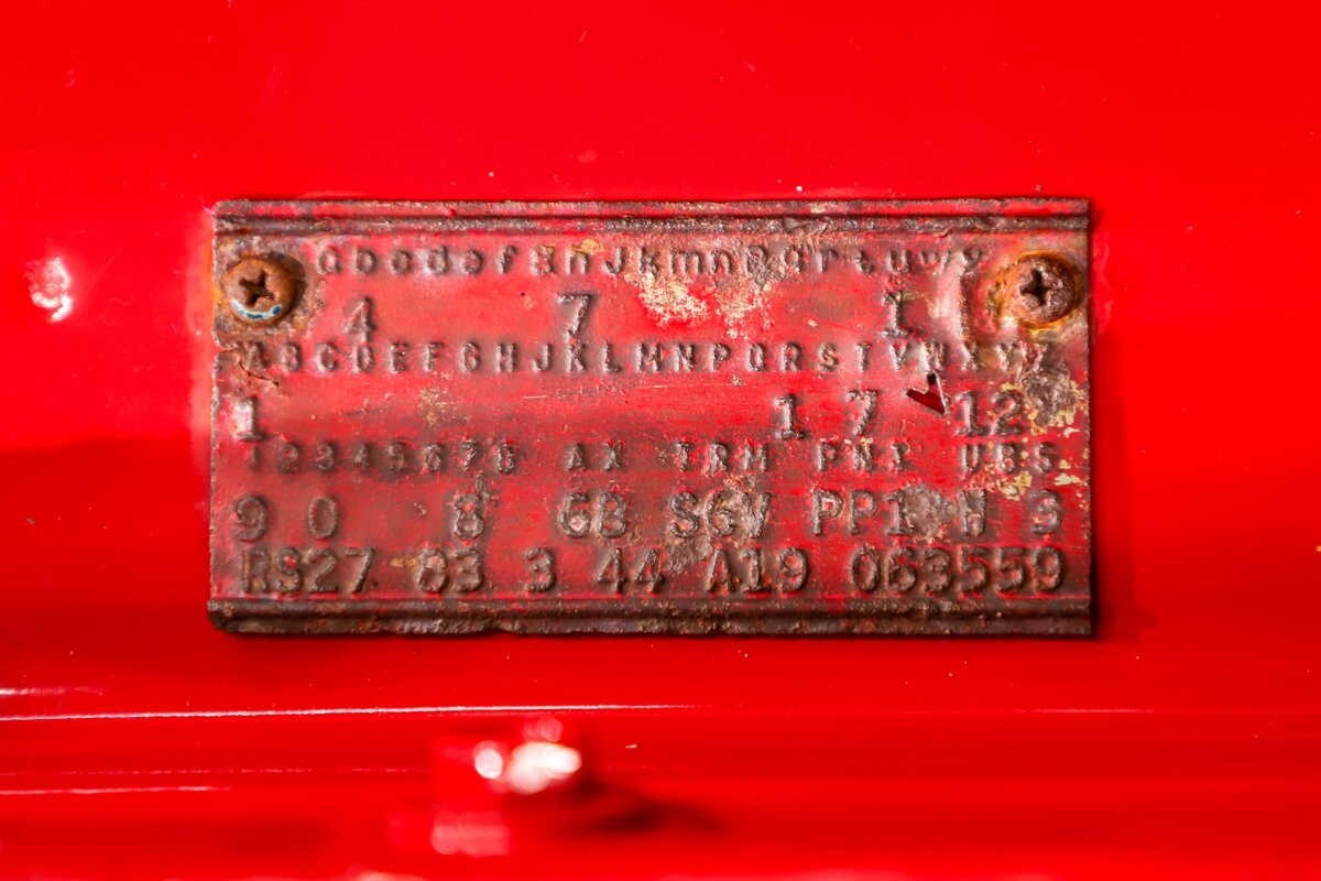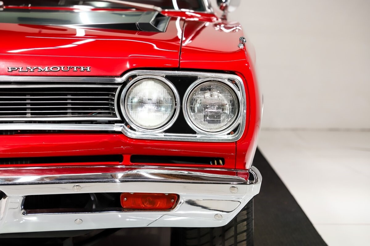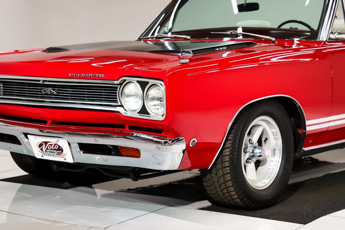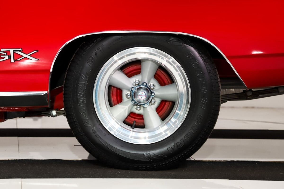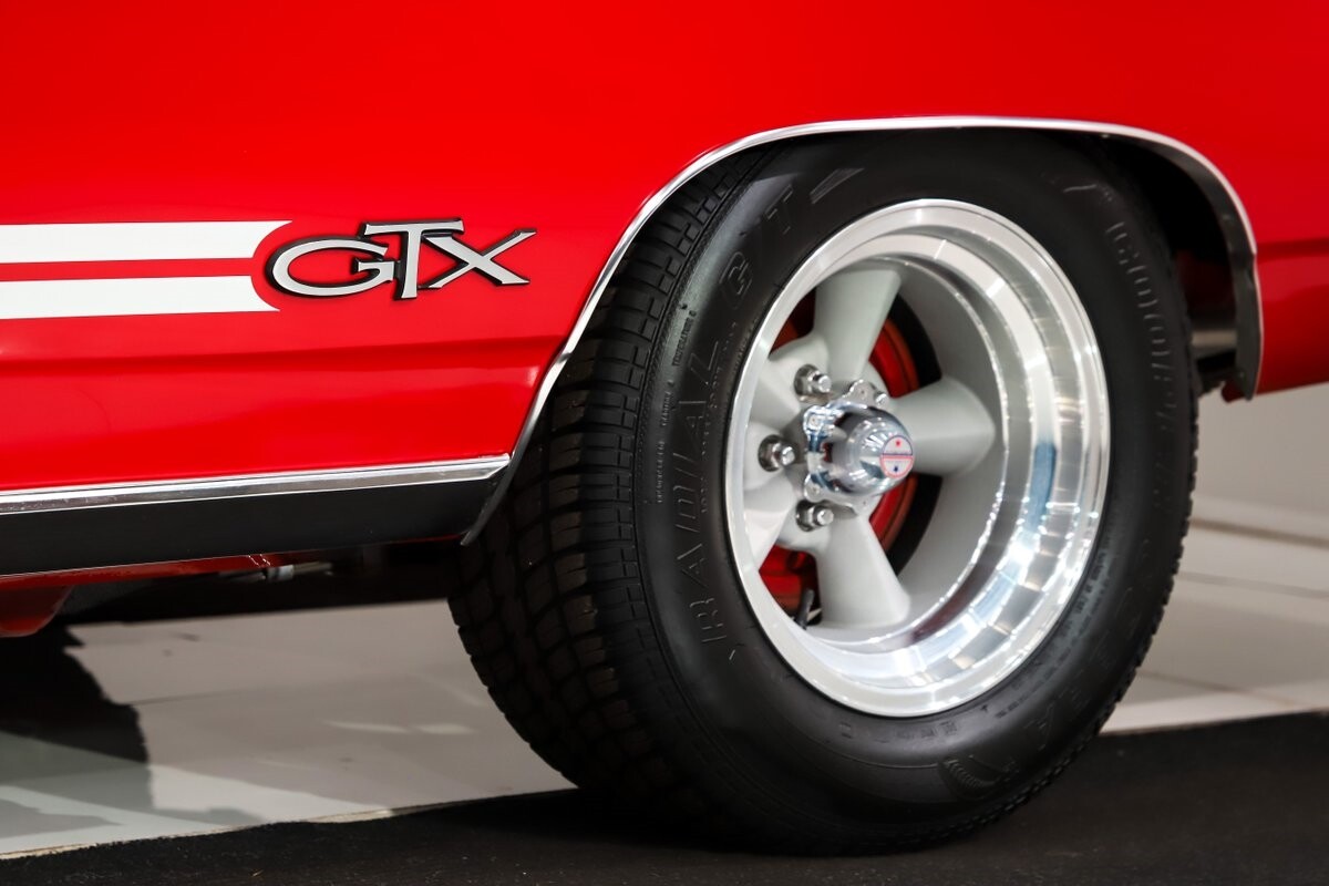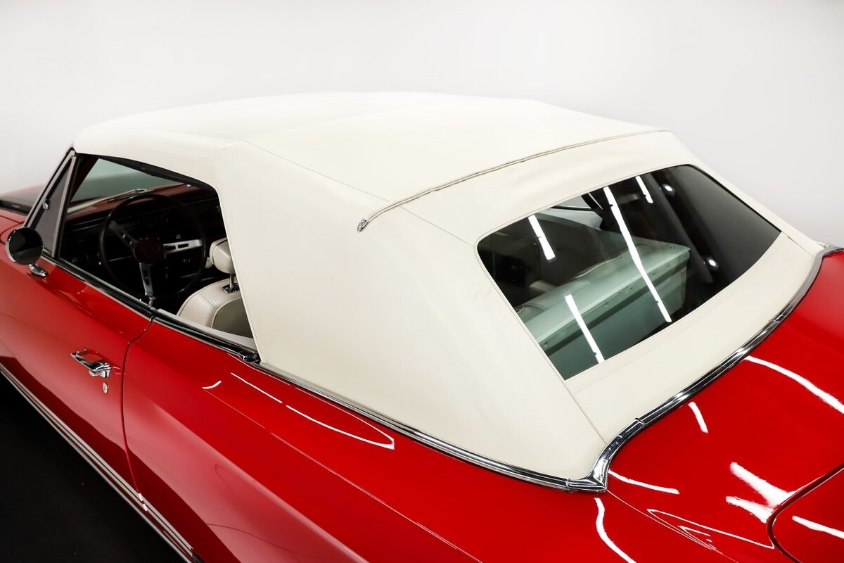 EXTERIOR: Factory Performance Red car wearing a black hood patch and white side stripes. The body is excellent, straight and there's no signs of rust or damage even after 12 years of being finished. Repainted its original performance red color and it's wearing the black hood patch and white side stripes. It has a very smooth glossy finish with just a few minor imperfections. The grill and tail panel are very good original condition, the bumpers were replated. Optional fender turn signals. In the video is said the lenses were cracked, they are not. Correct white Mopar grain power convertible top. Some 15 inch Torque Thrust wheels with meaty radial tires were added to make it a better driver.