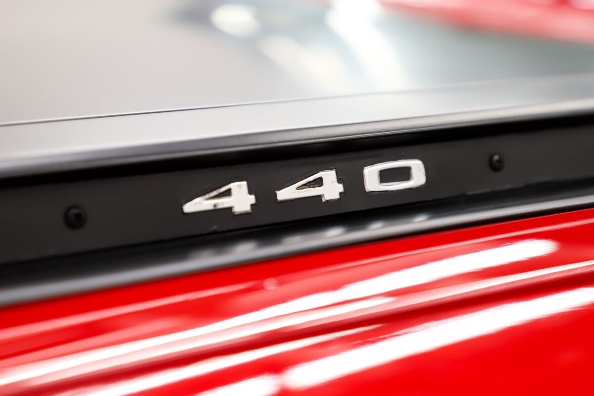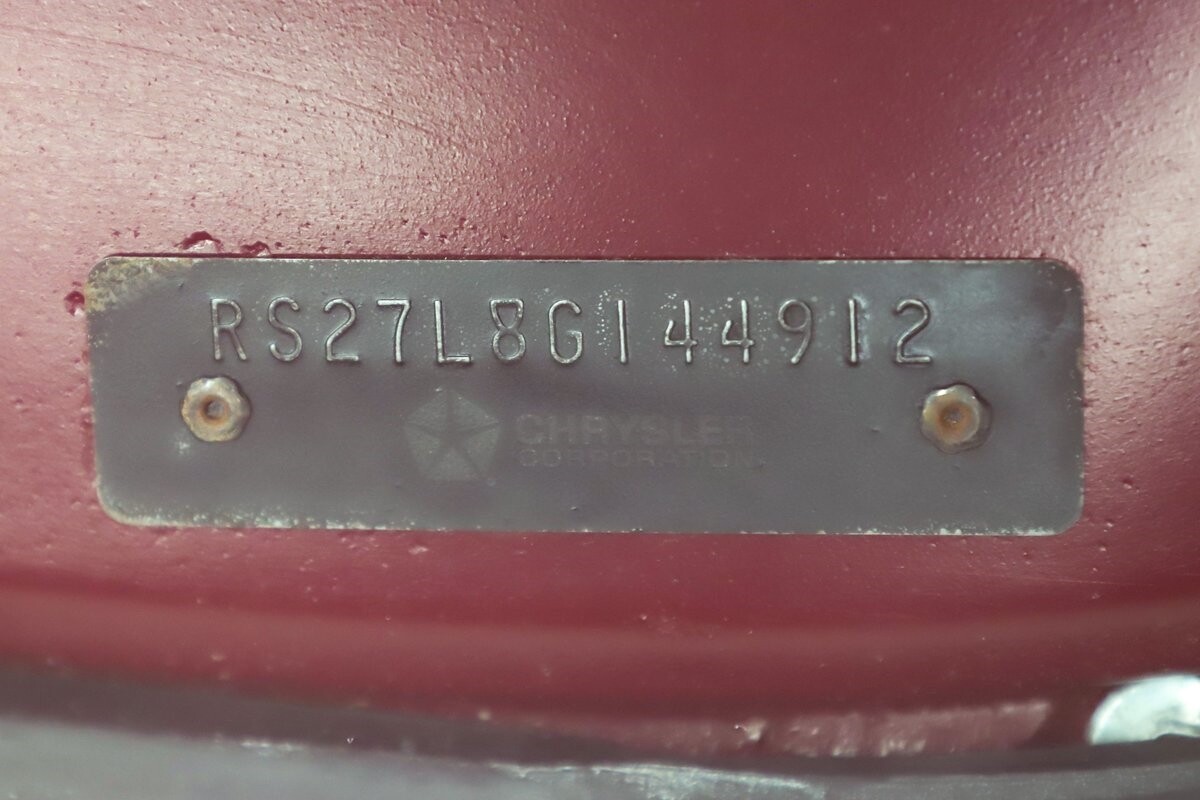 ENGINE COMPARTMENT: Correct date coded 440ci with correct 906 heads, correct intake and exhaust manifolds. Correct Carburetor, original wiper motor, fan radiator and shroud. Bored 30 over new pistons, cam, rebuilt heads making about 500 hp, I'm told it's fast! Reproduction plug wires, chromed factory valve covers and correctly restored air cleaner. All the components look clean. The washer bottle is hooked up, wiper motor looks new, horns are in place, has hood insulation. Correct Mopar radiator, cap and shroud. 2 very desirable features include power steering and power brakes. The original fender tag is still in place.