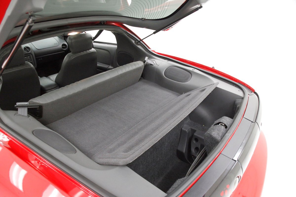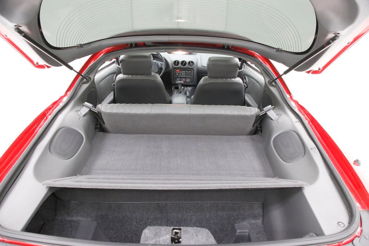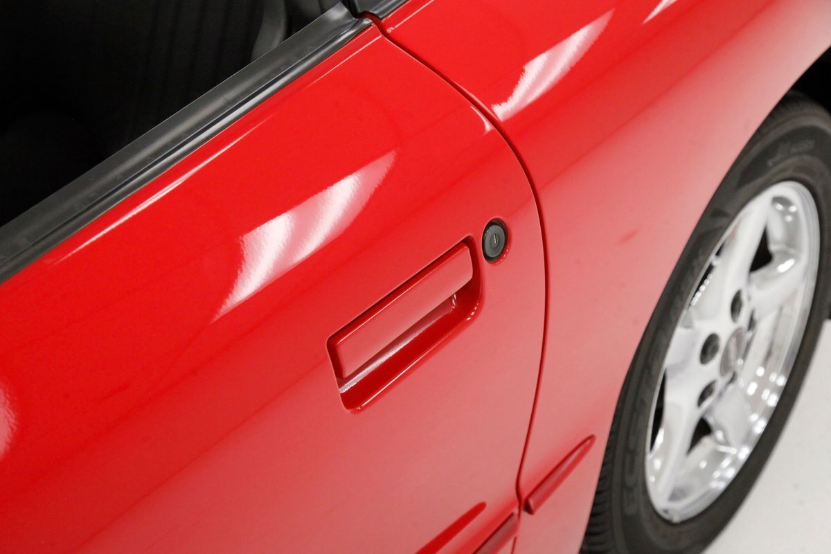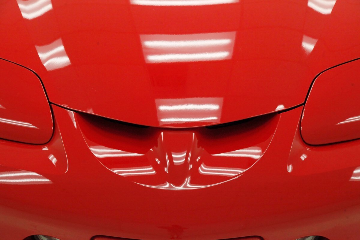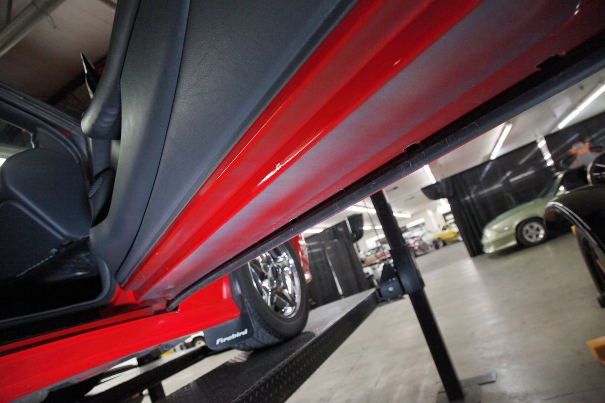 All dressed up in Bright Red, from the 2 bumps at the front of the fenders that magically turn into headlights, to the dual snout scooped intake cowling hood flanked by 2 front fender bumps, and more intake inlets on the quarter panels, to the severely raked windscreen, to the rear trunk lid that seems to go on forever as it becomes an integrated spoiler. All in nice condition, and the optional T-tops are with this car. Standard 16-inch multi-spoke chrome wheels are seen on all 4's and are wrapped in 245/50R16 blackwall rubber.