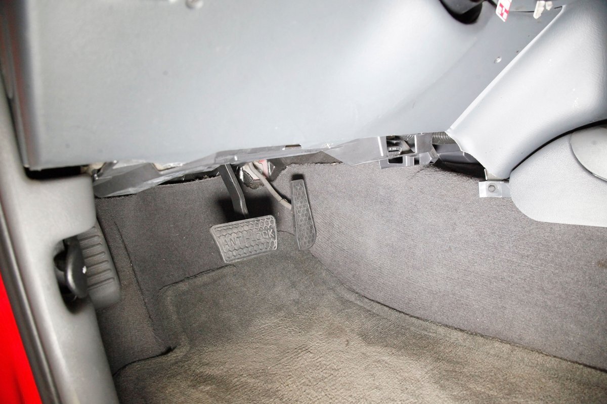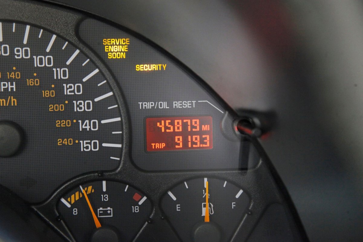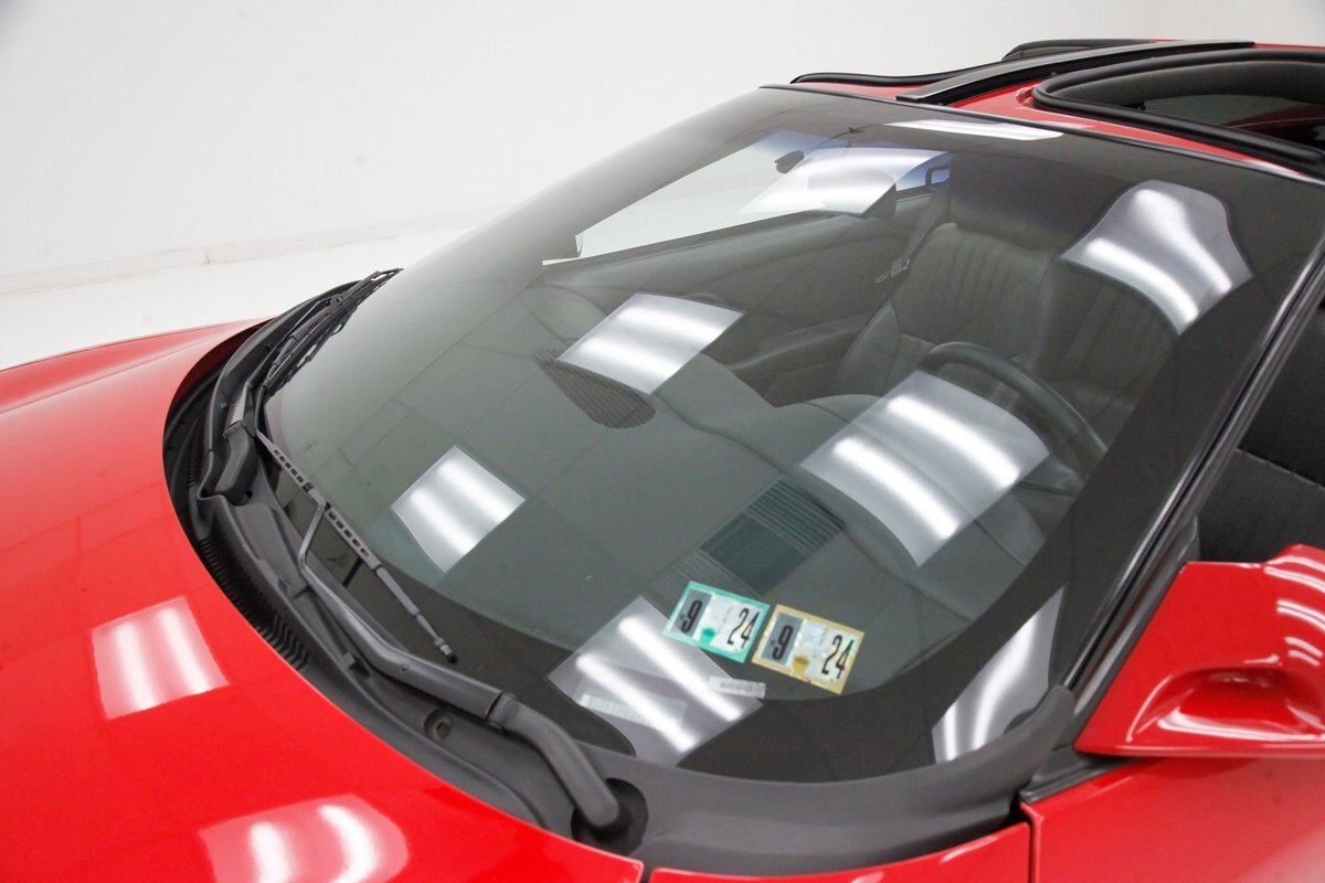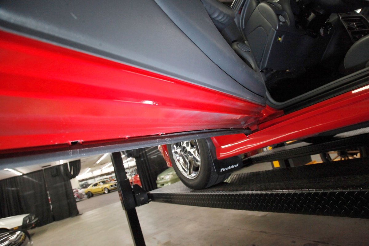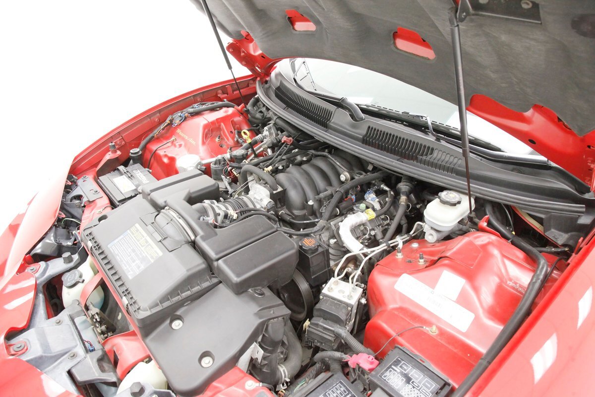 All dressed up in Bright Red, from the 2 bumps at the front of the fenders that magically turn into headlights, to the dual snout scooped intake cowling hood flanked by 2 front fender bumps, and more intake inlets on the quarter panels, to the severely raked windscreen, to the rear trunk lid that seems to go on forever as it becomes an integrated spoiler. All in nice condition, and the optional T-tops are with this car. Standard 16-inch multi-spoke chrome wheels are seen on all 4's and are wrapped in 245/50R16 blackwall rubber.