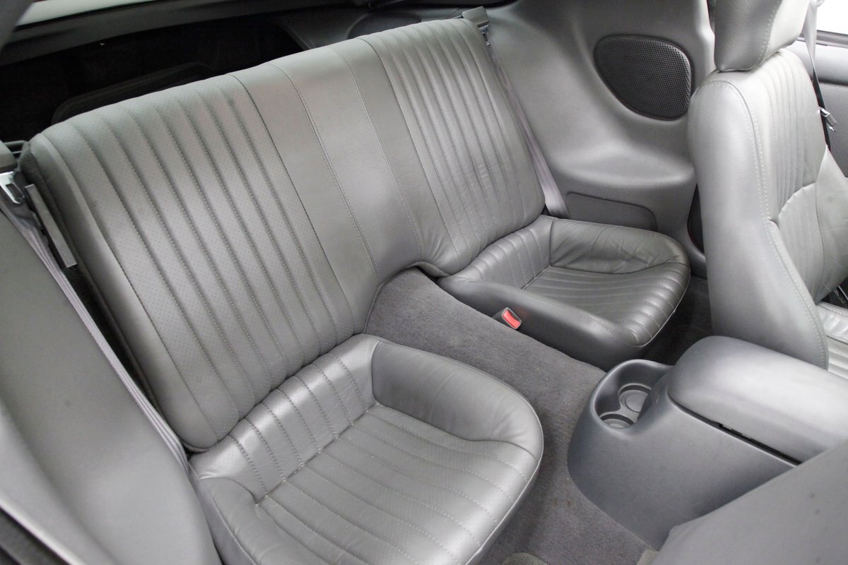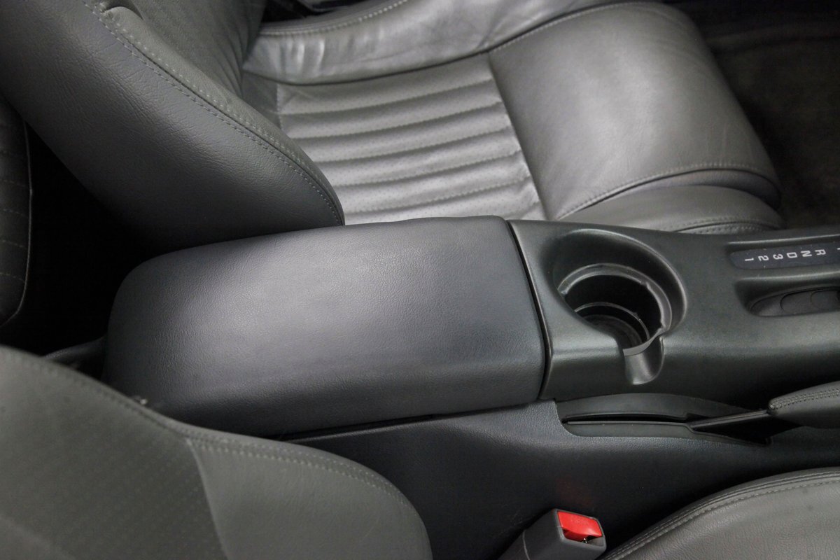 Dark Pewter leather covers the front power buckets, with the driver's being power adjustable, the rear 2 plus 2 bench, and steering wheel, as well as gearshift. Overall the leather is soft and supple, showing only wear on the outer bolster from entrance and exit. A swooping center console is flanked by the buckets and makes its way to the dash while including a glove box/armrest, cup holder, gearshift, climate controls, and a Monsoon AM/FM/CD player with equalizer. The normal cluster instruments are clean and bright with their white analog gauges and orange LCD odometer read outs. Nice matching charcoal gray carpet floods the floor.