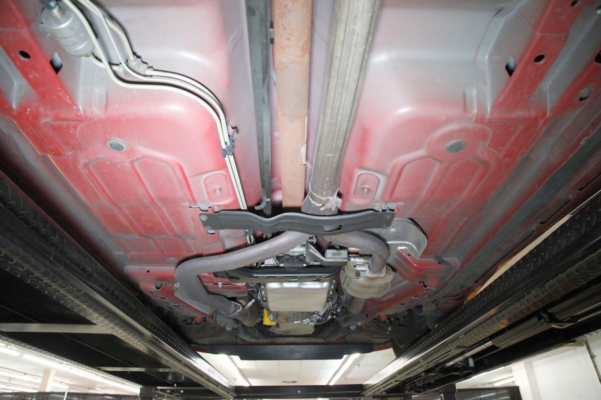 The undercarriage is showroom with no dirt or scratched paint. Power front and rear disc brakes are on all the corners and keeping things surefooted is independent coil sprung front suspension working in harmony with a torque arm and coil spring suspension in the rear. The OEM dual to single to dual exhaust is on for the mighty exhale.