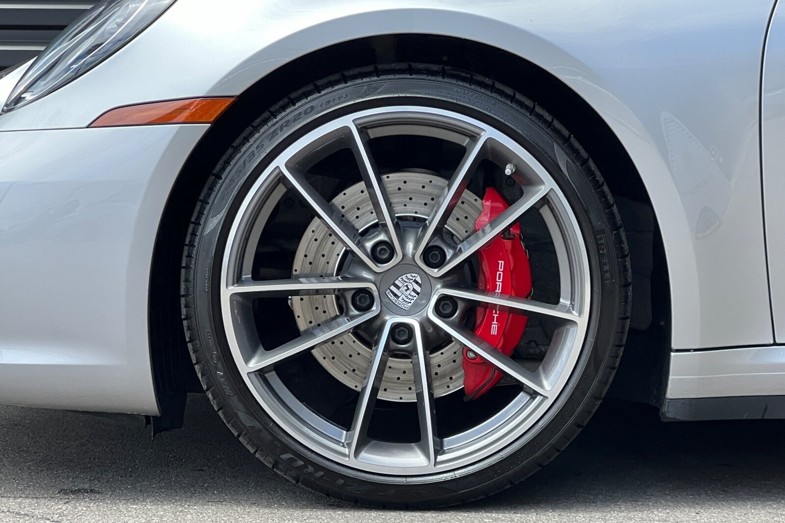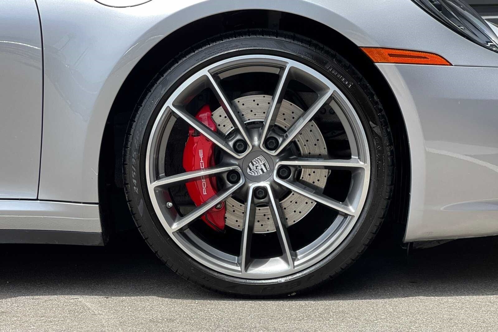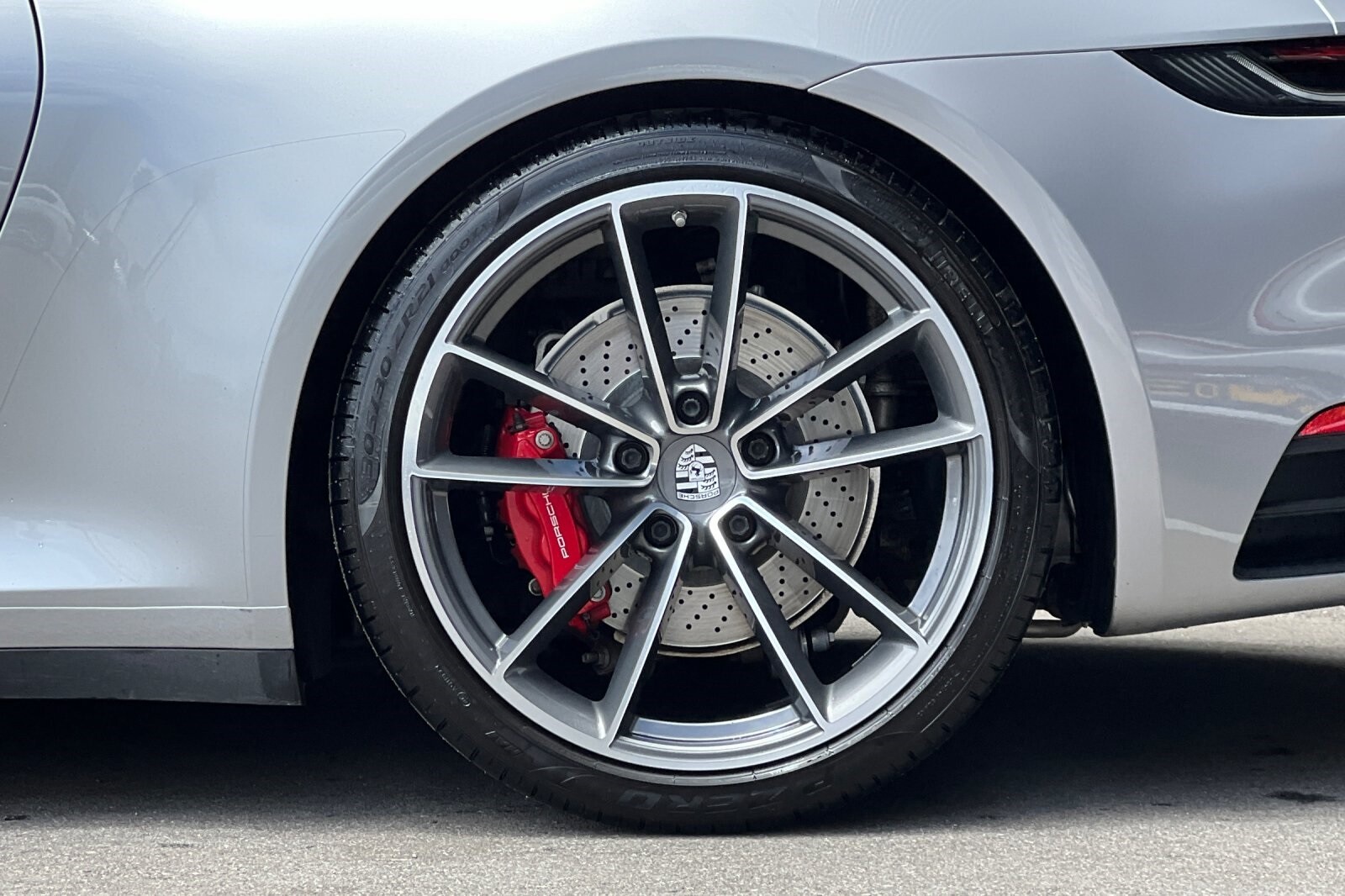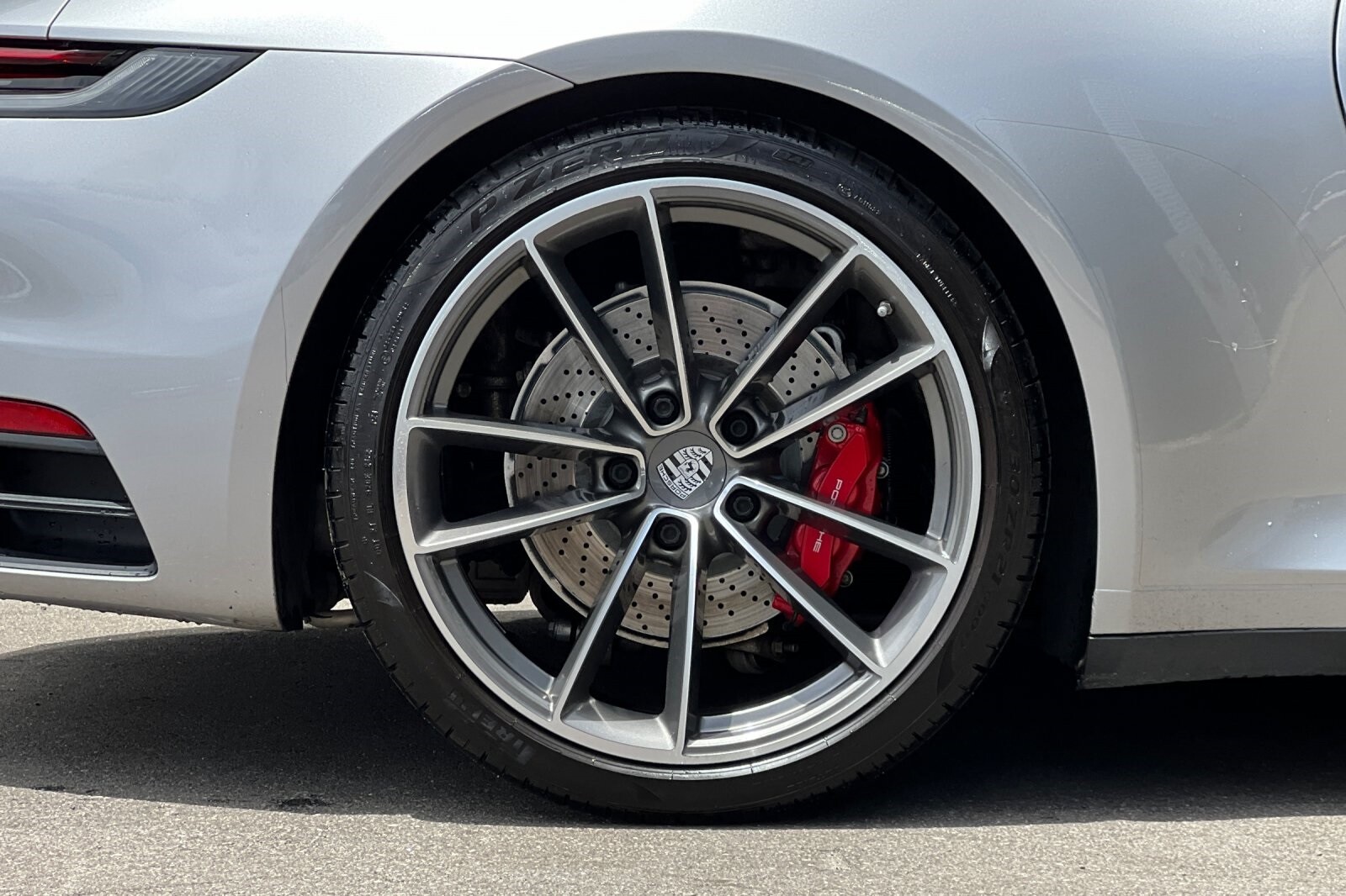 This Porsche San Luis Obispo 2020 Silver Porsche 911 Carrera S is well equipped and includes these features and benefits: Porsche Approved Certified Pre-Owned Certified, 4-Way Sport Seats, 4-Wheel Disc Brakes, 8 Speakers, ABS brakes, Adaptive suspension, Air Conditioning, Alloy wheels, Apple CarPlay, Auto-dimming door mirrors, Auto-dimming Rear-View mirror, Automatic temperature control, Brake assist, Bumpers: body-color, Convertible roof lining, Convertible roof wind blocker, Delay-off headlights, Driver door bin, Driver vanity mirror, Dual front impact airbags, Dual front side impact airbags, Electronic Stability Control, Exterior Parking Camera Rear, Four wheel independent suspension, Front anti-roll bar, Front Bucket Seats, Front Center Armrest, Front dual zone A/C, Front reading lights, Fully automatic headlights, Garage door transmitter: HomeLink, Glass rear window, Heated door mirrors, Heated front seats, Illuminated entry, Integrated roll-over protection, Leather Seat Trim, Leather steering wheel, Low tire pressure warning, Navigation system: Porsche Communication Management (PCM), Occupant sensing airbag, Outside temperature display, Overhead airbag, Overhead console, Passenger door bin, Passenger vanity mirror, Porsche Communication Management, Power convertible roof, Power door mirrors, Power driver seat, Power passenger seat, Power steering, Power windows, Radio data system, Rain sensing wipers, Rear anti-roll bar, Rear fog lights, Rear window defroster, Remote keyless entry, Security system, Speed control, Split folding rear seat, Spoiler, Sport steering wheel, Steering wheel mounted audio controls, Tachometer, Telescoping steering wheel, Tilt steering wheel, Traction control, Trip computer, Variably intermittent wipers, and Wheels: 20 Front/21 Rear Carrera S.