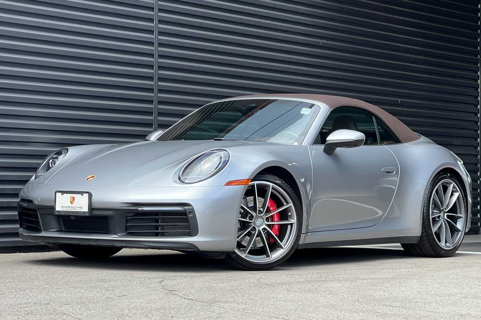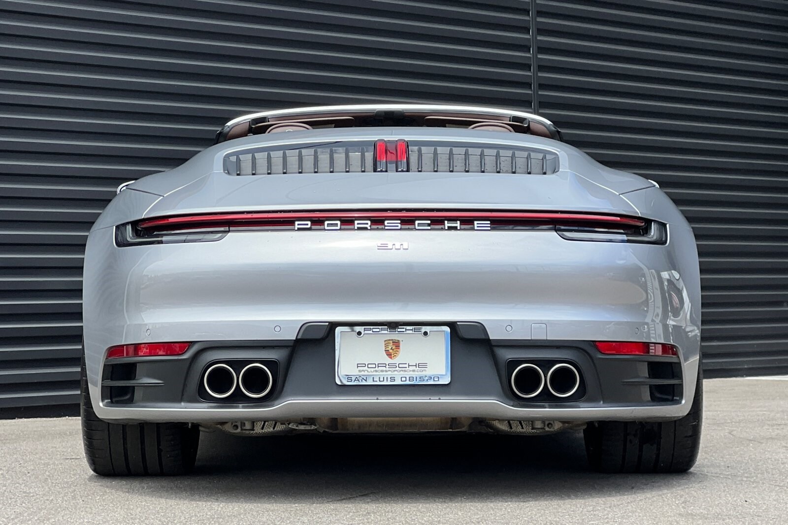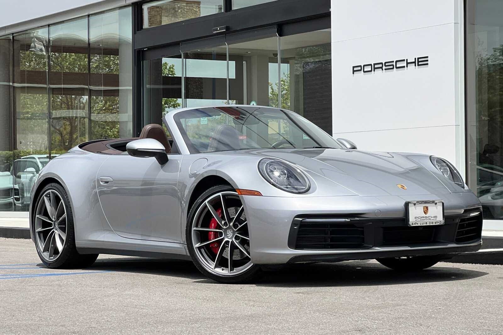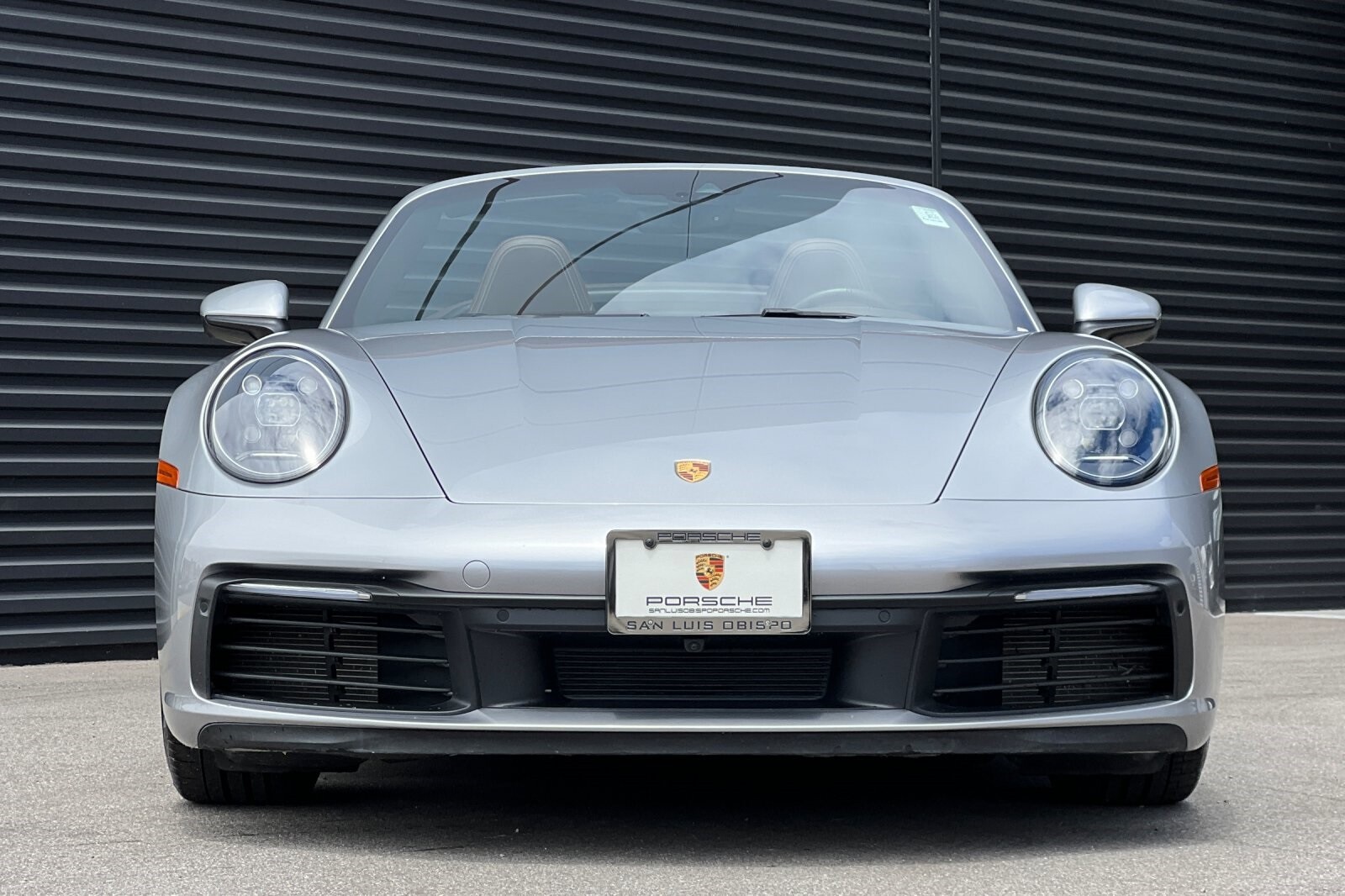 This Porsche San Luis Obispo 2020 Silver Porsche 911 Carrera S is well equipped and includes these features and benefits: Porsche Approved Certified Pre-Owned Certified, 4-Way Sport Seats, 4-Wheel Disc Brakes, 8 Speakers, ABS brakes, Adaptive suspension, Air Conditioning, Alloy wheels, Apple CarPlay, Auto-dimming door mirrors, Auto-dimming Rear-View mirror, Automatic temperature control, Brake assist, Bumpers: body-color, Convertible roof lining, Convertible roof wind blocker, Delay-off headlights, Driver door bin, Driver vanity mirror, Dual front impact airbags, Dual front side impact airbags, Electronic Stability Control, Exterior Parking Camera Rear, Four wheel independent suspension, Front anti-roll bar, Front Bucket Seats, Front Center Armrest, Front dual zone A/C, Front reading lights, Fully automatic headlights, Garage door transmitter: HomeLink, Glass rear window, Heated door mirrors, Heated front seats, Illuminated entry, Integrated roll-over protection, Leather Seat Trim, Leather steering wheel, Low tire pressure warning, Navigation system: Porsche Communication Management (PCM), Occupant sensing airbag, Outside temperature display, Overhead airbag, Overhead console, Passenger door bin, Passenger vanity mirror, Porsche Communication Management, Power convertible roof, Power door mirrors, Power driver seat, Power passenger seat, Power steering, Power windows, Radio data system, Rain sensing wipers, Rear anti-roll bar, Rear fog lights, Rear window defroster, Remote keyless entry, Security system, Speed control, Split folding rear seat, Spoiler, Sport steering wheel, Steering wheel mounted audio controls, Tachometer, Telescoping steering wheel, Tilt steering wheel, Traction control, Trip computer, Variably intermittent wipers, and Wheels: 20 Front/21 Rear Carrera S.