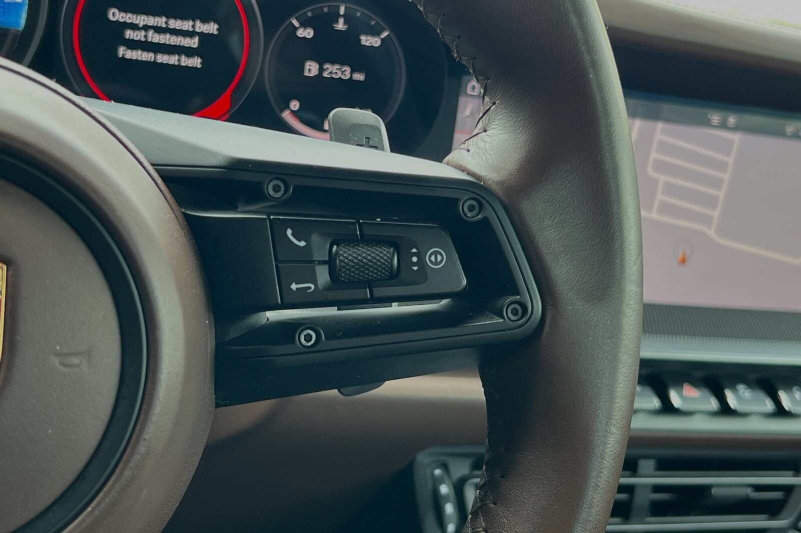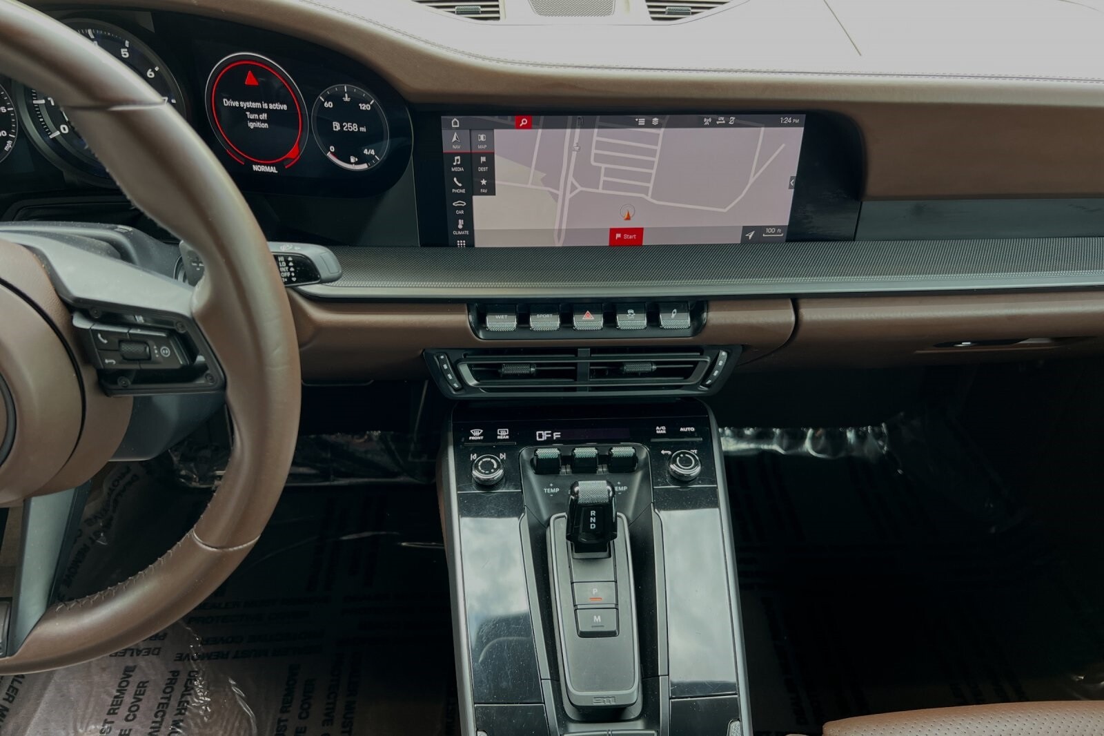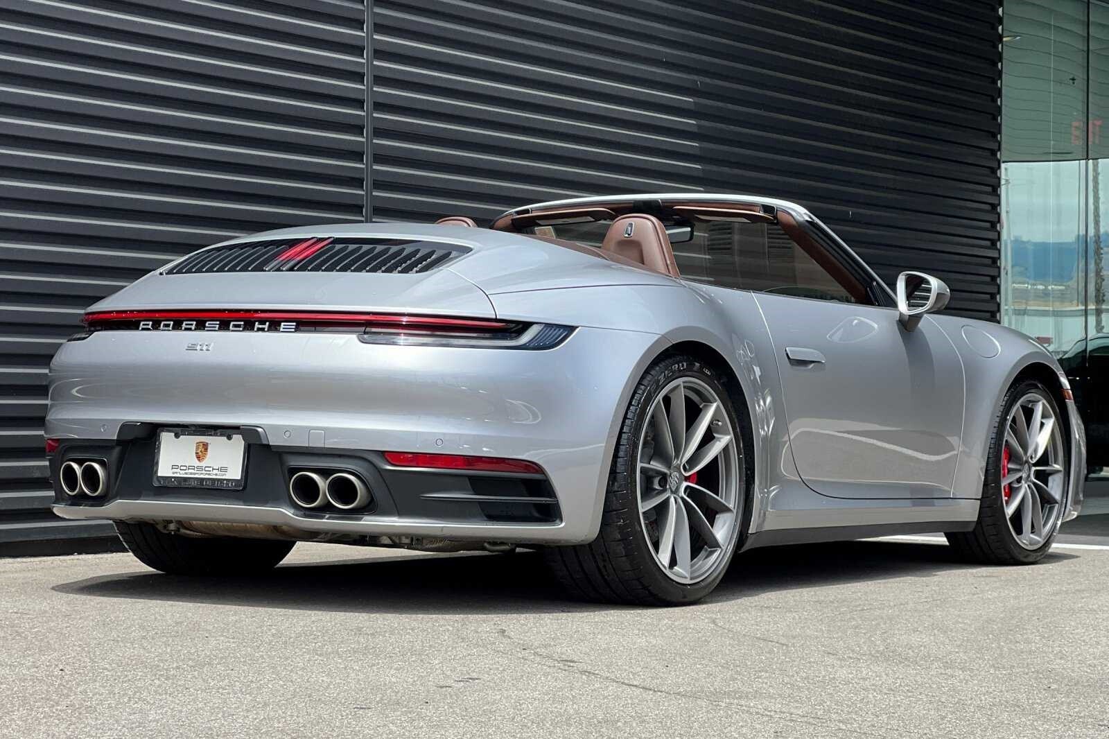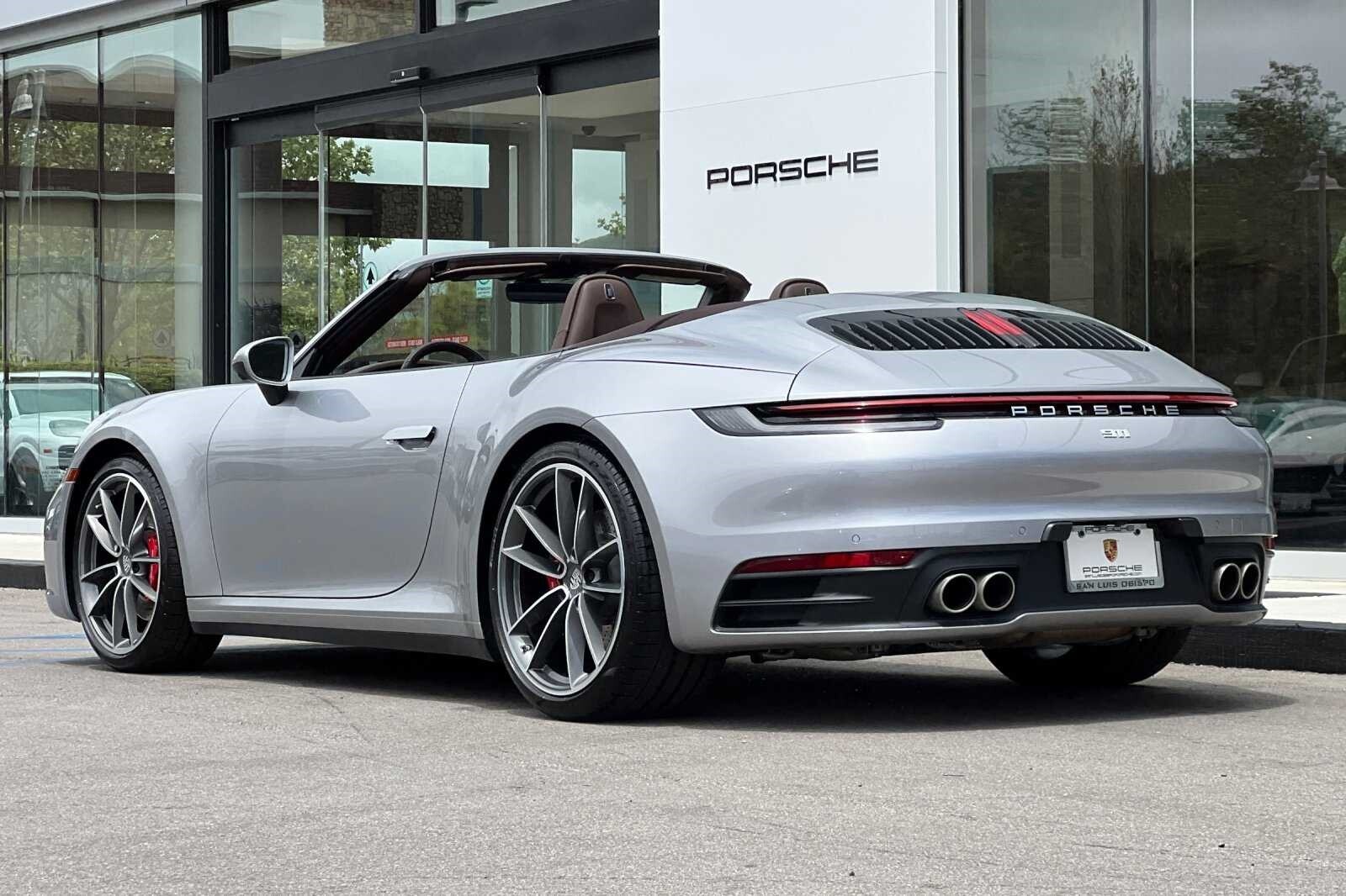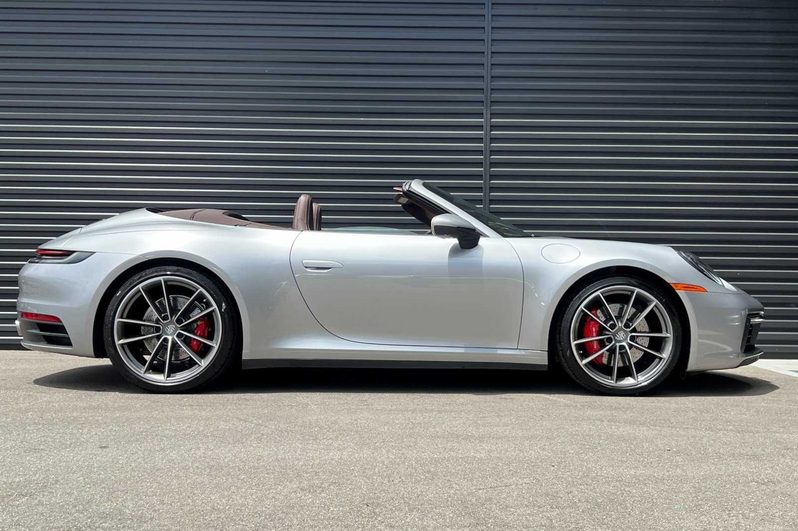 This Porsche San Luis Obispo 2020 Silver Porsche 911 Carrera S is well equipped and includes these features and benefits: Porsche Approved Certified Pre-Owned Certified, 4-Way Sport Seats, 4-Wheel Disc Brakes, 8 Speakers, ABS brakes, Adaptive suspension, Air Conditioning, Alloy wheels, Apple CarPlay, Auto-dimming door mirrors, Auto-dimming Rear-View mirror, Automatic temperature control, Brake assist, Bumpers: body-color, Convertible roof lining, Convertible roof wind blocker, Delay-off headlights, Driver door bin, Driver vanity mirror, Dual front impact airbags, Dual front side impact airbags, Electronic Stability Control, Exterior Parking Camera Rear, Four wheel independent suspension, Front anti-roll bar, Front Bucket Seats, Front Center Armrest, Front dual zone A/C, Front reading lights, Fully automatic headlights, Garage door transmitter: HomeLink, Glass rear window, Heated door mirrors, Heated front seats, Illuminated entry, Integrated roll-over protection, Leather Seat Trim, Leather steering wheel, Low tire pressure warning, Navigation system: Porsche Communication Management (PCM), Occupant sensing airbag, Outside temperature display, Overhead airbag, Overhead console, Passenger door bin, Passenger vanity mirror, Porsche Communication Management, Power convertible roof, Power door mirrors, Power driver seat, Power passenger seat, Power steering, Power windows, Radio data system, Rain sensing wipers, Rear anti-roll bar, Rear fog lights, Rear window defroster, Remote keyless entry, Security system, Speed control, Split folding rear seat, Spoiler, Sport steering wheel, Steering wheel mounted audio controls, Tachometer, Telescoping steering wheel, Tilt steering wheel, Traction control, Trip computer, Variably intermittent wipers, and Wheels: 20 Front/21 Rear Carrera S.