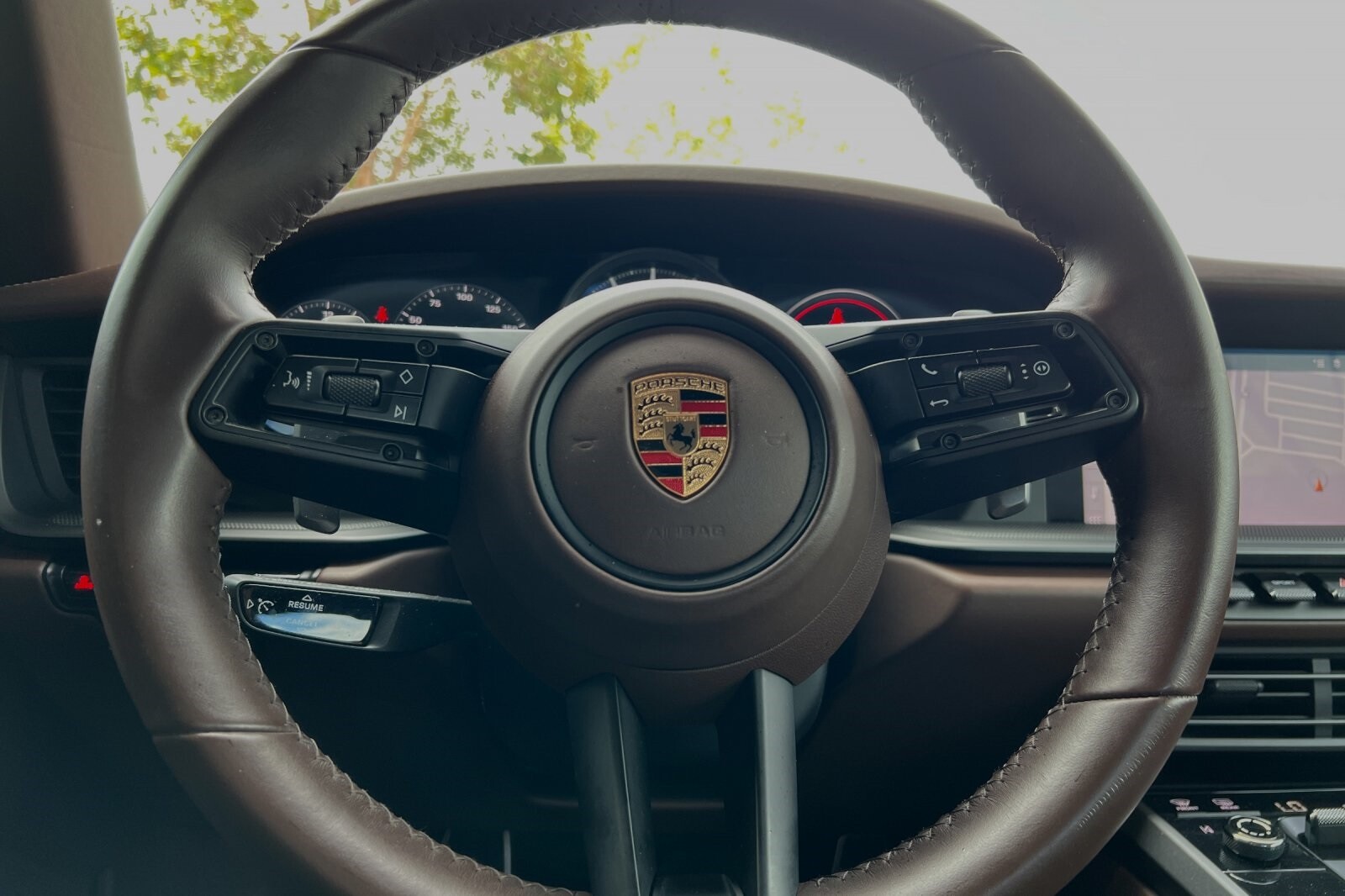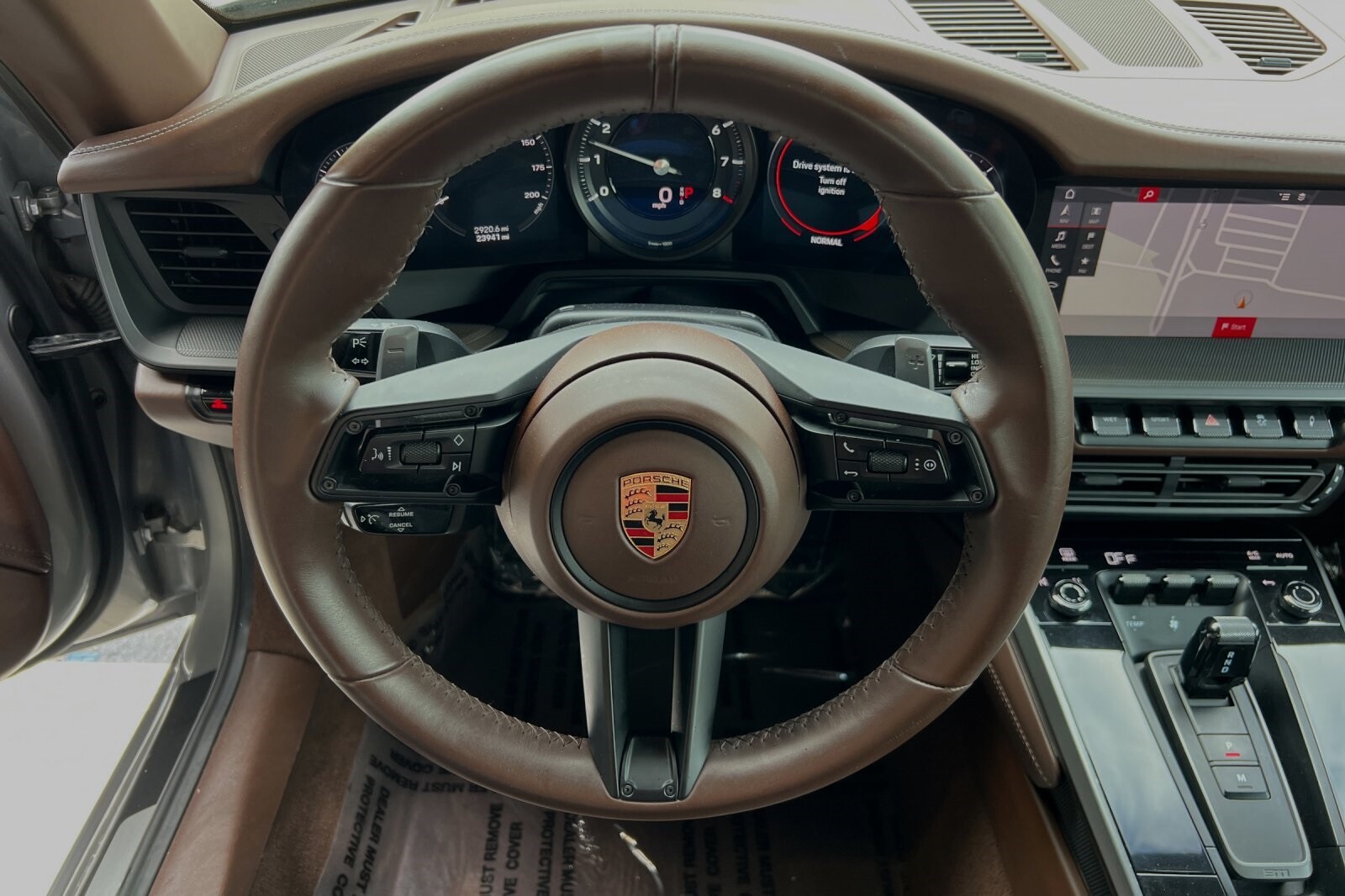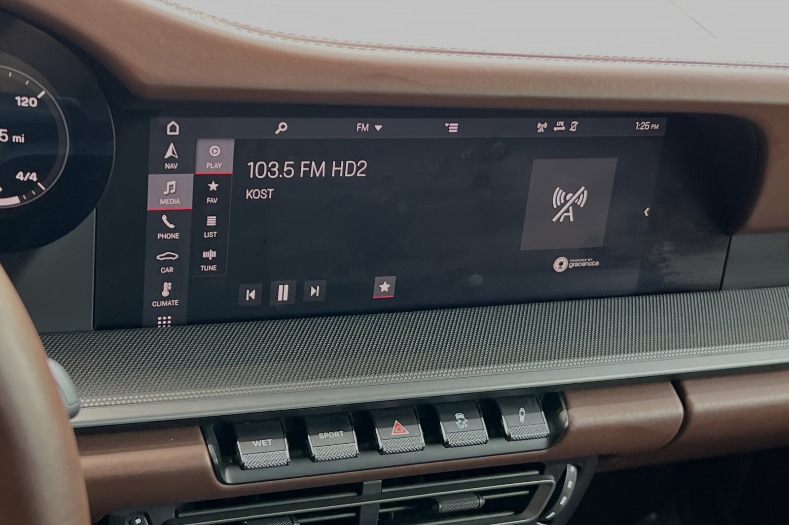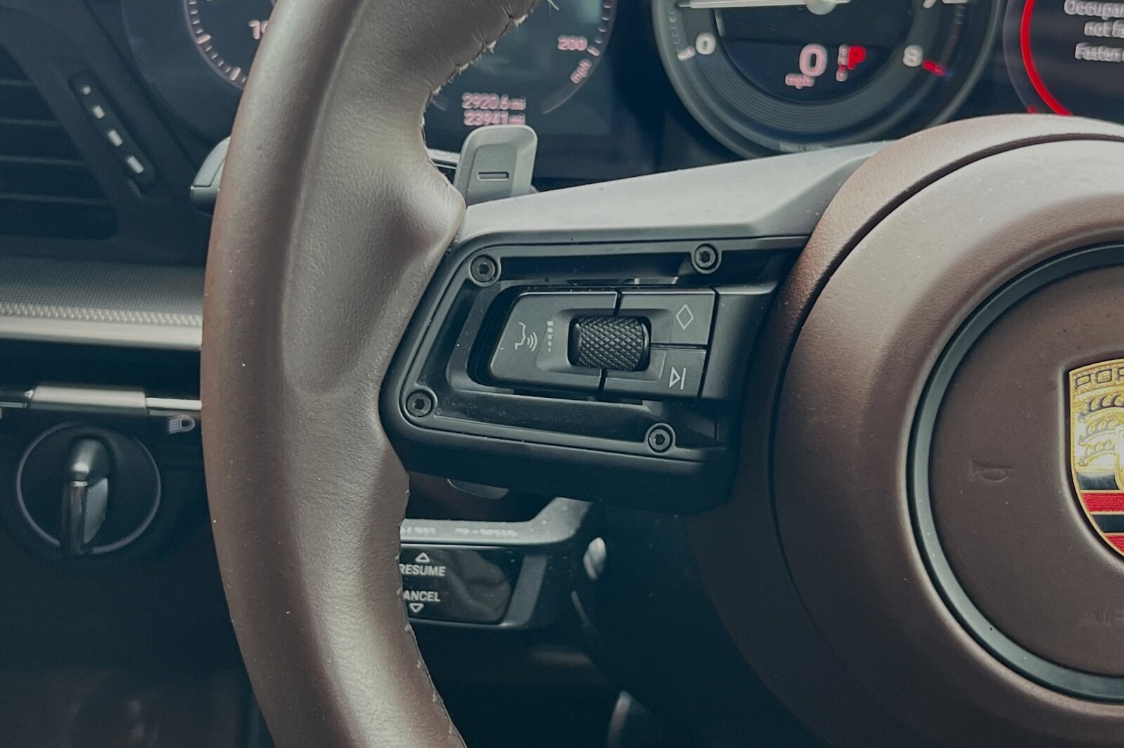 This Porsche San Luis Obispo 2020 Silver Porsche 911 Carrera S is well equipped and includes these features and benefits: Porsche Approved Certified Pre-Owned Certified, 4-Way Sport Seats, 4-Wheel Disc Brakes, 8 Speakers, ABS brakes, Adaptive suspension, Air Conditioning, Alloy wheels, Apple CarPlay, Auto-dimming door mirrors, Auto-dimming Rear-View mirror, Automatic temperature control, Brake assist, Bumpers: body-color, Convertible roof lining, Convertible roof wind blocker, Delay-off headlights, Driver door bin, Driver vanity mirror, Dual front impact airbags, Dual front side impact airbags, Electronic Stability Control, Exterior Parking Camera Rear, Four wheel independent suspension, Front anti-roll bar, Front Bucket Seats, Front Center Armrest, Front dual zone A/C, Front reading lights, Fully automatic headlights, Garage door transmitter: HomeLink, Glass rear window, Heated door mirrors, Heated front seats, Illuminated entry, Integrated roll-over protection, Leather Seat Trim, Leather steering wheel, Low tire pressure warning, Navigation system: Porsche Communication Management (PCM), Occupant sensing airbag, Outside temperature display, Overhead airbag, Overhead console, Passenger door bin, Passenger vanity mirror, Porsche Communication Management, Power convertible roof, Power door mirrors, Power driver seat, Power passenger seat, Power steering, Power windows, Radio data system, Rain sensing wipers, Rear anti-roll bar, Rear fog lights, Rear window defroster, Remote keyless entry, Security system, Speed control, Split folding rear seat, Spoiler, Sport steering wheel, Steering wheel mounted audio controls, Tachometer, Telescoping steering wheel, Tilt steering wheel, Traction control, Trip computer, Variably intermittent wipers, and Wheels: 20 Front/21 Rear Carrera S.